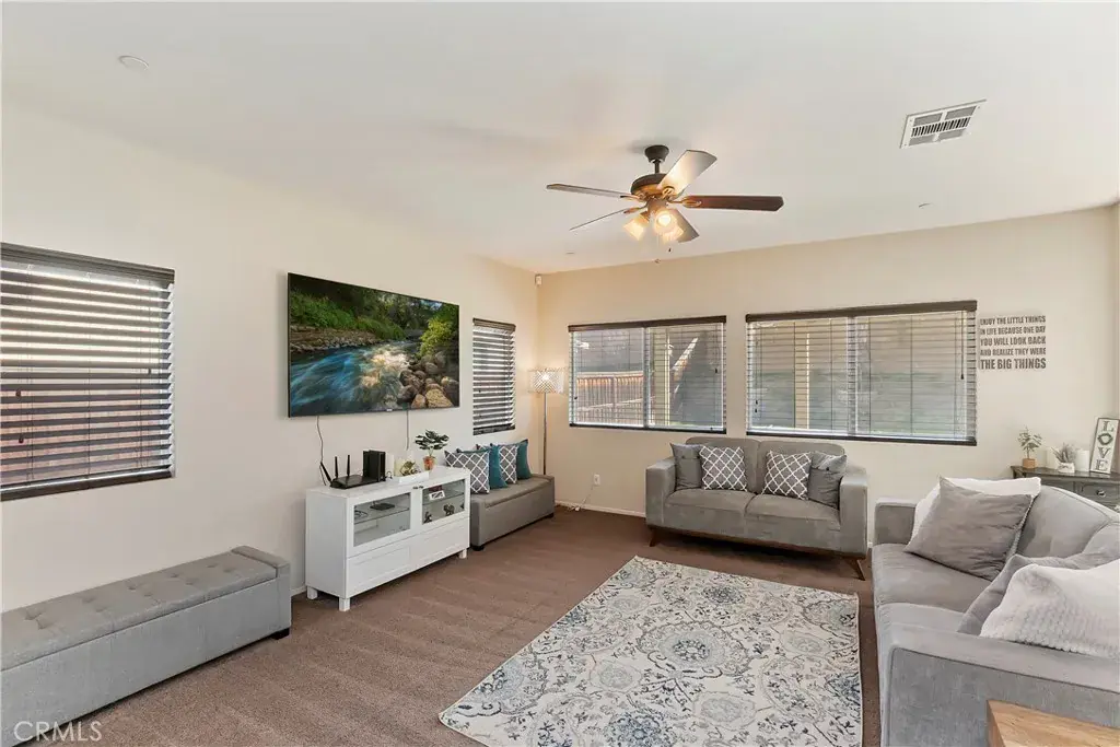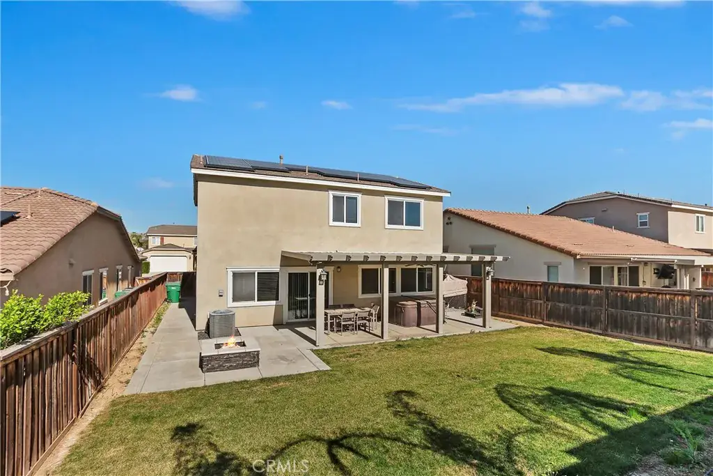 Welcome to this beautifully maintained 4-bedroom, 3-bath residence located on a quiet cul-de-sac in the highly sought-after Tournament Hills community. Built in 2014 and offering a FULLY PAID SOLAR SYSTEM — delivering immediate energy savings with no lease, no loan, and no added monthly payment — this 1,969 sq ft two-story home blends modern comfort with smart, cost-efficient living. Enjoy the advantage of significantly reduced utility bills and long-term protection against rising energy costs — a valuable upgrade that enhances both monthly affordability and future resale appeal. Inside, the open-concept layout is filled with natural light and ideal for everyday living and entertaining. The kitchen features granite countertops, rich dark cabinetry, stainless steel appliances, and generous prep space overlooking the main living area. Step outside to a private backyard retreat complete with a covered patio, built-in fire pit, manicured lawn, and scenic hillside backdrop — perfect for relaxing evenings or hosting gatherings. Additional highlights include an attached two-car garage and access to Tournament Hills’ lake, parks, and walking trails. Conveniently located near golf courses, shopping, dining, and easy access to the 10 and 60 freeways.