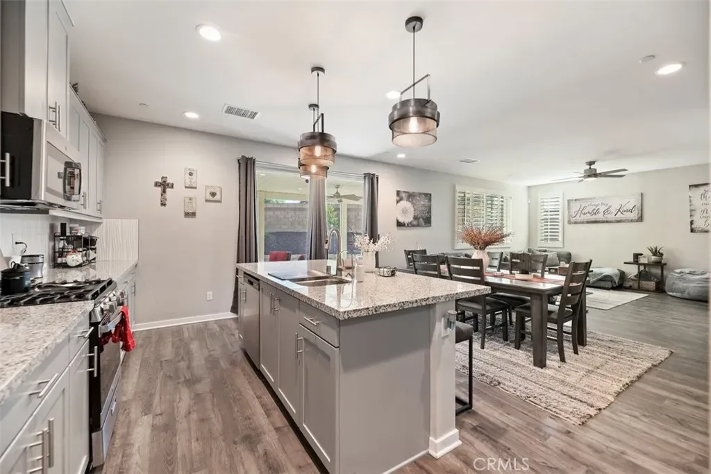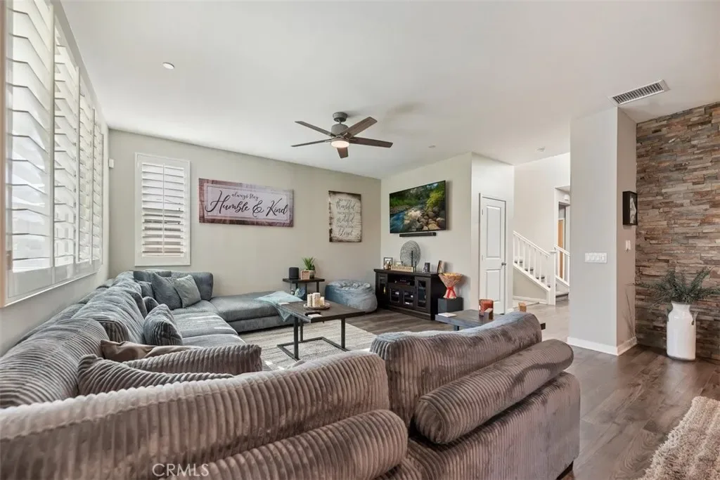 Inside, you’ll find a bright and modern layout complemented by custom shutters and upgraded interior paint throughout, creating a clean and elevated feel in every room. The home is equipped with remote-controlled ceiling fans throughout, along with the added convenience of included appliances including washer, dryer, stove, microwave, and refrigerator.