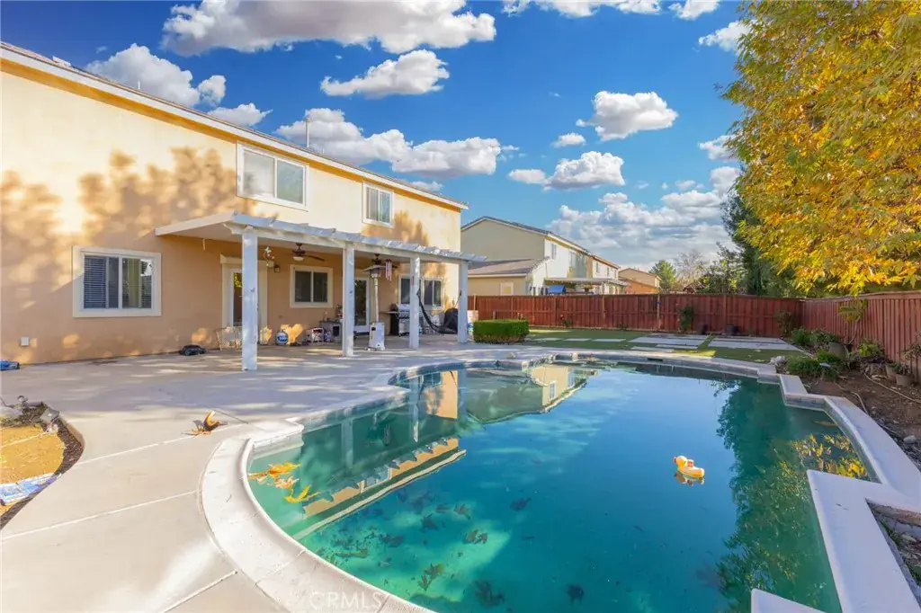 Welcome to 1359 Laurestine Way in Beaumont, a beautifully maintained 4 bedroom, 3 bathroom home offering 2,025 sq.ft. of living space on a 6,970 sq.ft. lot. The home features a separate laundry room, 3-car garage, and paid-off solar panels, providing both convenience and energy efficiency. The inviting living area includes an electric fireplace, while the spacious primary bedroom offers a walk-in closet and private bath. Step outside to enjoy your private pool, perfect for entertaining or relaxing during warm summer days. Conveniently located within the Beaumont Unified School District, near local elementary, middle, and high schools, as well as shopping centers, dining, parks, and easy access to the I-10 freeway, making commuting a breeze.
