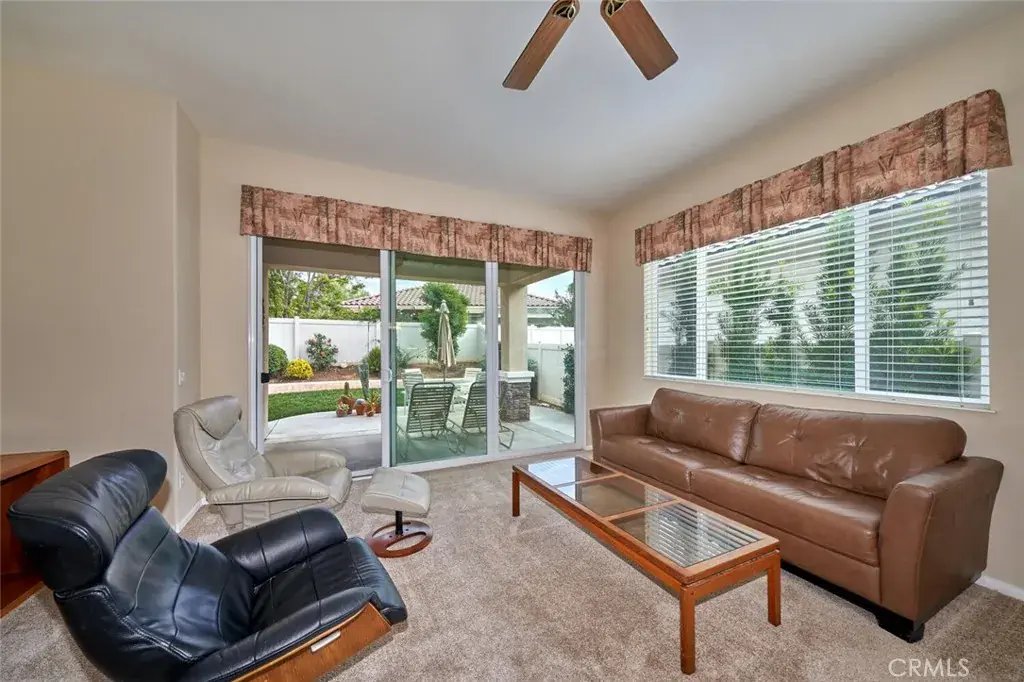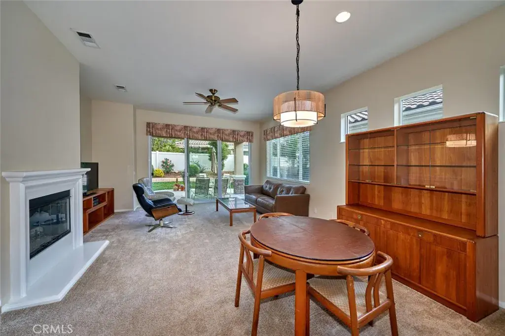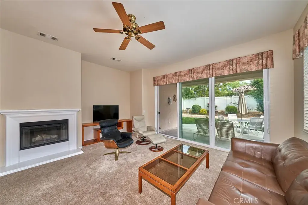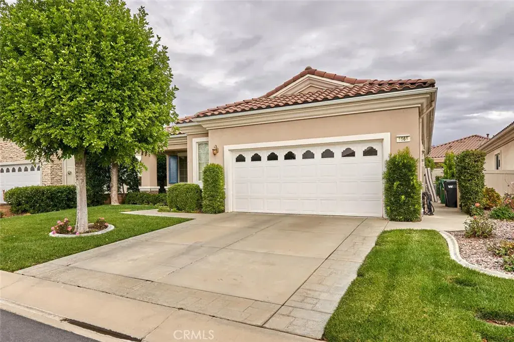 This terrific “Trillion” in Solera, a 55+ gated community, is truly pristine. This home is ready to move in. Inside, you’ll find it has brand new carpet, a spacious living room with a cozy gas fireplace, a kitchen with Corian countertops, and a versatile den/office. The primary suite features both a walk-in shower and a soaking tub. All appliances are included. The garage has an extra nook, perfect for a workbench or extra storage. Outside, enjoy the low-maintenance yard with extended patio and garden planter beds. Solera has a clubhouse, pool, spa, gym, indoor walking track, tennis courts, bocce ball, clubs to join, classes, and group trips. HOA includes basic Spectrum cable and internet. It is conveniently located near Palm Springs, Redlands, Cabazon Outlets, Morongo Casino, and top golf courses, with easier access to the 10 freeway than other 55+ in the Beaumont area.