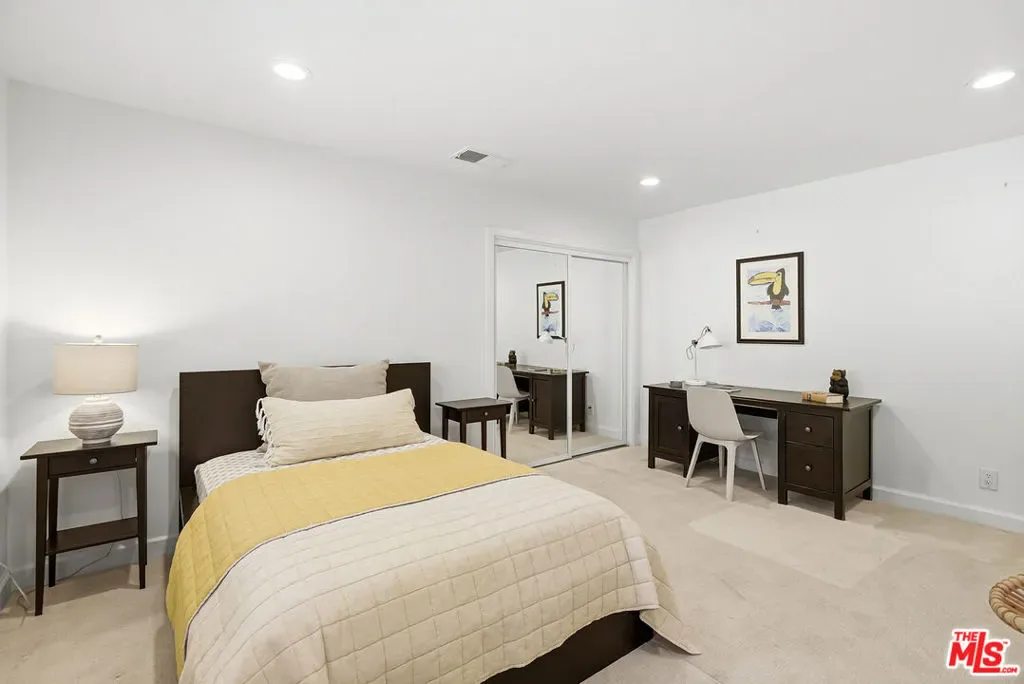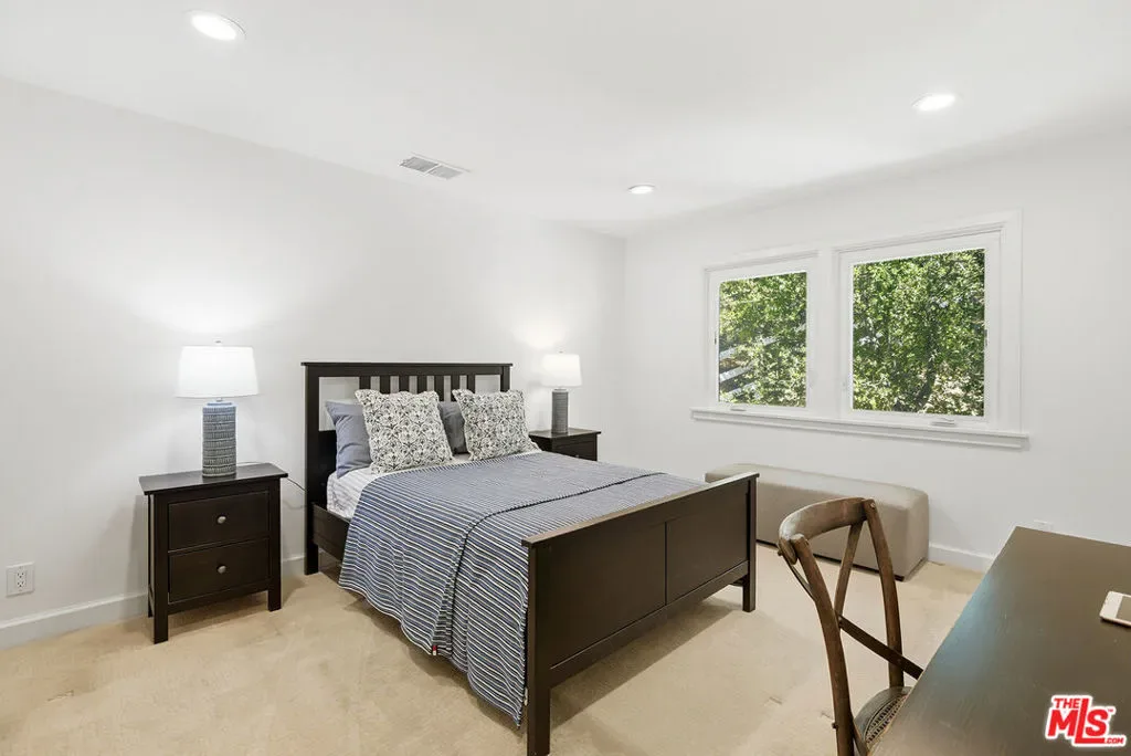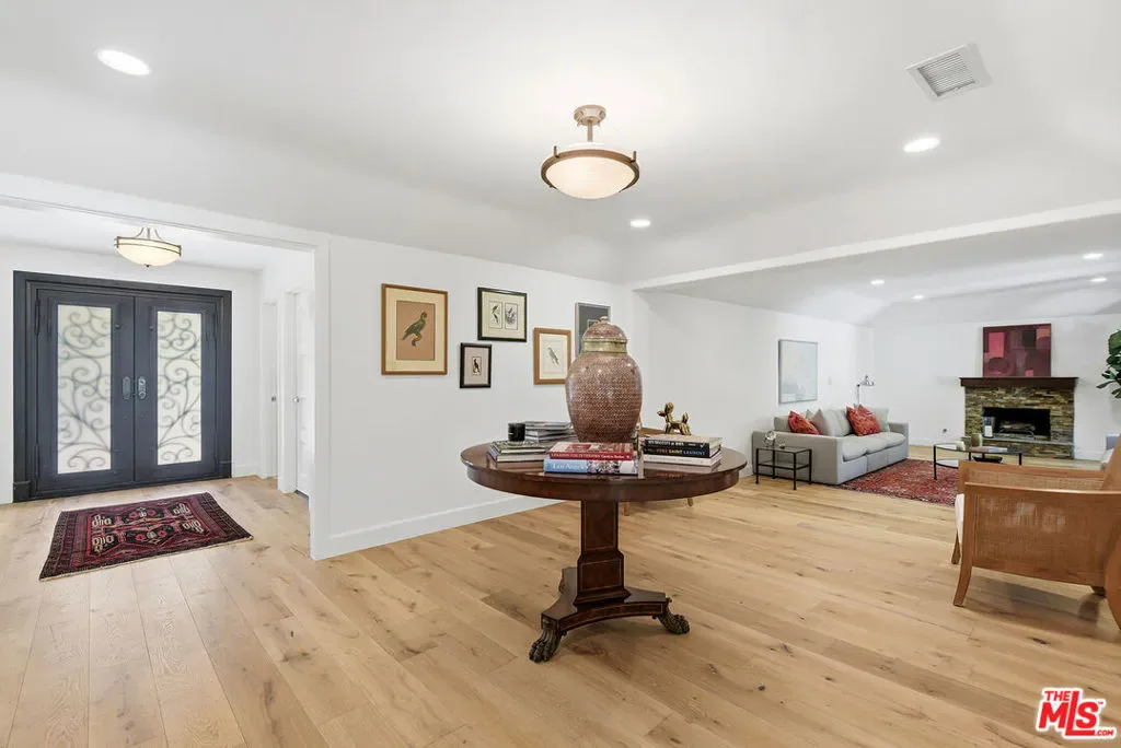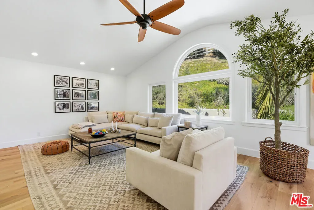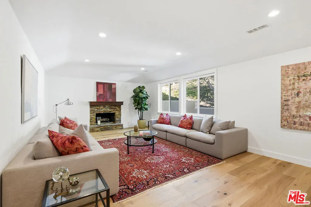 Beautifully situated within the prestigious, guard-gated community of Bell Canyon, this exceptional residence offers refined living with stunning natural surroundings. The home features a charming front porch with a pergola and a dramatic entryway leading to a light-filled interior with wide plank hardwood floors. The thoughtfully designed floor plan includes a step-down living room with a fireplace, a vaulted-ceiling den showcasing serene hill views, and an oversized formal dining room with seamless access to the backyard for effortless indoor-outdoor entertaining. The expansive, updated chef’s kitchen is both stylish and functional, complete with stainless steel appliances, a large center island, and abundant storage.A desirable first-floor bedroom with a private entrance and a bathroom, offers ideal flexibility for guests or a sophisticated home office. Upstairs, the luxurious primary suite is a true retreat, featuring a spacious sitting area, walk-in closet, and an updated spa-inspired bathroom. A generous private balcony captures breathtaking mountain views. On the top level, two additional guest bedrooms share a well-appointed Jack and Jill bathroom. Additional highlights include a three-car direct entry garage and a dedicated laundry area. The entertainer’s backyard is designed for year-round enjoyment, featuring a solid covered patio and a built-in BBQ area – perfect for weekend gatherings and celebrations under the California sky. Residents of Bell Canyon enjoy a resort-style lifestyle with exclusive amenities including tennis courts, an equestrian center, a fitness center, and miles of scenic hiking and riding trails. This community is also complemented by access to the highly acclaimed Las Virgenes School District. This is a phenomenal opportunity to own a home that combines elegance, comfort, and lifestyle.