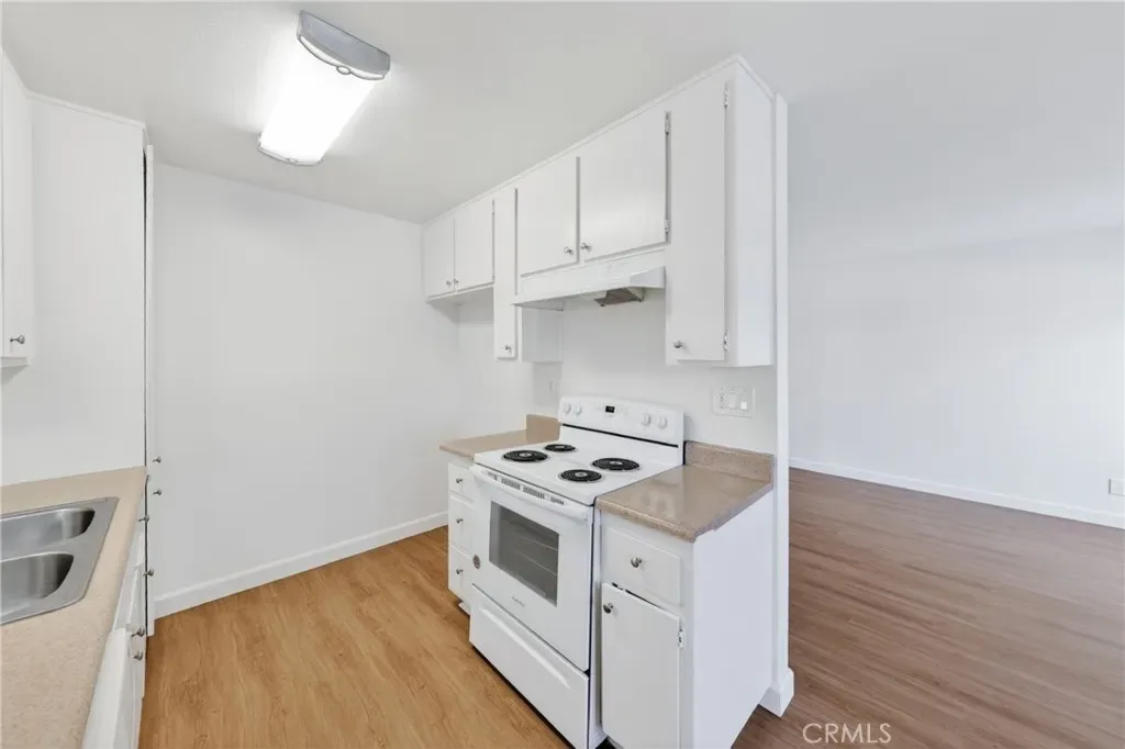 SPACIOUS OPEN FLOOR PLAN UNIT WITH PLENTY OF NATURAL LIGHT LOCATED IN A GATED COMMUNITY. Step inside this bottom-level unit and notice immediately the perfect open-living concept, with a spacious living room, dining area, and kitchen all connected. The kitchen includes a range, dishwasher and a refrigerator with a stainless steel sink—vinyl wood flooring in the living area, kitchen, dining area, bathroom, bedroom. A sizeable bedroom features a closet and large window, inviting in plenty of natural light. Rent includes Trash. The unit comes with two car parking spaces. Community washer and dryer conveniently located on the property in a separate room, steps away, and located near many restaurants, shops, and entertainment.