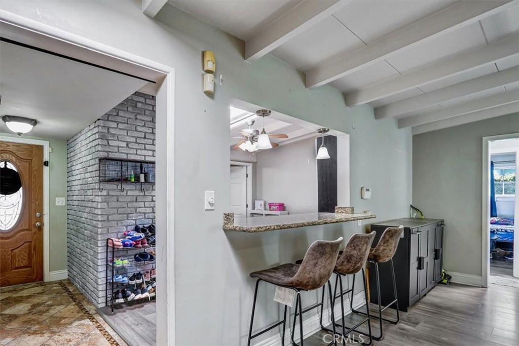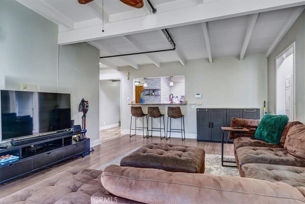 Wonderful Sprawling One-Story Ranch Rambler w/ Modern Updates in Walkable Area to St. John Bosco High School & Thompson Park ! Great Floor-Plan w/ Primary Bedroom & 2 Guest Bedrooms and Main Bathroom separate from the Family Room w/ Gas Fireplace, or could be Formal Dining Room, and Den ( used as a 4th Bedroom) in the Front of the Home. Beautiful Curb Appeal w/ NEW Exterior Paint & Stunning Fountain Front. Formal Entry leads right into the Family / Dining Room & Den/Office/or 4th Bedroom. Updated Kitchen straight ahead w/ Granite Counters, Garden Window, Stainless Steel Appliances and Lots of Maple Cabinets ! Large Laundry Room off of Kitchen w/ Utility Sink and Rear Door to Back Entertainment Patio. 2nd Bathroom w/ Shower located here too ! Main Living Room or GREAT ROOM off of Kitchen w/ Beamed Ceilings and Double Sliders & Cool A/C Mini-Split…. Updates thru-out home include Light Grey Laminate Wood Floors, Skylights, Dual-Pane Windows, Decorative Tiling, Designer Backsplash, Recessed Lighting AND Newer Electrical Panel ! Fenced in Rear Yard w/ Grass, Patio BBQ Area Entertainment Area too ! *** PREVIOUS OWNER PERMITTED HOME AS A “RCFE”- RESIDENTIAL CARE FACILITY FOR ELDERLY *** This gives MANY options for Handicap Accessible Floorplan ! Double Car Attached Garage and Pass-thru in rear to Covered Patio w/ Stamped Pavers ( Great for Car Enthusiasts ! ) There is even a TESLA NEMA 14-50 PLUG in Garage too ! All of this AND close freeway access to 91, 105 & 605 Freeways, Bosco High School & Kaiser Hospital Bellflower !