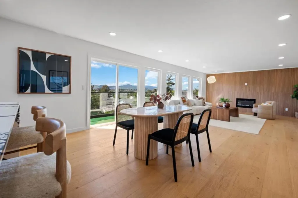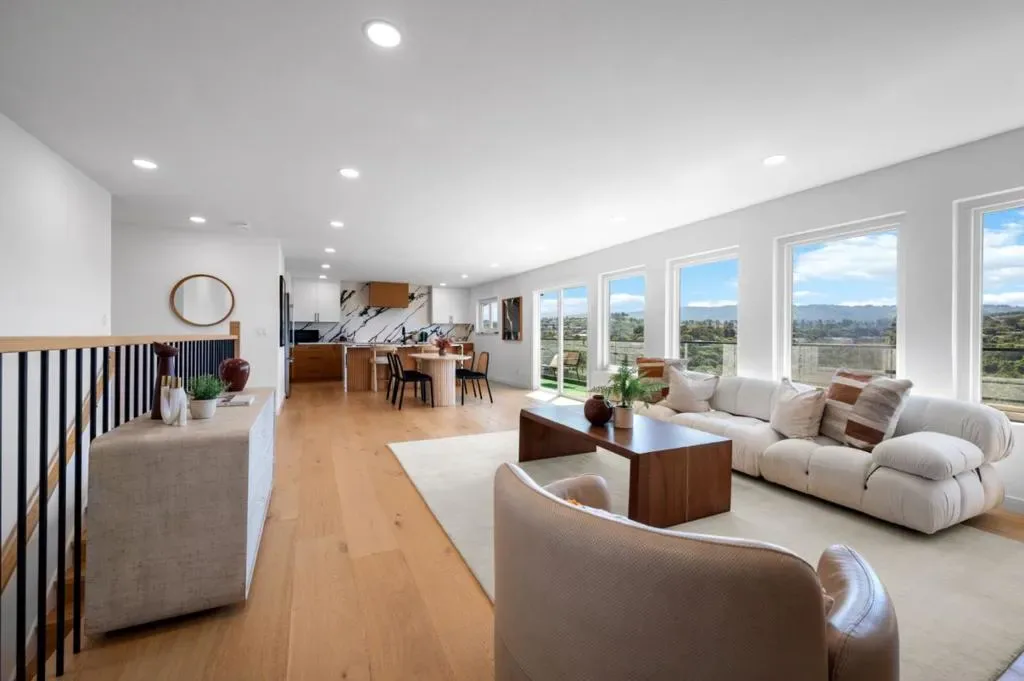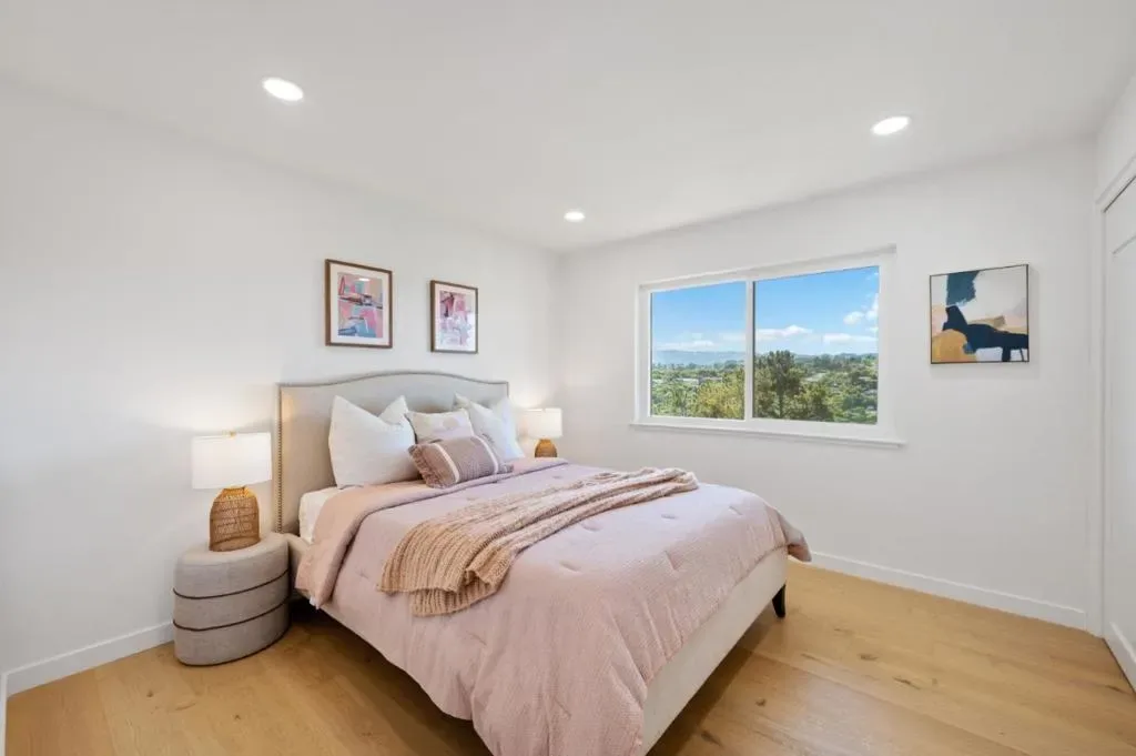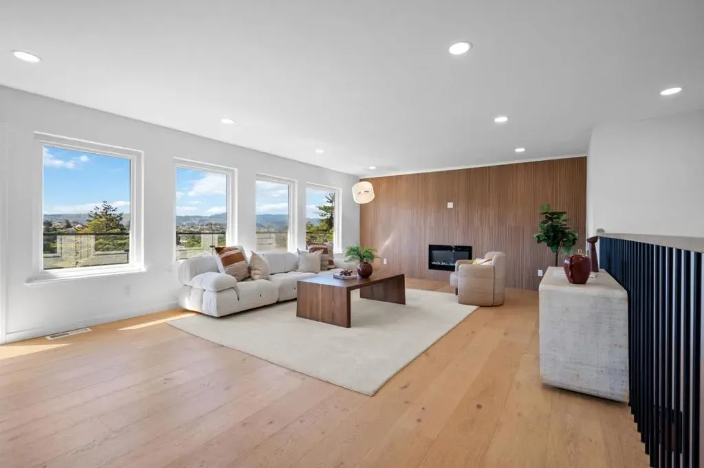 Nestled in the coveted Belmont Hills, this upgraded 4-bed, 3-bath single-family home offers a thoughtfully designed layout with stunning panoramic views of the San Francisco Peninsula. The main level features an expansive great room and gourmet kitchen with designer cabinetry, dramatic countertops, and a generous island all bathed in natural light through picture windows. A glass-railed balcony offers spectacular mountain views. A bedroom and full bath complete this level, ideal for a home office or guest suite. The lower level hosts three bedrooms, including a primary suite with a private balcony with unobstructed views, plus a dedicated laundry room and ample storage. Outside, a spacious deck anchors the landscaped backyard perfect for al fresco dining and entertaining. The unfinished basement offers three painted and floored rooms, ideal for a gym, office, or ADU conversion a rare opportunity. Refined front yard landscaping and a two-car attached garage complete the package. Steps from top-rated Carlmont High School and minutes from downtown Belmont, Caltrain, and major commute corridors hillside living at its finest. Don’t miss your chance to make one of Belmont’s most exceptional homes your own!