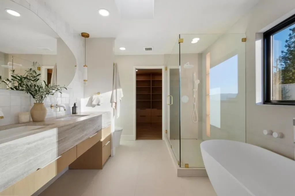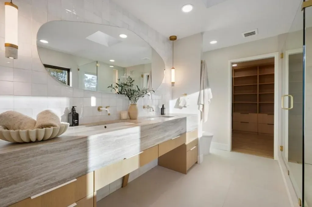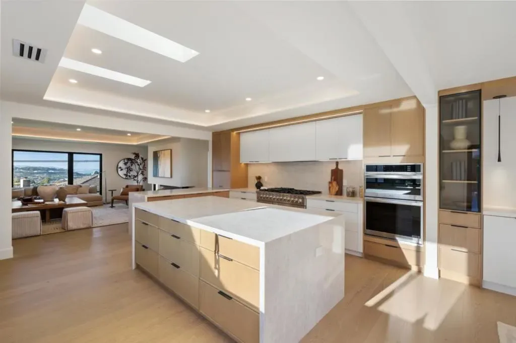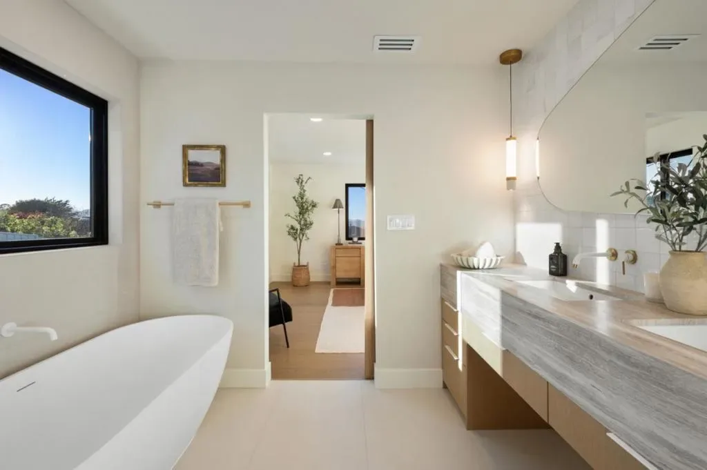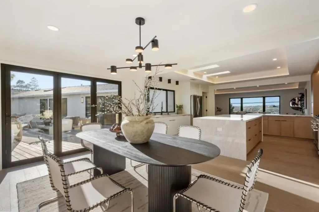 Elegantly remodeled from the studs up and thoughtfully reimagined for modern living, this remarkable residence spans three merged lots and captures sweeping views of San Francisco, the East Bay, and the Peninsula’s rolling hills from multiple vantage points. The living room welcomes you with expansive bifold doors that frame the scenic landscape and open seamlessly to the backyard. At the heart of the home is a beautifully designed chef’s kitchen featuring striking quartz countertops, a generous center island, high-end stainless-steel appliances, a 48″ range, and 4 ovens, including one with air fryer capabilities! The adjacent dining room opens through bifold doors to the backyard, creating a natural flow for indoor-outdoor living and entertaining. A massive family room off the kitchen features a fireplace with a sleek surround, views out to the bay, and space that invites relaxing. Four bedrooms include a serene primary suite with a soaking tub and a frameless glass shower. The outdoor spaces are equally inviting, with redwood decking, lush lawns, and multiple patios thoughtfully positioned to take in the views. Blending refined design, modern comforts, and spectacular scenery, this exceptional Foreverhome offers an elevated Peninsula lifestyle in a truly memorable setting.