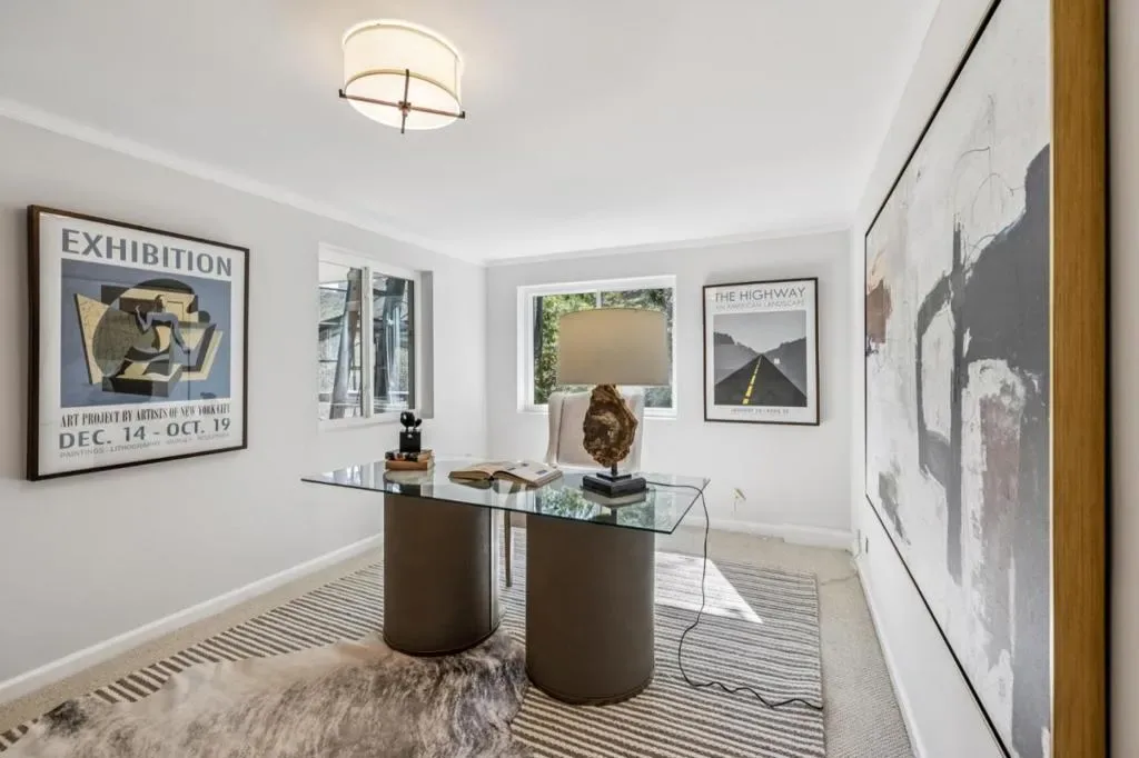 Canyon views and utmost privacy in a quiet hillside setting in the lovely Haskins Estates neighborhood. Nestled among the trees is an alluring home with a Modern Craftsman facade, and a refreshed landscape with spring flowers and a captivating approach to the front entrance. Enter the striking interior and find a large open living area with stunning views that will give you pause. Enjoy the freshly painted interior with beamed ceilings, refinished hardwood and slate-lined floors, newly carpeted bedrooms, and a bounty of sparkling windows and glass doors showcasing views, and opening to new decks with cable railings. Framed by tranquil vistas, the living and dining areas extend to the upper deck via French door, while the kitchen, with dining island, stainless appliances and casual dining area, has a sliding glass door to the same deck. Lower levels comprise four bedrooms, including a primary suite with private deck, and a flexible guest suite with private entrance. A secluded office with walk-in storage is a bonus. Balancing modern living with down-to-earth style, this home has the lure of seclusion, yet is < 3 miles from The Village, Caltrain, Hillsdale Shopping and top-rated schools.