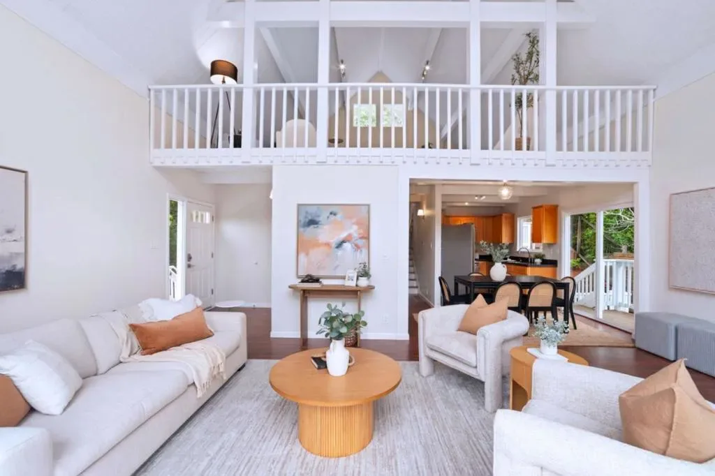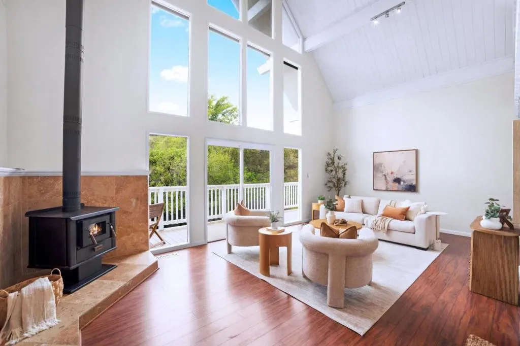 Soaring Glass Walls and Oak-Framed Serenity in Belmont’s Wooded Hills // Nestled in the hills of Belmont’s Cipriani neighborhood, this updated and well-maintained home captures the essence of tranquil contemporary living. This 3bd/2ba, invites nature in with its soaring two-story wall of glass that draws in abundant natural light while framing views of mature oaks, hillside greenery, colorful birds, neighborhood deer, and a peaceful nocturnal soundscape from the parliament of nearby owls. The open floor plan on the main level seamlessly blends the living & dining/kitchen areas to create a flowy family space that feels expansive, yet cozy & connected. Other standouts include:updated kitchen & baths, wood-burning stove, air conditioning, well-appointed primary bedroom w/ outdoor lounging deck, loft space w/ epic views, newer retaining walls,& a private multi-tiered yard perfect for gardening, lazy Sunday hammocking, & hosting gatherings with friends.The Sugarloaf trail system, Waterdog Lake, & the Carlmont Village Shopping Center are just moments from your front door, offering hiking, shopping, restaurants, & specialty stores.Nearby Cipriani Park, top-rated school system, and easy commute to 280/101 and SFO International Airport make this the perfect oasis to call home.