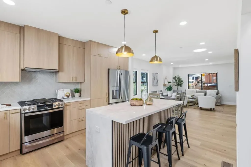 Welcome to this rare and exceptional opportunity to own a completely rebuilt Mediterranean style residence situated in the highly desirable heart of downtown Belmont. Boasting a brand new 768 SF addition, this home has been meticulously redesigned from the studs up to offer the modern comfort of new construction while retaining timeless character. The main residence features a bright, open floor plan accentuated by high ceilings, skylights, and hardwood flooring throughout the living areas. The chef inspired kitchen serves as the heart of the home, showcasing quartz countertops, a spacious center island, and premium gas appliances. Extensive infrastructure upgrades provide long term peace of mind, including a new foundation, roof, plumbing, electrical systems, fire sprinklers, and energy efficient double-pane windows. A standout feature is the permitted 420 SF attached ADU, complete with one bedroom and one bath, ideal for rental income, extended family, or a private home office. Uniquely designed for autonomy, the ADU is equipped with its own independent HVAC, AC, and tankless water heater, ensuring separate climate control. Step outside to a professionally landscaped backyard and low maintenance patio perfect for relaxing or entertaining. Smart key system for all exterior locks