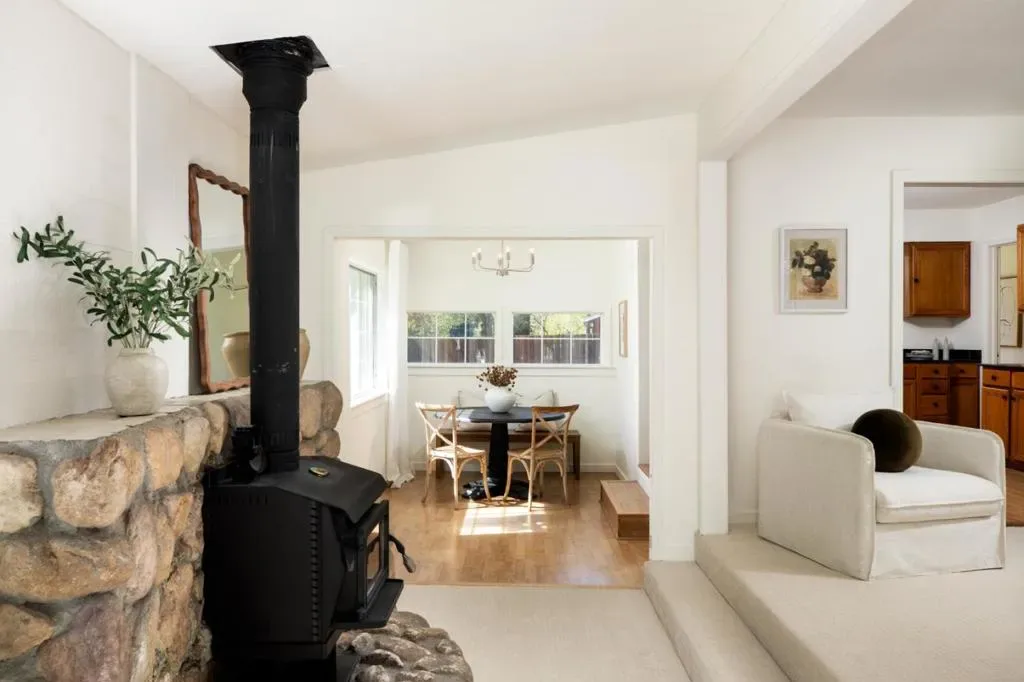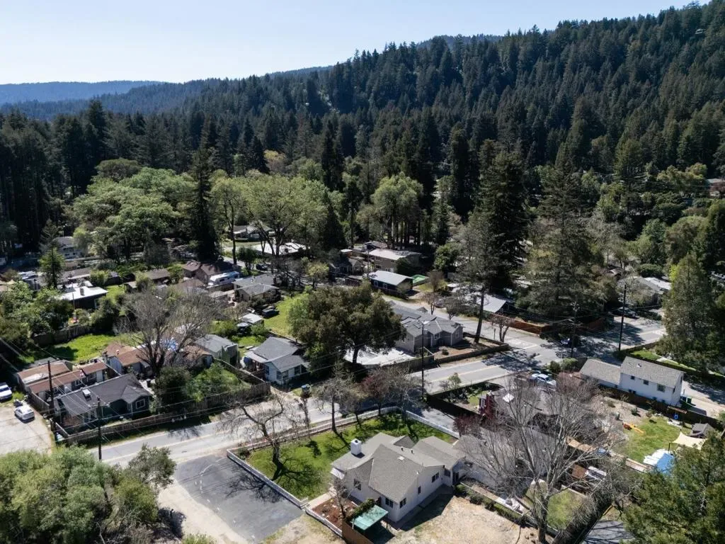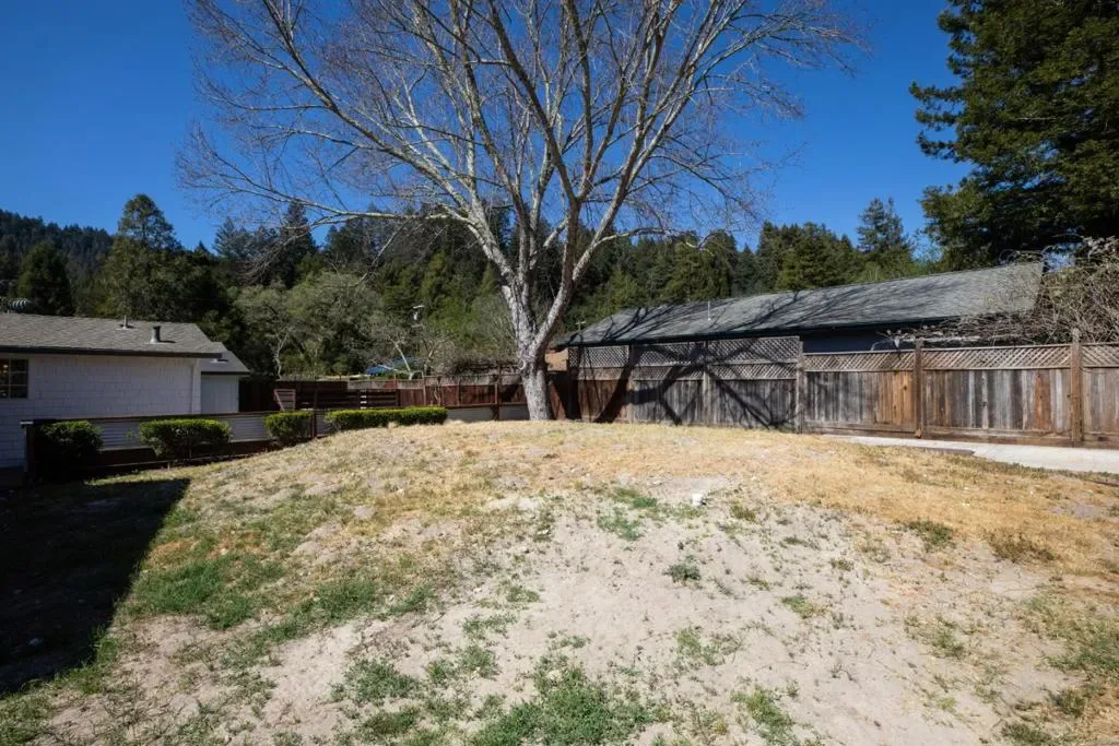 Charming single level home on a rare flat and sunny lot in the heart of Ben Lomond. Set behind a classic white picket fence and offered for the first time in 33 years, this welcoming home enjoys distant views of the towering redwoods of the Santa Cruz Mountains in a peaceful neighborhood setting. The comfortable floor plan offers three bedrooms and two baths across approximately 1,565 square feet of easy single level living. Light filled interiors create a warm and inviting atmosphere while a cozy wood burning stove adds character and comfort for cool mountain evenings. The kitchen features stainless steel appliances and connects easily to the main living areas for everyday living and relaxed gatherings. The generous 11,000 plus square foot lot offers abundant sunshine and space for gardening, outdoor dining, or simply enjoying the peaceful surroundings. Just minutes to Ben Lomond Market, local cafes, and community favorites. Enjoy the serenity of mountain living removed from the bustle of the Bay Area while still within reach of Silicon Valley commuting and a beautiful drive through the redwoods to the beaches of Santa Cruz.