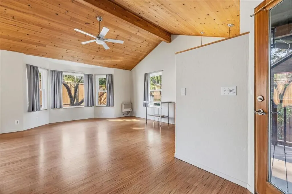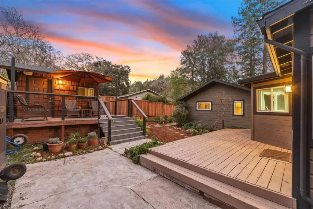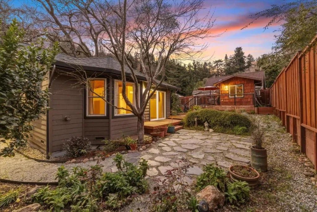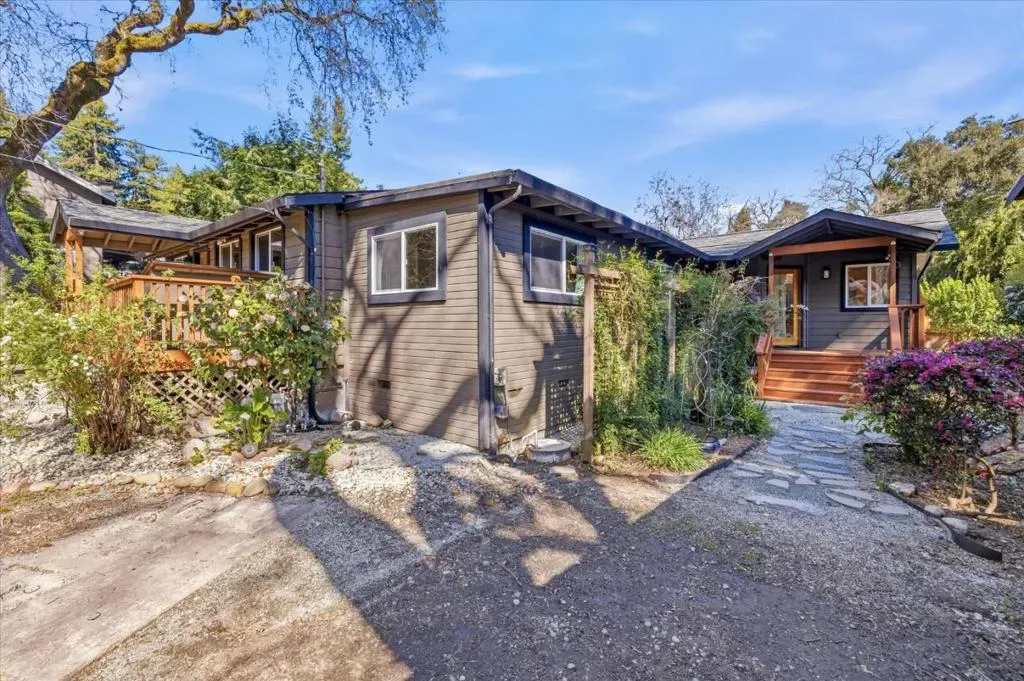 Looking for a place with a little breathing room and a lot of flexibility, including income potential? This sunny Ben Lomond property is set in a country-feel good neighborhood of larger parcels, w/space between neighbors, offering a peaceful setting, right off Glen Arbor & not far from Hwy 9 to keep you comfortably connected. This flat & usable 7,013 sq ft parcel includes a 2 bedroom, 1 bath main home, a studio w/private entrance, yard & parking, and a detached office w/composite decking. Ideal for those seeking separate living spaces, rental income option, guest quarters, or multi-generational living. This layout also offers the opportunity to easily reconfigure back to a 3 BD/2 BA home if desired. A unique property w/room to live, grow, & adapt to your needs. Inside, enjoy a wood burning FP insert, modern kitchen w/an industrial vibe, quartz countertops & shaker wood cabinetry, dual pane windows, gracious sized remodeled bathroom with tile floors and shower walls ,over tub, double sink vanity & accent lighting, also doubles as a spacious interior laundry. Natural gas, generator, and SLV Water with a reverse osmosis filter system, adding comfort and convenience. The detached office is a superb feature! Ample off street parking, large storage shed & a peaceful backyard retreat.