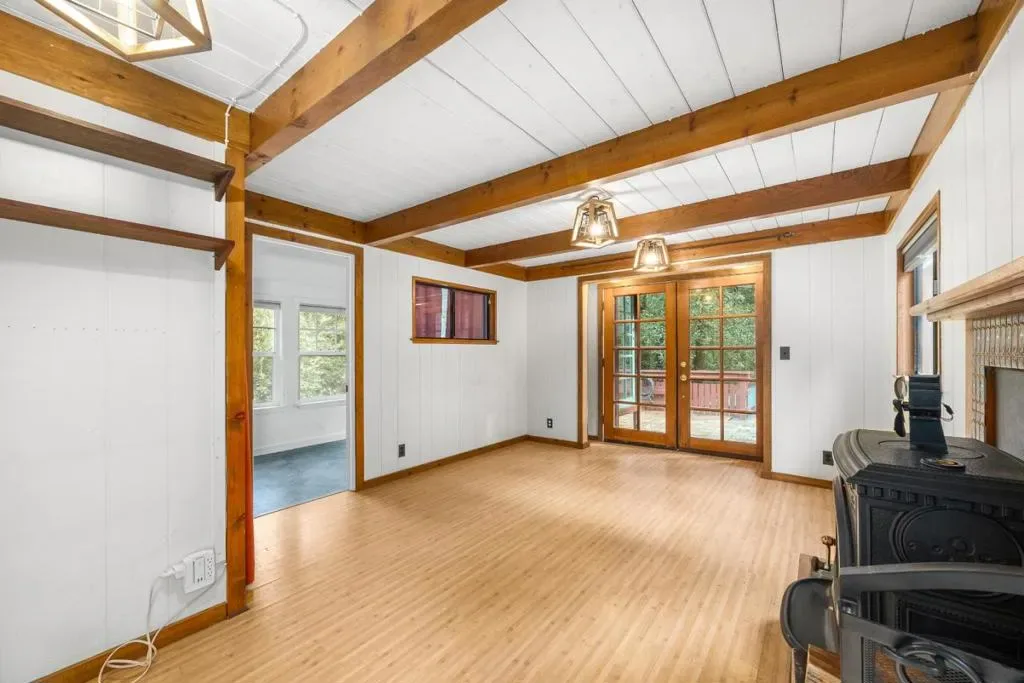 Welcome to this charming 4-bedroom, 2-bathroom retreat nestled in the peaceful community of Ben Lomond. Offering 1,250 sq ft of living space on an expansive 25,352 sq ft lot, this property blends comfort, privacy, and rustic charm. The well-appointed kitchen features tile countertops, an electric oven, microwave, dishwasher, and refrigeratorperfect for everyday living or entertaining. An eat-in dining area adds convenience and warmth. The home showcases beautiful wood flooring throughout and is anchored by a cozy pellet stove fireplace, creating an inviting atmosphere year-round. Step outside and unwind in your private spa/hot tub, ideal for relaxing under the stars. Additional highlights include an indoor laundry area complete with washer and dryer, plus a unique poultry coop for those seeking a touch of country living. Located within the San Lorenzo Valley Unified School District, this home offers a tranquil lifestyle surrounded by nature. Designed for efficient living without a separate family room, every space is thoughtfully utilized. Whether youre looking for a peaceful getaway or a full-time residence, this property delivers comfort, character, and room to breathe