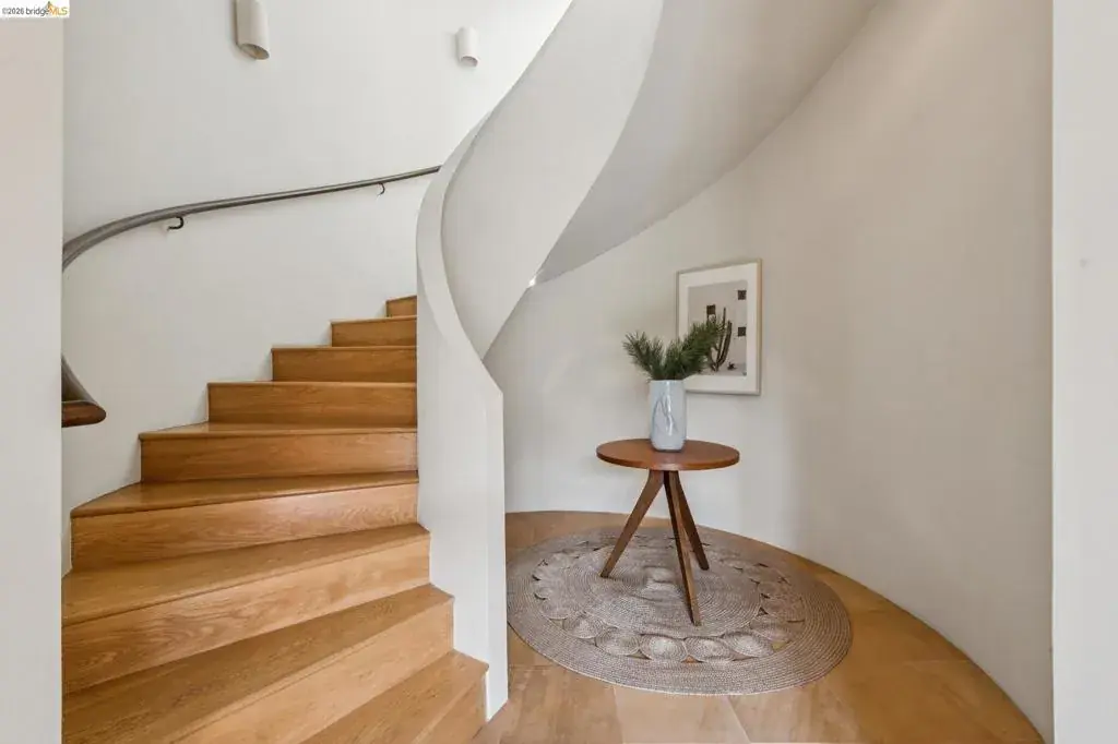 Architectural Brilliance in the Claremont Knolls Experience the artistry of renowned architect David Wilson at 150 Vicente Rd, Berkeley. This stunning home is a showcase of modern elegance, where high-end finishes meet thoughtful design. The dramatic living room, with its soaring ceilings, sets the tone for sophisticated living, while a stylish office loft offers the perfect blend of function and flair. Take in sweeping views of San Francisco and the Bay from nearly every room—an ever-changing backdrop that elevates daily life. The home’s prime location in the lower Claremont Knolls ensures easy access without compromising on scenic beauty. A standout feature is the sculptural main staircase, which evokes the curves of the Guggenheim and serves as an artistic centerpiece to the home. Every detail—from contemporary fixtures to luxurious materials—has been meticulously curated for modern comfort and timeless appeal. This is more than a home—it’s a design-forward sanctuary in one of the East Bay’s most coveted neighborhoods. Don’t miss the rare opportunity to own this architectural gem. BESO Energy Score: 8