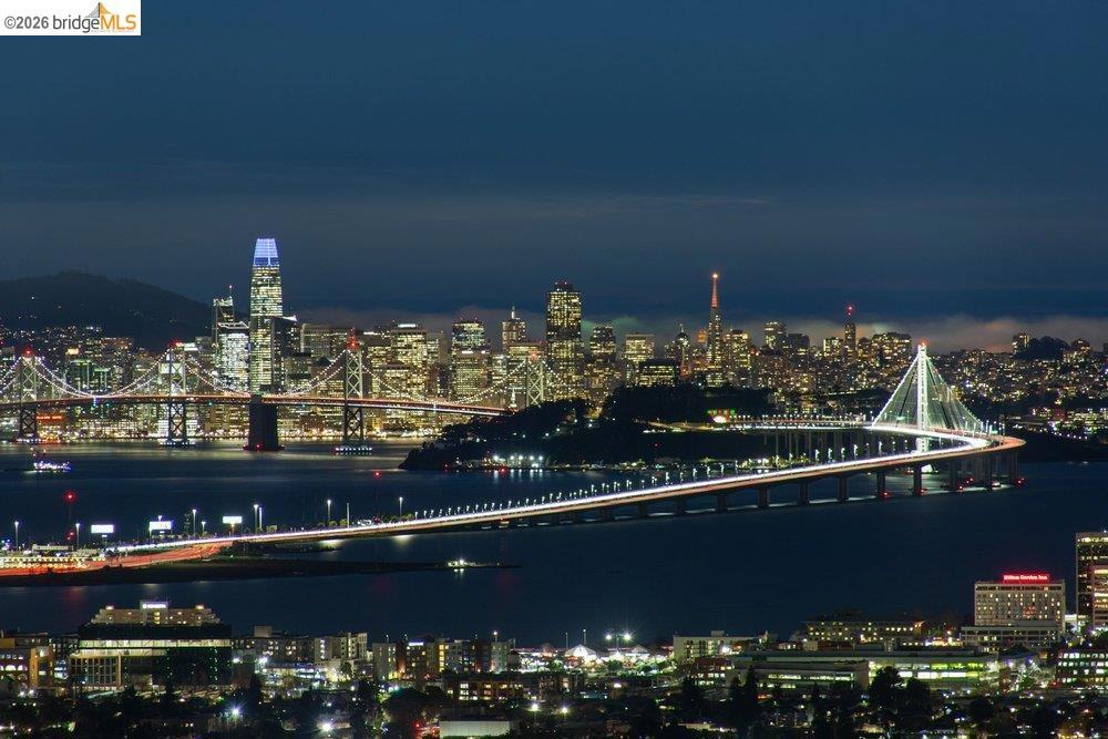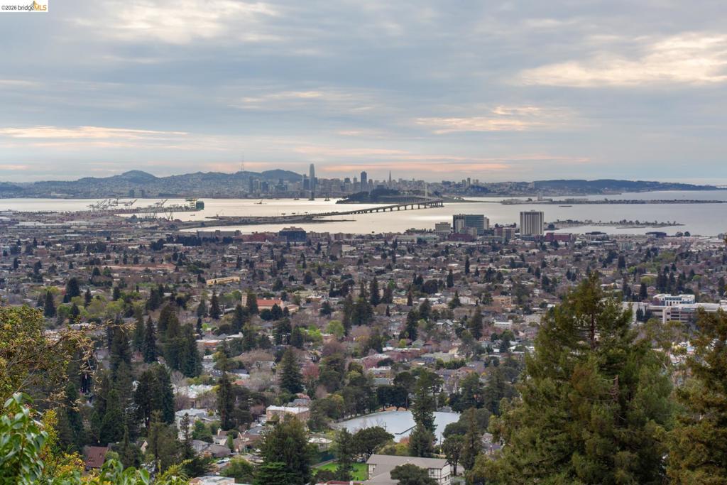 Unobstructed 3-bridge SF BAY VIEWS! Stunning level-in Mid-Century Modern offers the best of both worlds: a serene retreat and quick access to the conveniences of town. Move-in ready. Living/dining ideal for entertaining. Glass doors lead to a room-length viewing deck. Indoor/outdoor flow enhanced by entry courtyard w/sculptural pond. Every room is bathed in natural light and has delightful views. Eat-in kitchen features stainless steel counters, creating a dramatic, clean aesthetic repeated through the house. All floors are hardwood maple. Home boasts four ensuites: Main living level has 2 bedrms/2baths overlooking private courtyard. Upstairs, the spacious primary offers views of SF BAY and Claremont Canyon. Includes: balcony, office alcove, luxurious primary bath w/soaking tub, steam shower, his ‘n hers closets, laundry room. Large studio on lower level with full bath and separate entrance. Don’t miss the Murphy bed and kitchenette. Studio can be used as guest suite, exercise/dance studio, or in-law (no sep utility meter). It has a charming private patio with raised-bed garden. AC. Everything is updated with style, even the 2-car garage! Solar, Powerwall, EV Charger. Just minutes to the Claremont Hotel, Peet’s Coffee, Rockridge, Elmwood, hiking trails, freeway access.