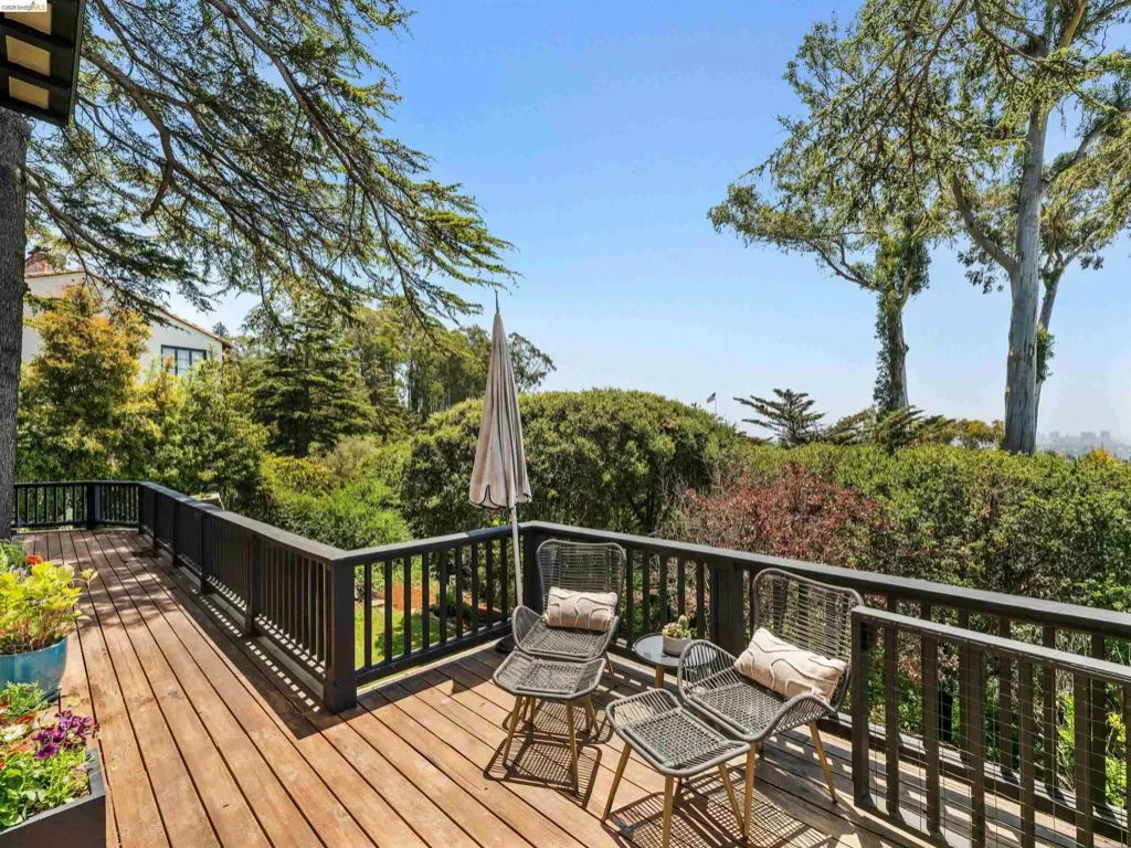 San Francisco, Bay Bridge & Golden Gate Views | Rare Rainbow Unicorn Bathed in natural light from every direction, this beautifully updated Tudor offers stunning views on all levels and an ideal location near hiking trails, the Claremont pool and tennis club, favorite coffee shops, restaurants, Elmwood, and the Transbay Express. Set on a generous half-acre lot, the home features a flexible, thoughtful layout with four bedrooms, three and a half baths, and a dedicated office. Upstairs, three spacious bedrooms and two full baths include a serene primary suite with a fireplace, large walk-in closet, and an updated en suite bathroom. On the main level, expansive public rooms flow beautifully for entertaining, with a welcoming office and level-in entry. The living room features a charming fireplace and generous windows that fill the space with sunlight. The oversized, updated kitchen is a chef’s dream with high-end appliances and room to gather. Downstairs, a large bonus room, additional bedroom, and full bath offer great flexibility for guests, work, or play—plus a sizable mudroom and a two-car garage. Step outside from the bonus room to a wide deck overlooking the park-like garden and level lawn below—perfect for entertaining, relaxing, or simply taking in the view.