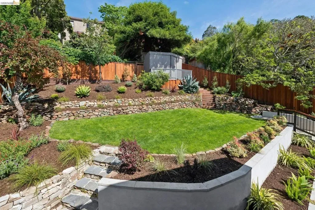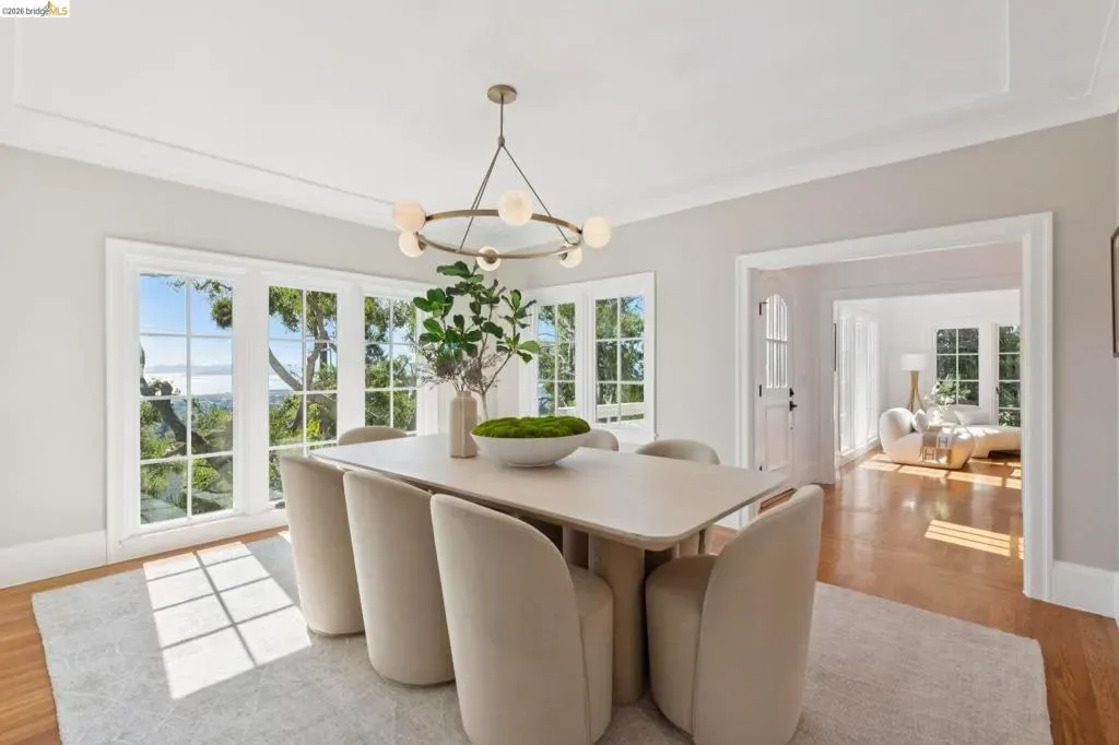 New Listing! Spectacular Berkeley Hills Traditional with dramatic views of the Golden Gate Bridge, Bay Bridge and San Francisco. The elegant living room flows seamlessly into a spacious family room which opens to a sun-drenched backyard patio. A formal dining room of exceptional scale easily accommodates large gatherings and adjoins to the spectacular gourmet kitchen. The kitchen wraps around a generous center island offering plenty of room for the chef to create while entertaining guests. French doors extend the living space outdoors to a meticulously landscaped, terraced garden featuring a patio and level lawn. Upstairs, two generously sized bedrooms share a well-appointed bathroom. The luxurious primary suite serves as a private retreat featuring sweeping views, a spa-like bathroom, and a tranquil sitting room. The lower level offers a versatile in-law space with a separate entrance, perfect for guests. Completing this gem is a detached two-car garage with a connecting office, ideal for today’s work-from-home needs. BESO score: 1 Open Sunday 2-4:30