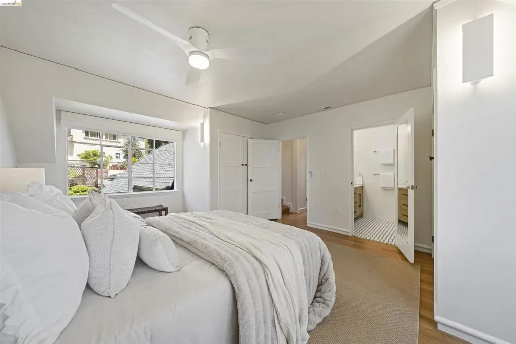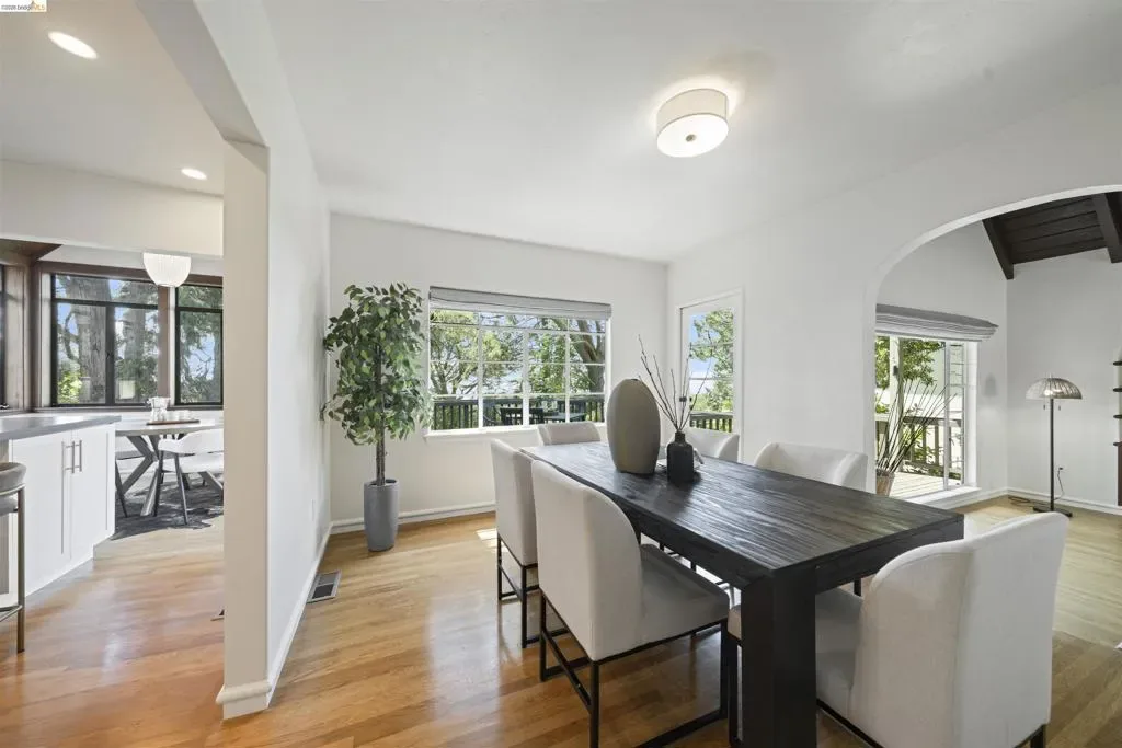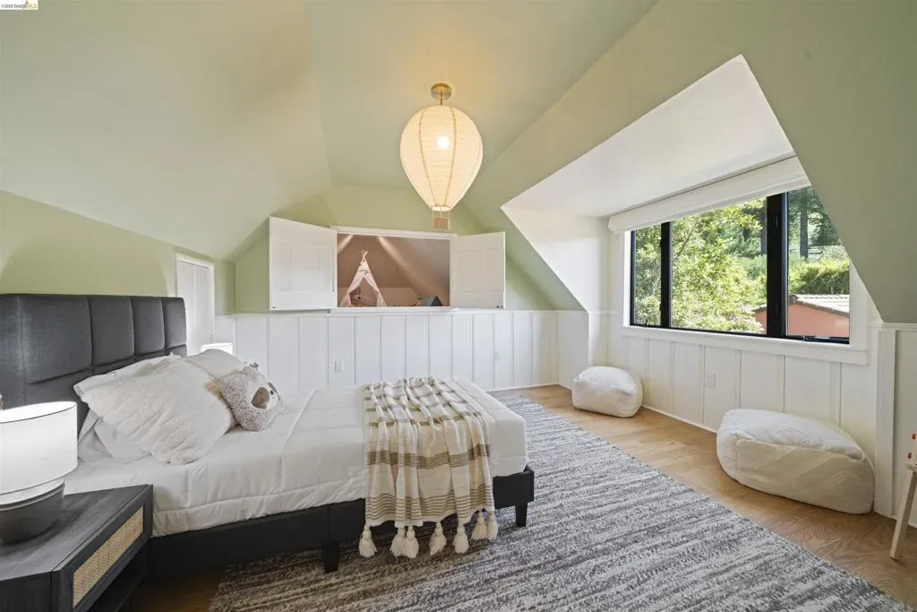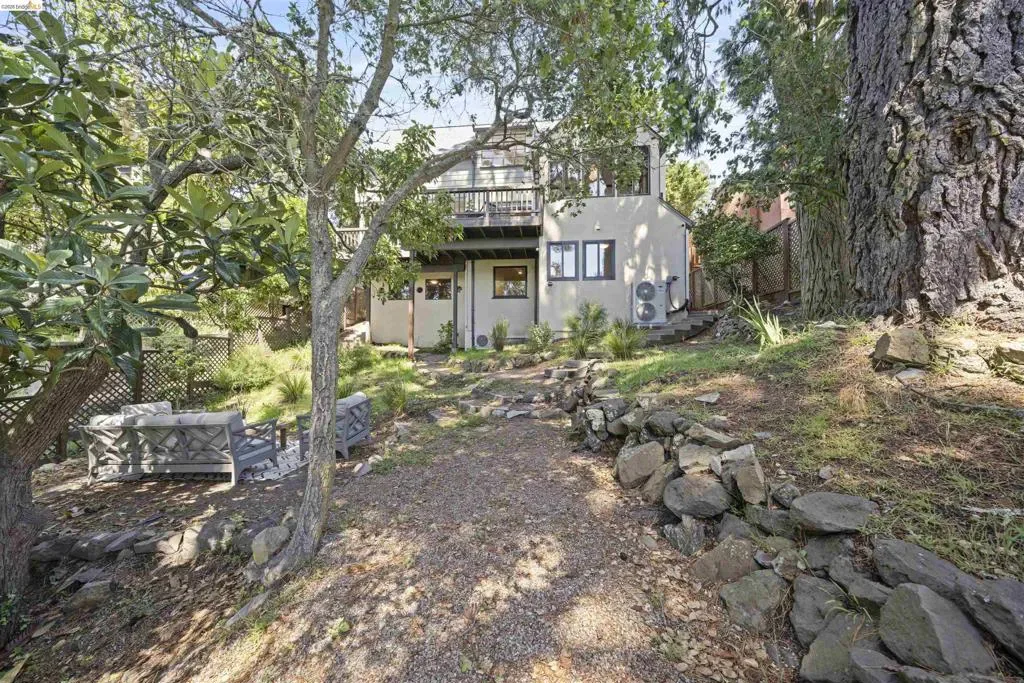 Tucked into the historic Cragmont District, 1170 Sterling Ave is an enchanting 1938 storybook Tudor that perfectly captures the “Simple Home” philosophy of the Berkeley Hills where homes were designed to harmonize with the natural beauty of the hills. Welcoming you home, a charming private courtyard with patio offers a peaceful retreat framed by lush greenery and classic brickwork. This 4-bed, 3-bath home blends timeless architectural charm with modern comfort across 2,490 square feet. Inside, a graceful curved staircase, exposed beams, and arched entryways create a warm, inviting atmosphere. The heart of the home is a beautifully updated kitchen that flows into a light filled sunroom and an expansive deck, ideal for morning coffee or evening sunsets over the Golden Gate Bridge. The living room features vaulted ceilings and a classic fireplace providing the perfect setting for both peaceful nights and lively gatherings. One bedroom and an updated bathroom complete the main floor. Upstairs, the serene primary suite with sweeping Bay views is complemented by an additional bright bedroom with 220 square foot bonus loft, ideal for a nursery or office. Downstairs, a permitted one bedroom JADU with an office space, dining area, separate entrance and a 395 square foot bonus room provides flexibility for guests or rental income. Outside, enjoy a peaceful backyard with a flourishing loquat tree and direct access to Stevenson Path, connecting you to Tilden Park and the Rose Garden. This is more than a home; it’s a lifestyle rooted in nature and community. Home Energy Score 4. Transparent Price.