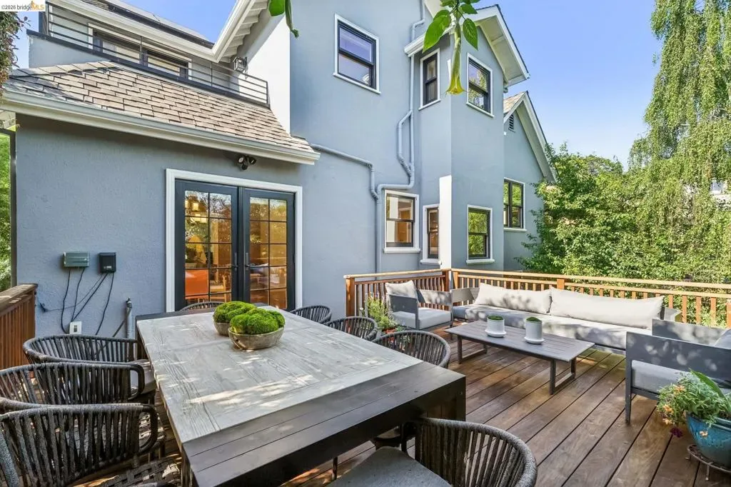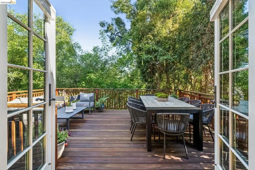 Extensively updated 5 bedroom, 3.5 bath home with a 84 Walk Score, where quality and ease are immediately felt. Hardwood floors extend throughout, bringing warmth and quiet continuity. Electrical and plumbing have been updated, solar panels add efficiency, and double pane windows throughout the home. https://1858sanlorenzo.com The layout is easy and livable. Three bedrooms upstairs, including a primary suite with a generous closet and en suite bathroom. High ceilings, and living spaces that open naturally to a deck off the main level, creating an easy indoor outdoor rhythm. An attached garage adds convenience. On the lower level, a separate au pair or guest space offers flexibility for extended family, a nanny, or a more private retreat. Thoughtful bonus spaces and ample storage are integrated throughout, supporting the way the home functions day to day without compromise. The grounds are mature and composed, with hardscaping and established landscaping that create a sense of privacy. And then, something rare. A creek runs through the backyard, crossed by two bridges, bringing a quiet sense of nature to the property. Set within a close knit neighborhood where neighbors know one another, this is a home that feels both refined and deeply comfortable. 10/10 HES Beso Certified
