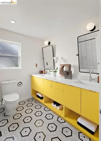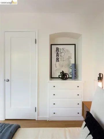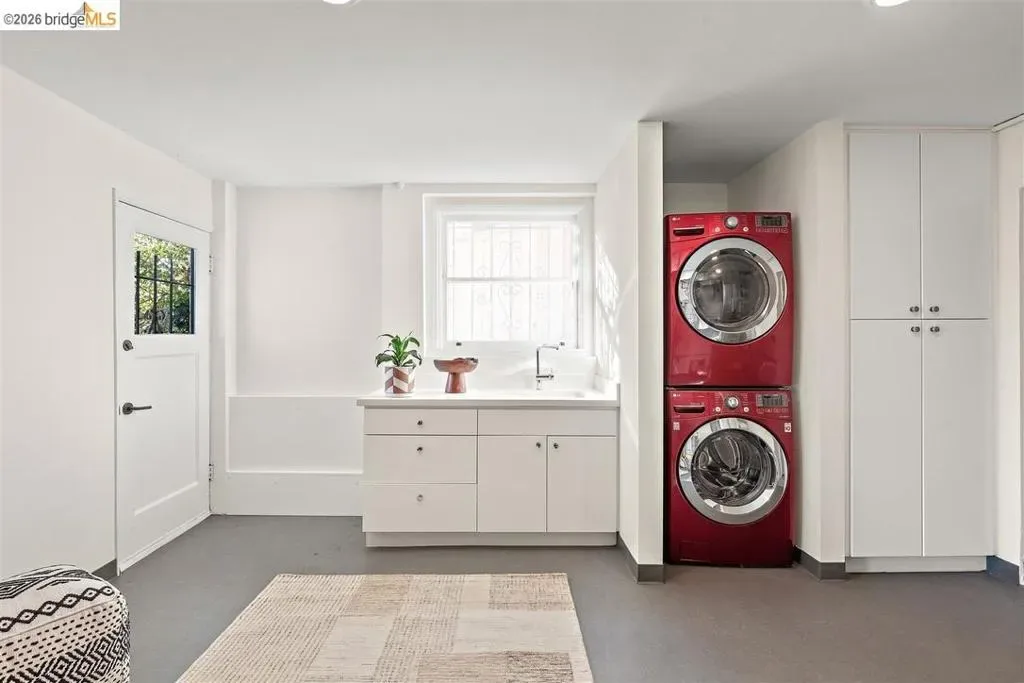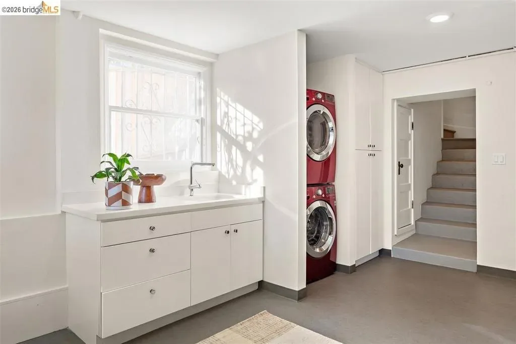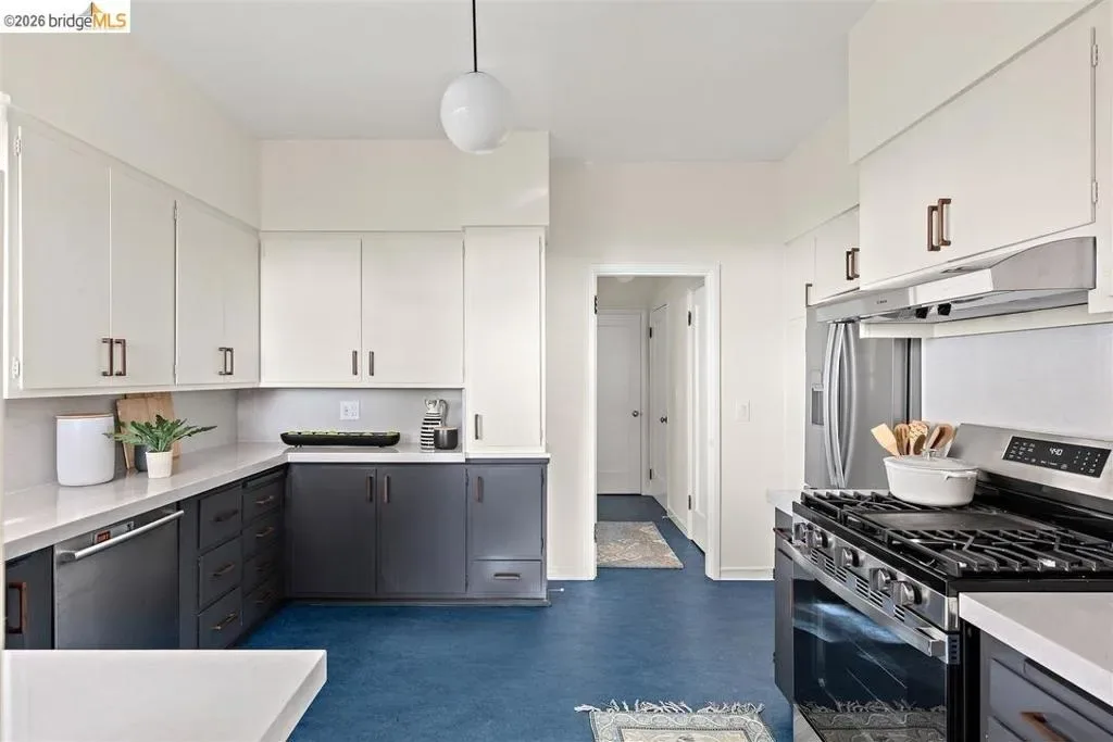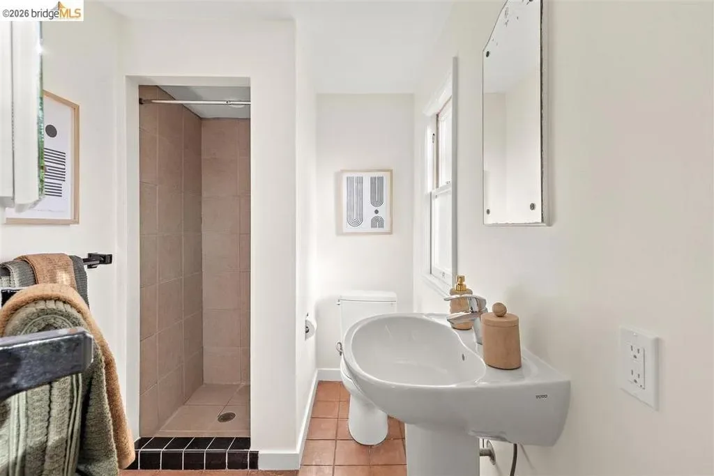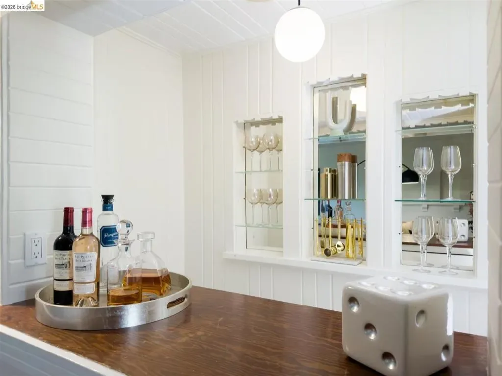 Located on a quiet, tree-lined street in Upper Thousand Oaks, this striking 5-bedroom, 4.5-bath home offers magnificent views. Timeless architectural details—hardwood floors, beamed ceilings, built-ins, and alcoves—are complemented by modern updates. Large living and dining rooms and a well-appointed kitchen create an easy flow for relaxation and entertaining. A graceful, curved staircase leads to the first landing, where an ensuite bedroom offers comfort and privacy. Upstairs, the primary suite features an updated bathroom and a sitting room opening to a deck with Bay views. Two additional bedrooms, a playroom, and an updated bathroom complete the upper level. The lower level includes a large family room with wet bar, ensuite bedroom, and garden access. Laundry, storage, and a two-car garage with interior access add functionality. The backyard is a private oasis with mature landscaping and room to garden, lounge, or play. Upgrades include electrical, helical pier foundation, Andersen windows, and solar. Close to Arlington shops, Solano Avenue, transportation, and Tilden Park. BESO energy score 2.