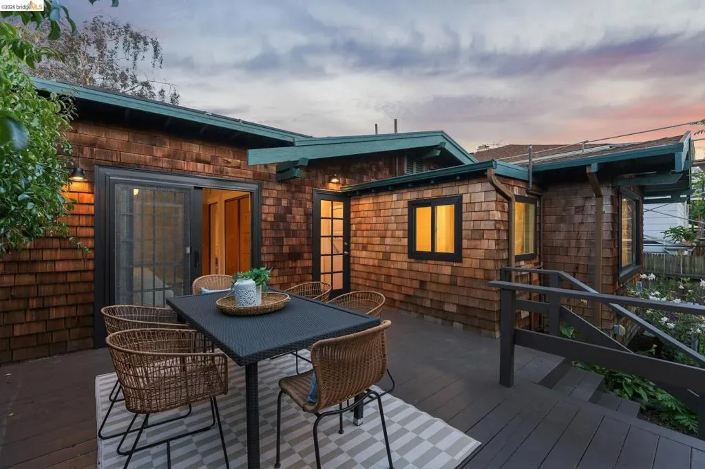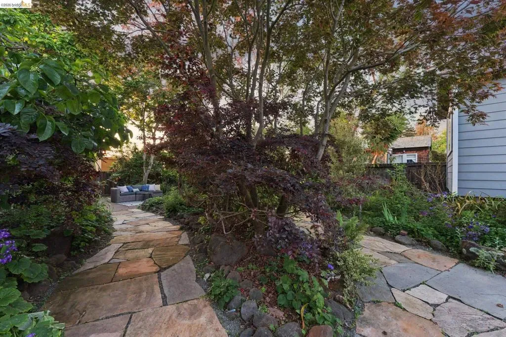 A brown shingle Craftsman in Westbrae with presence, warmth, and a rare sense of privacy, tucked on a dead-end street just blocks from the neighborhood’s everyday essentials. Four bedrooms and two full baths unfold around a beautifully renovated open-concept kitchen that naturally becomes the center of the home. Hardwood floors run throughout, and the living room fireplace anchors the space with timeless Craftsman character. Behind the house, a long, verdant garden stretches outward, layered with mature plantings and a feeling of retreat. Just off the back door, a deck creates an easy place for outdoor dining or morning coffee among the greenery. A detached studio with its own full bath and kitchenette offers uncommon flexibility for guests, work, or creative use. Close to Monterey Market, Headlands Biergarten, Ohlone bike path, multiple cafes, BART, and more. This is Westbrae at its finest, connected and distinctly Berkeley. BESO score 10.