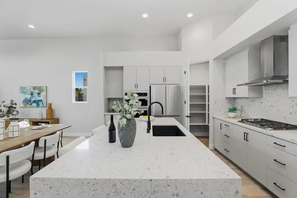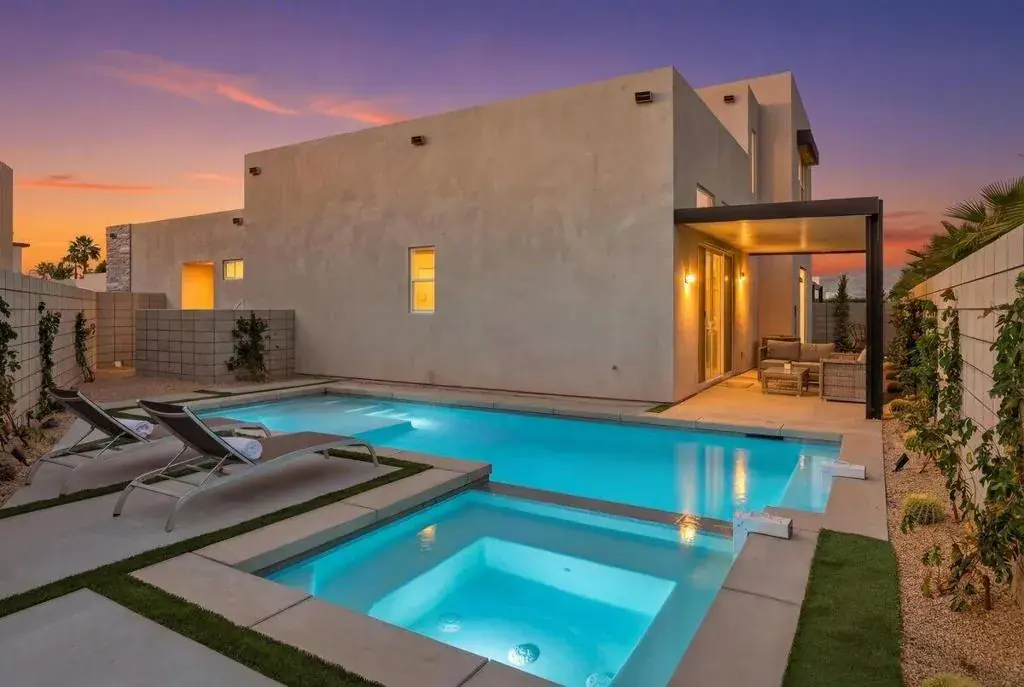 This gorgeous Two Story Plan 3 is 2,292 Sq. Ft. and has 4 Bedrooms 3 Baths. Gourmet Kitchen with large Kitchen Island, LG Stainless Steel Appliances including refrigerator, Upgraded Quartz Countertops, Extended Tile Flooring, Carpeting just in the Bedrooms, Upgraded Tiled Showers, Bedroom 3 has sky Viewing Deck to capture the majestic Santa Rosa Mountains, Swimming Pool & Spa, Rear Yard Landscape and Solar System is owned by the Buyer. This Home is on Condo Map/PUD.