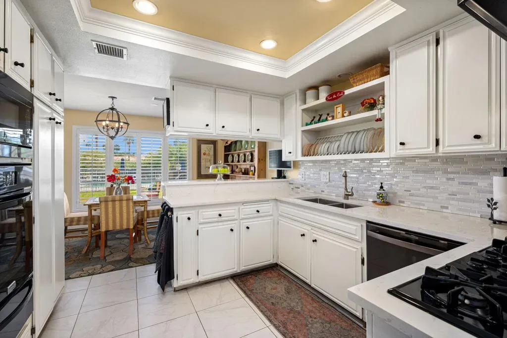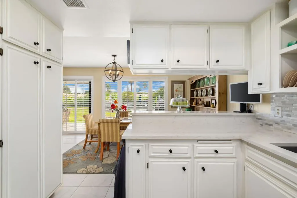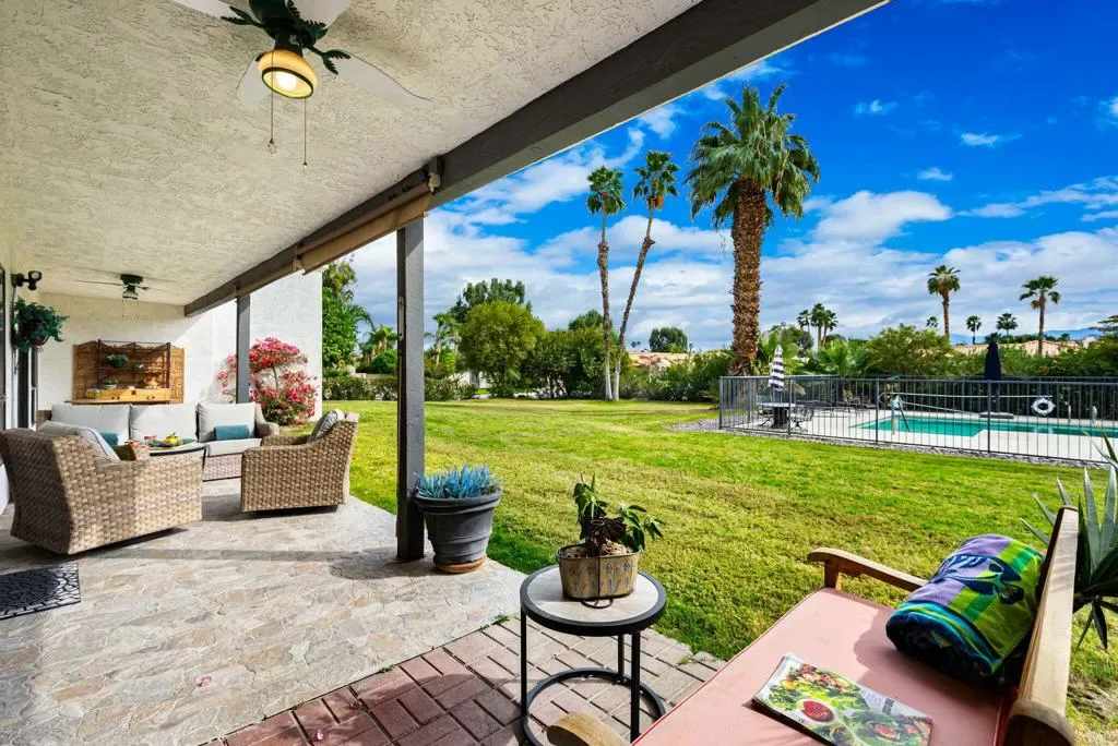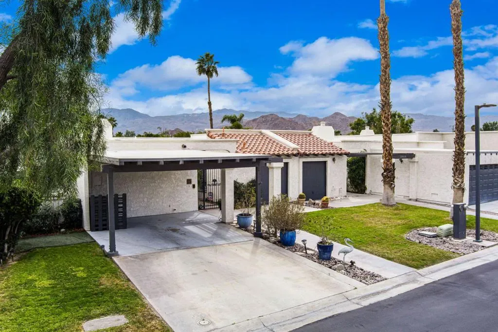 Exceptional Value! Opportunity Awaits! Don’t miss out on an Incredible opportunity to own this bright and spacious, meticulously maintained, 2-bedroom/2-bath, plus Den, Condo/Home, complete with Plantation Shutters throughout and all the Charm one can hope for, situated on a quiet cul-de-sac in prestigious Bermuda Dunes Country Club! This Beautiful Home is a Gem of a find with amazing light, open energy flow and Views! The large comfortable Great Room with a cozy fireplace has huge windows and Slider doors opening out to a long patio on a lovely greenbelt, with a swimming pool and spa, allowing for the best of Indoor/Outdoor Living and Entertaining on your back patio and green.The Kitchen is bright, warm and upgraded with coffered ceilings adding spaciousness and beauty to the room, new appliances, new quartz countertops, sink, hardware, recessed lighting and more! The Central Vacuum system makes cleaning a breeze and a separate laundry room between the 2 Ensuite Bedrooms makes for easy going Laundry Days. Parking for 2 cars under a covered carport and an enclosed garage for a golf cart, workshop or storage space. The HOA Dues Include: Roof maintenance, water, pool and spa maintenance, Grounds and landscaping of common areas, 24/7 guard gated and roving security, monitored gates and cable TV. Home is move-in-ready and priced to sell! So come enjoy the resort lifestyle in desirable Bermuda Dunes Country Club at a phenomenal price! Exceptional Value!! Ask Agent about Seller offer to pay HOA II dues for 1 year with Full price offer Don’t delay, call today to schedule your private showing!