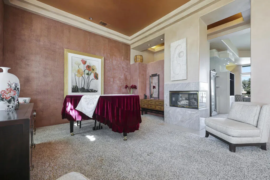 Stunning custom home built by Fox Brothers, sits on an elevated golf course lot with views of a lake and the mountains beyond. This luxurious 3136 sq.ft. home has it all: 3 bedrooms, 3.5 bathrooms, gourmet kitchen open to the living areas, plus an inviting bar with a frig and icemaker – all with VIEWS!! The Chef’s kitchen boasts double ovens, double dishwashers, & two refrigerated drawers located by the 6-burner gas cooktop. The primary suite is located on one side of the home and has a convenient retreat that is currently used as an office. There is a Texas-sized walk-in closet and a separate tub and spacious shower as well as granite counters and plenty of space. The two guest bedrooms are en-suite. The owner has done numerous upgrades: Replaced 22 windows; installed one new A/C system; added a built-in surround sound stereo system; replaced shades on all sliders; removed a large tree on golf course to enhance the view; and added an electric car charger in the three-car garage. The best is the beautifully landscaped backyard with saline pool/spa and outdoor fireplace with privacy to enjoy the stunning views. IID electric service for lower energy costs, low HOA of only $214 a month (includes cable TV and internet), and conveniently located near the Acrisure Arena and freeways. Optional memberships are available at Bermuda Dunes Country Club (see attached document).