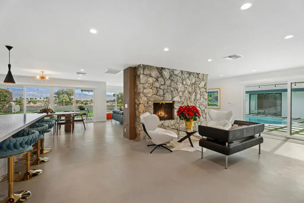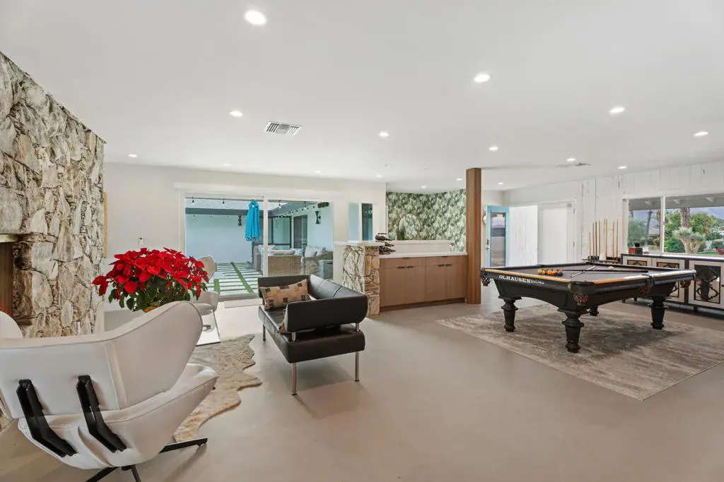 Leased 2/1/26-4/23/26 Check out our remodel! Come see for yourself, a Custom Mid-Century Entertainers Classic, gated golf course community with private pool, above ground hot tub, private gate entry. Stunning 4 bedroom 3.5 bath, with a Game room! Perched on a hill with amazing views of golf course, & mountains, close proximity to EVERYTHING, Polo grounds, Tennis, shopping, restaurants, easy freeway access. Enjoy the very private backyard with awesome views of the #2 Green on Classic 3! Even has an RV/Tesla Charger Hook ups in the garage!