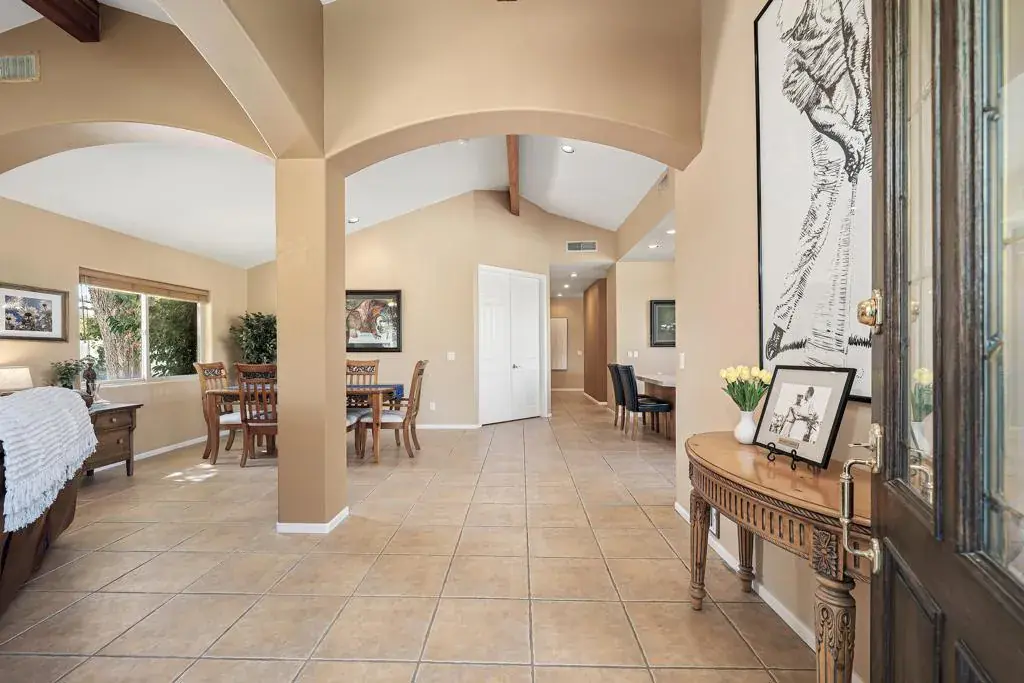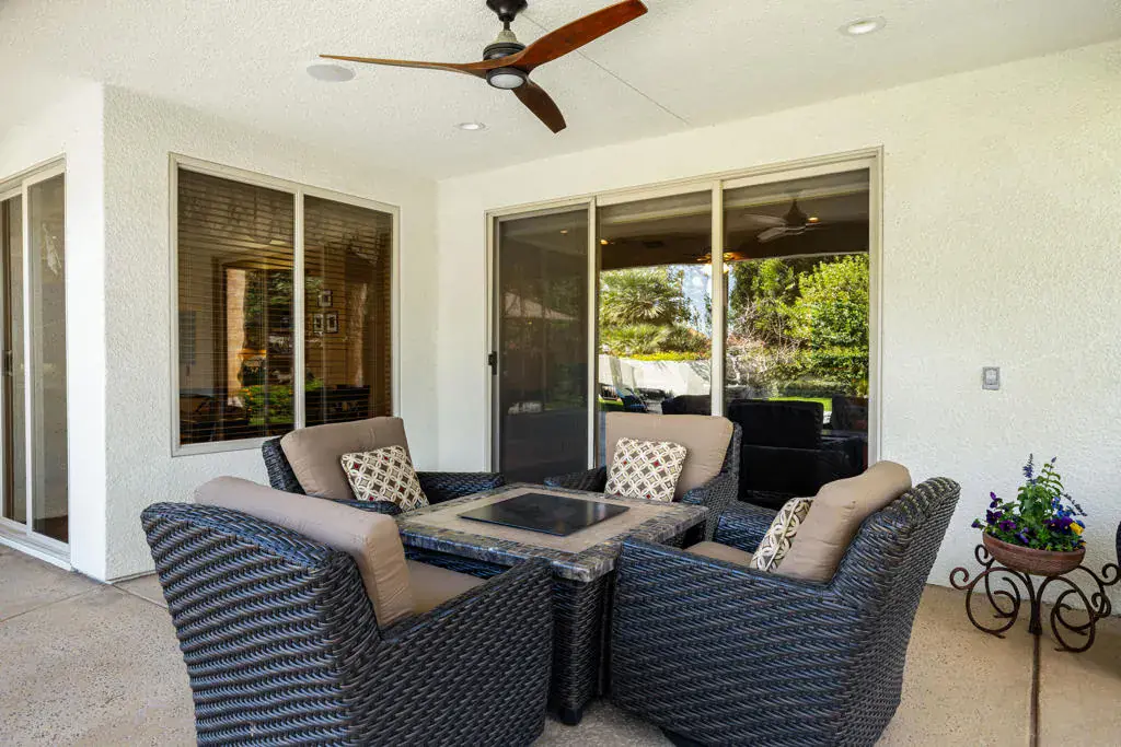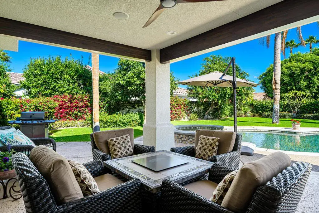 Situated on a gated cul-de-sac, this spacious residence offers over 3,500 square feet of comfortable desert living with a thoughtfully designed layout and fully paid-for solar, providing long-term energy efficiency and cost savings.The home features four bedrooms and four bathrooms, including generously sized guest rooms — a refreshing change from the trend of compact secondary bedrooms — offering plenty of space for guests, hobbies, or home offices.The flexible floor plan provides expansive living and gathering areas filled with natural light, creating an inviting environment for both everyday living and entertaining. Large windows throughout the home capture views of the backyard and enhance the open, airy feel.A long private driveway adds both curb appeal and functionality, complete with a basketball hoop and ample space for parking and recreation. The gated cul-de-sac setting offers added privacy and a peaceful neighborhood feel.Golf enthusiasts will appreciate the close proximity to Bermuda Dunes Country Club, where membership opportunities are available without residing within the community. Conveniently located near shopping, dining, schools, and everyday amenities, this home combines space, efficiency, comfort, and an ideal desert location.