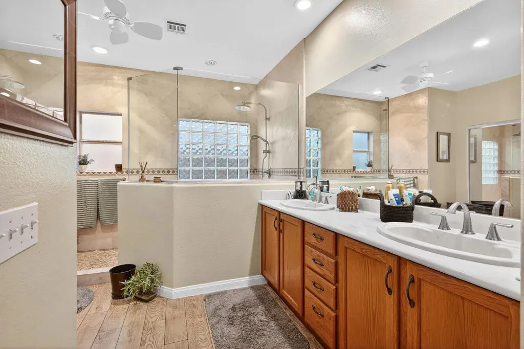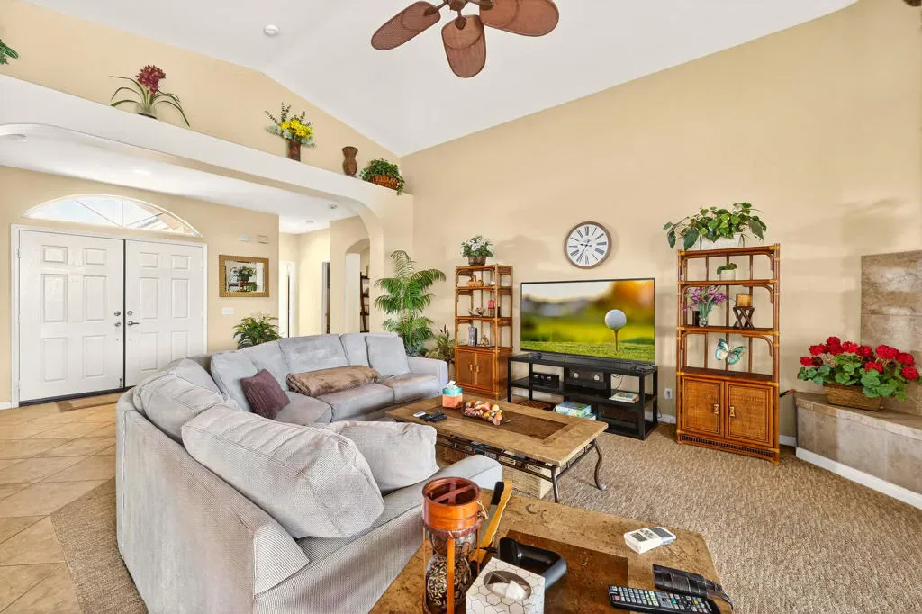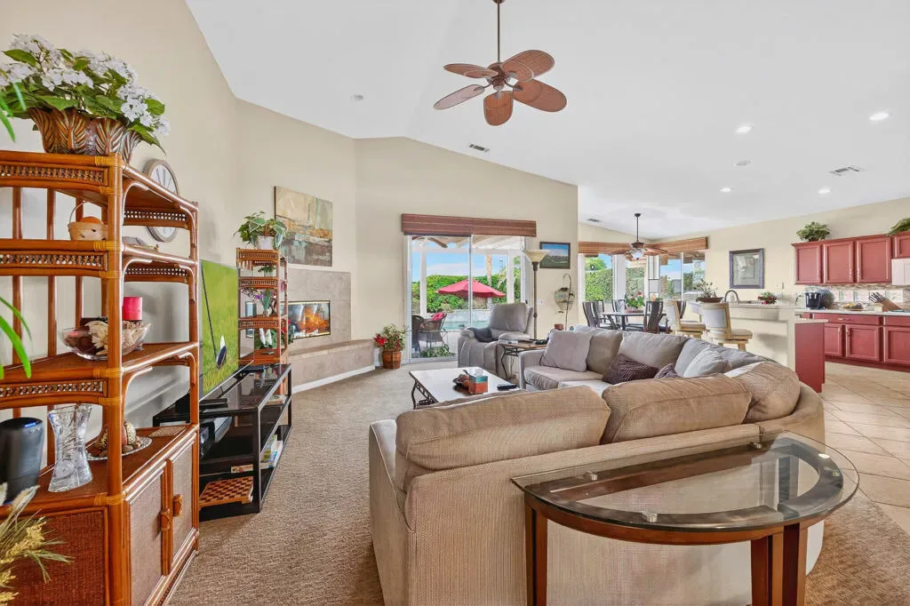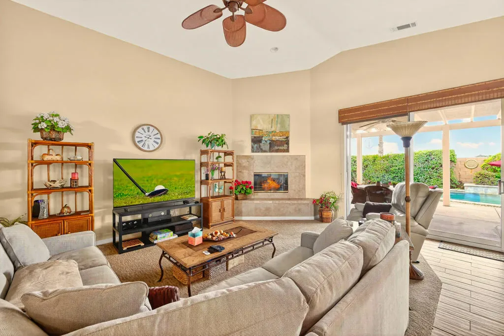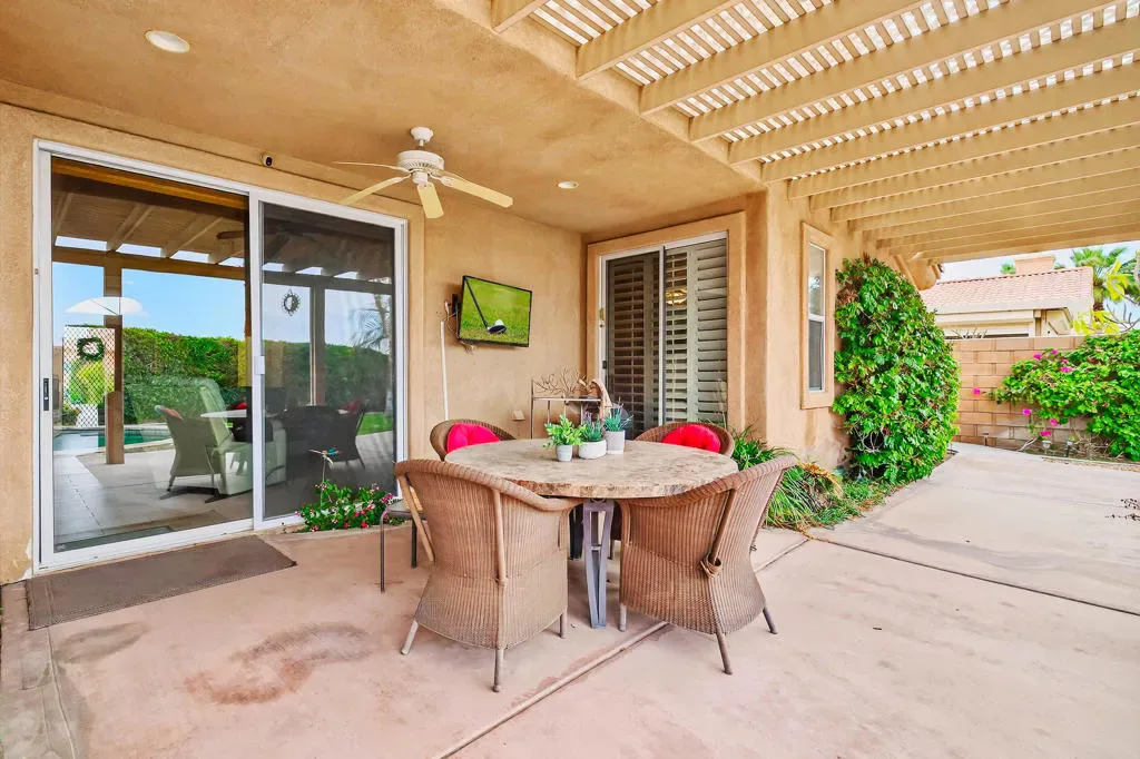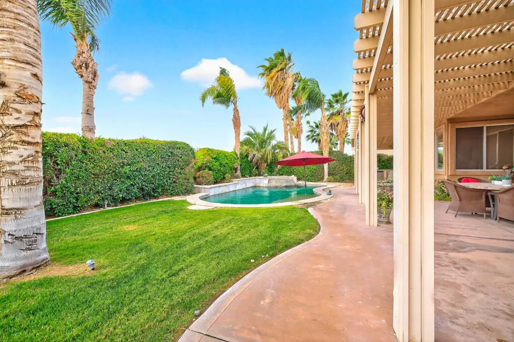 Welcome home to this very spacious, great looking home in Bermuda Dunes at Bermuda Vista’s., Located right in the heart of the desert!, it’s a great location & central to North La Quinta & North Palm Desert services, in such close proximity to shopping, dining, entertainment & the Indian Wells Tennis Gardens, Acrisure Arena & annual recurring events like Stagecoach/Coachella music festivals! So, this beautiful home residence offers a myriad of features that make it a must-see home that offers immense value to your all home buying choices to consider today in your next home or investment, Calico Glen is tucked away in a nice/quiet Cul-de-sac Street in unincorporated Riverside county & near 10 fwy, Washington & Shopping areas, & a multitude of other dining options that give in addition, to, options to attend recognized accredited schools & all the major Coachella Valley favorite to do’s that people from all over the world who come here to enjoy being in such close proximity to all these highly desired destinations that make for great convenience to your daily routine & lifestyle choices around town. This 3bd, 2.5 bath, boasts a very spacious open floor plan, featuring a large family room, living room, with shutters throughout the entire home, with large open kitchen area, Corian counters and lots of cabinet storage, with a breakfast bar to dine or entertain, as well as a separate dining area with large ample space for room & table for 6-8 people. The large primary master bedroom all with raised panel colonist doors, mirrored wardrobe offers a tranquil retreat complete & renovated master bath, dual vanities a custom-built in closet organizer, newly renovated master walk in shower. The 3-car garage amplifies our growing families need for ample covered parking\storage, that you’ll appreciate for cars storage in the driveway, it also provides more ample parking space for you & your guests on property. Finally, the beautiful patio with covered aluma-wood patio with fan that steps into the backyard where you’ll discover an outdoor oasis with a BBQ Island that’s featuring a large pool/spa & cascading water fall features additionally, lush, mature, landscaping, features plenty of patio space pool area but also boasts majestic mountain views that create lasting memories in a serene & quiet yard that is all for your outdoor enjoyment,I would love to schedule your viewing so that you & your family can contemplate how to make this desert home lifestyle home yours.