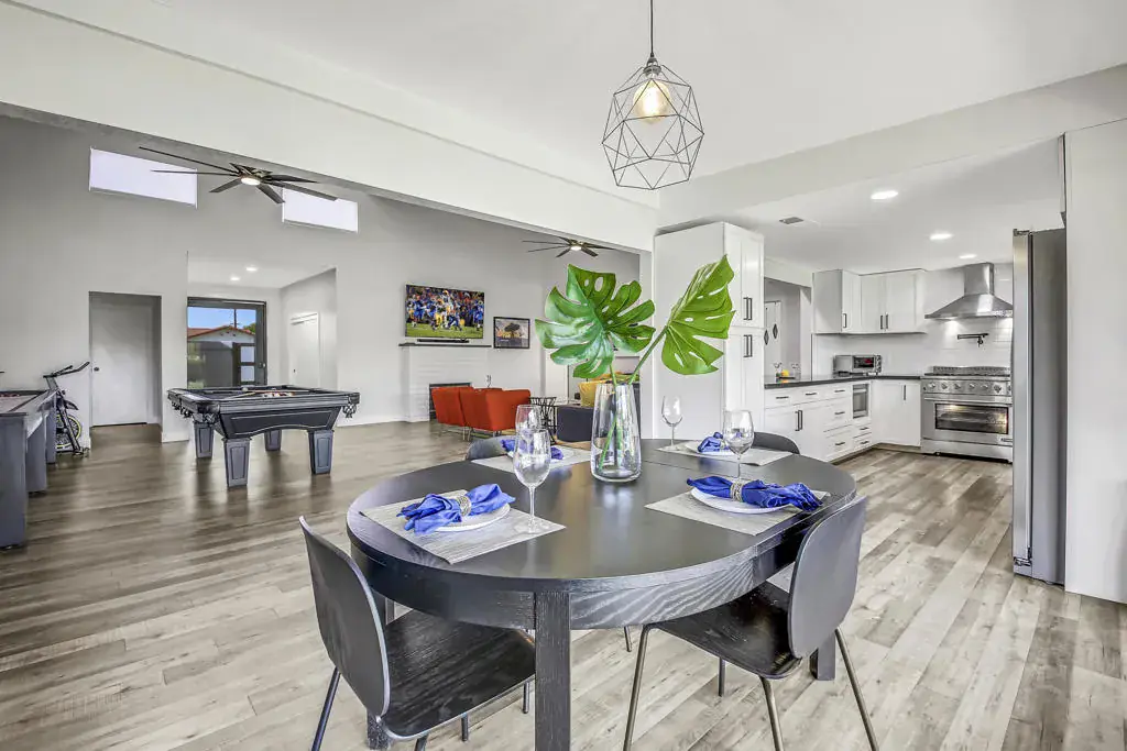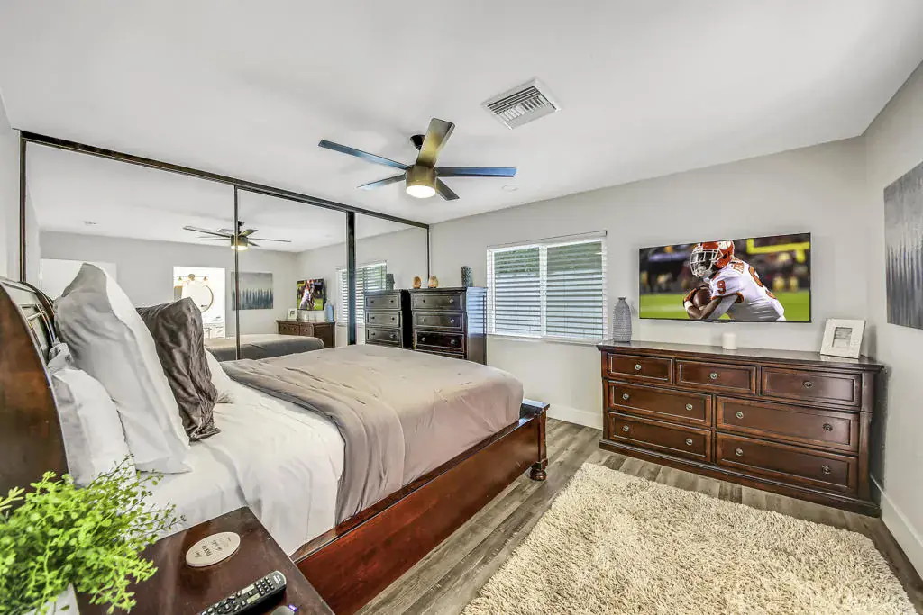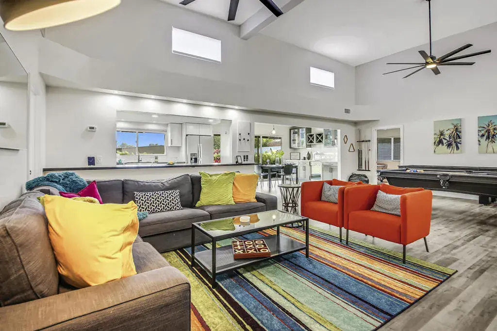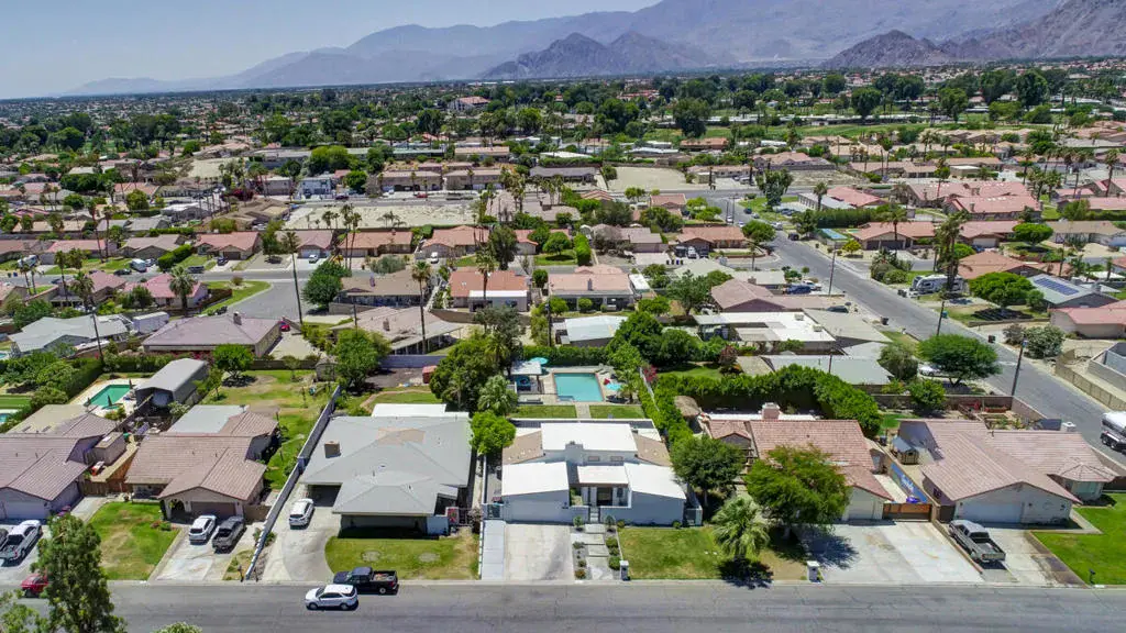This newly remodeled three-bedroom, three-and-a-half-bath masterpiece is truly a showstopper. Situated on an expansive one-third acre lot, no detail has been overlooked and no expense spared. From the custom whole-property misting system to the Vegas-style pergola and designer firepit, this home delivers a private, resort-style experience unlike any other. Perfect second home or short term vacation rental.Soak in the desert sunshine, entertain under the stars, and enjoy breathtaking mountain views from your own backyard oasis.Currently professionally managed by Ven Casa Vacation Rentals, The Penthouse has become a sought-after destination for family gatherings, bachelorette celebrations, birthday weekends, and luxury getaways. Guests travel from around the world to experience the elevated, personalized stay this property provides–an unforgettable retreat that keeps visitors coming back.Ideally located just minutes from premier destinations including Empire Polo Club, Indian Wells Tennis Garden, Acrisure Arena, and vibrant Palm Springs, this home places you at the center of it all while still offering privacy and tranquility.Offered with the option to purchase fully furnished, this is a rare opportunity to acquire a turnkey luxury property with proven rental appeal.Will you be the one to add this dream home to your portfolio? Your opportunity is here.This property currently has over 40,000 in gross future rentals on the books. Buy and start making passive income immediately!!Opportunity to add ADU, pickleball and many other things to increase profitability. Hurry because this one will go quick!***Neighboring property was just listed for sale. Interested in purchasing side by side rentals, now is your chance!