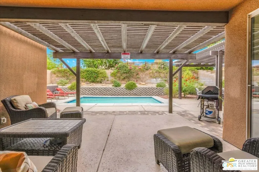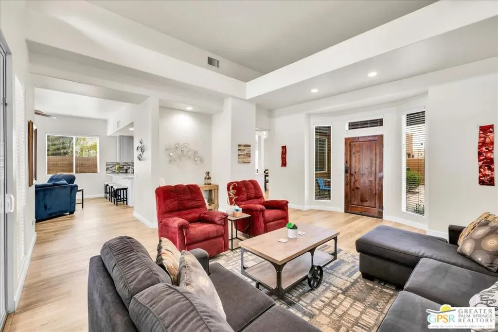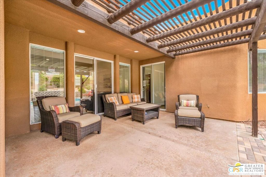 Welcome to Casa de Los Sueno’s ” House of Dreams “. This Southwestern sanctuary is located in the Sedona community in the unincorporated city of Bermuda Dunes! Situated on a Cul de Sac street of homes of similar quality of construction and appeal, this home is ready for you to purchase as your primary dream home OR it is turnkey furnished and ready to operate as an Airbnb for which it is currently being used as! Minimal rental restrictions here!!! Polo grounds just a few minutes away. Most all community services are within excellent proximity as is freeway 10 access! Casa de Los Sueno’s has an excellent floor plan which include a large kitchen with an island, breakfast counter, coffee bar and large dining room area which seats 12. Off of the Dining area is a separate extra-large bedroom/bathroom that is currently used to sleep 6 comfortably with its own self-contained fully upgraded bathroom and eating area. This room could easily be used as self-contained guest quarters or a separate rental from the main house, it is self-contained and accessed from the interior of the home and has a separate exterior door as well. There is a great room off of the kitchen with a raised hearth fireplace. The living room has high ceilings and opens up to the rear extensive concrete patio and saltwater pool which has all newer pool equipment and heater. In addition there is a concrete retaining wall which is elevated to the rear neighbor and offers excellent privacy. The primary suite is separated from the other three bedrooms and is an ensuite which offers remodeled bathroom with dual sink, soaking tub and large glass enclosed shower with bench and assist handle. The front of the property has a long concrete driveway which leads to an insulated oversized two car garage. The front entry is enclosed with a front courtyard fence and patio area. There are dual zoned HVAC units which are located on the roof and two water heater tanks. The HOA has two small grass areas along with the SEDONA sign, those are the only common areas for which there is an annual HOA fee of $240.00 per YEAR! This development has extremely amazing AIRBNB potential with minimal restrictions as well as a private dream home potential for you to own!