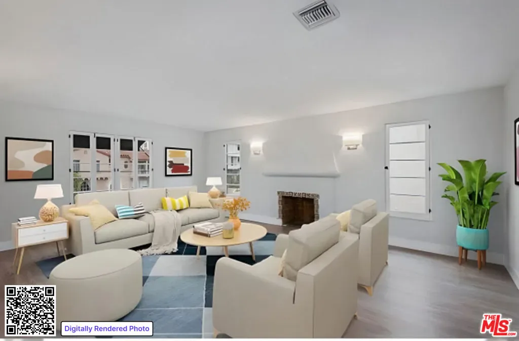 Extra large, bright and airy 3 bedroom upper unit in a beautifully renovated Spanish style duplex that feels like a home! Huge living room with high ceilings and a decorative fireplace. Remodeled large kitchen with brand new cabinets, quartz countertops and appliances that opens to the dining area or family room and a large side balcony. Two newly renovated full bathrooms. Additional features include a Nest central Air/Heat system, separate laundry room leading to a private back door, 2 car garage, gorgeous wood floors throughout, newly repiped and conveniently located close to Restaurant Row, Cedars-Sinai, shopping, several fitness studios. All that and located in the Beverly HIlls School District. Call/text Barbara to schedule a tour.