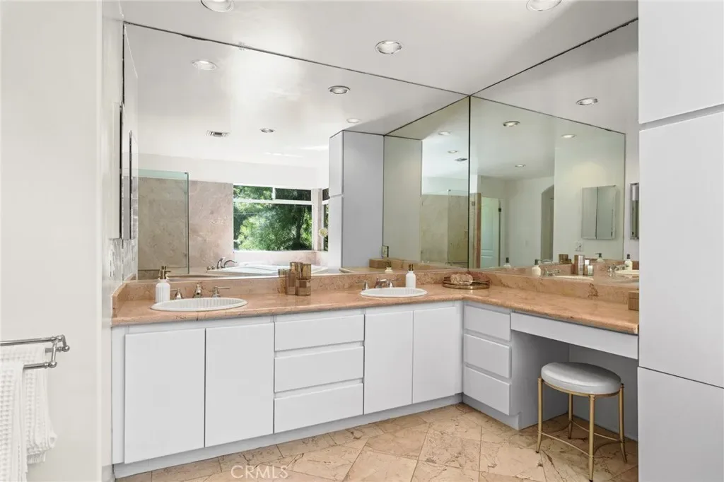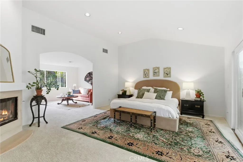 Upstairs, the primary suite lives like a private sanctuary, with soaring ceilings, a separate sitting area, a cozy gas fireplace, and over 1,000 square feet of comfort that makes long days feel shorter. Sliding glass doors open to a private terra cotta terrace for sunbathing or dinner al fresco. The spa-inspired primary bathroom is appointed with marble surfaces, a jetted soaking tub, and dual walk-in closets, evoking the luxury of a high-end spa.