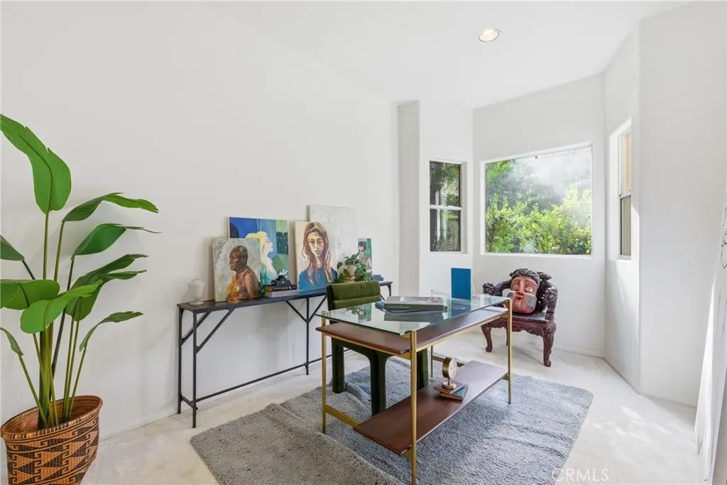 A marble entry introduces a bedroom perfect as a guest suite, office, or creative studio, plus full bath and direct access to the attached two-car garage for easy parking and storage.