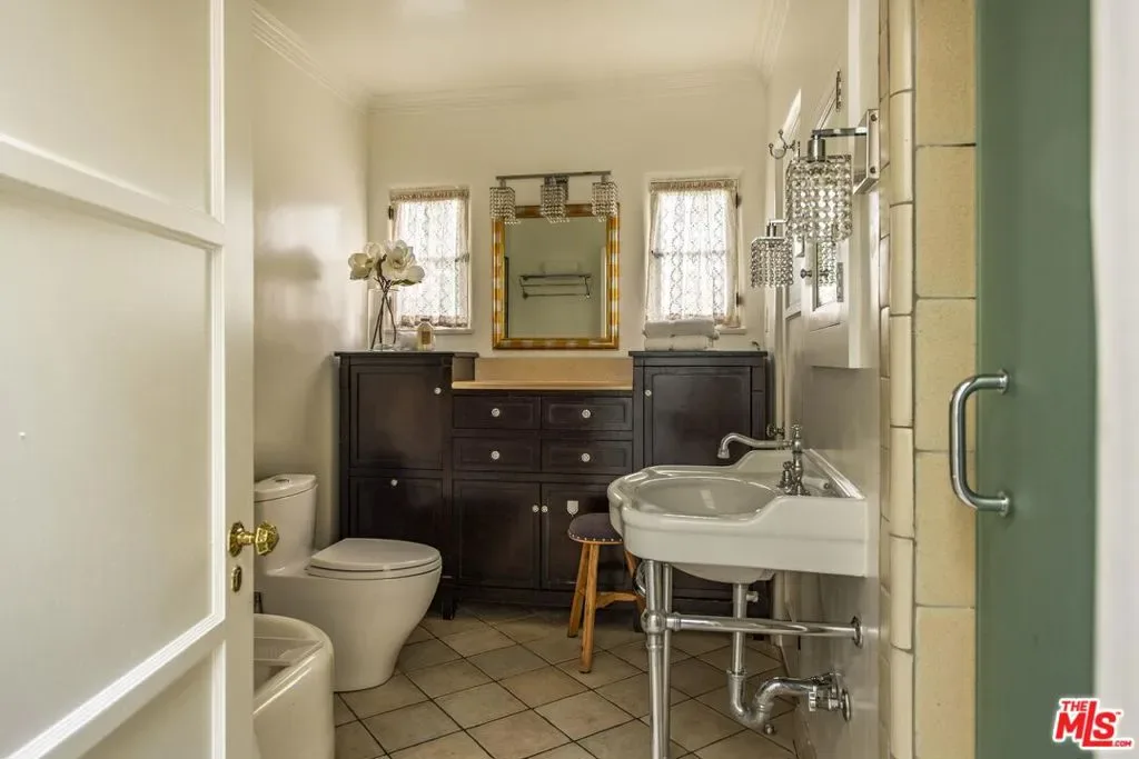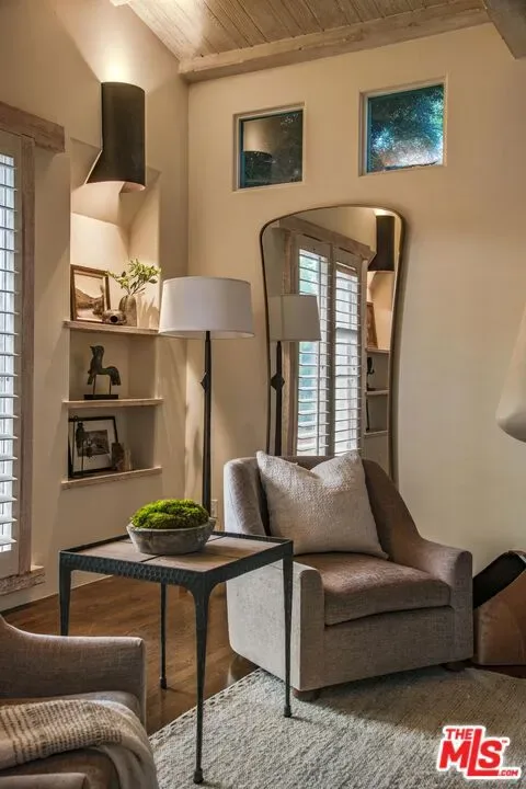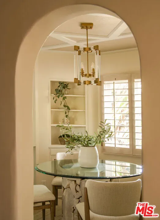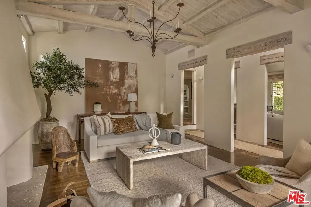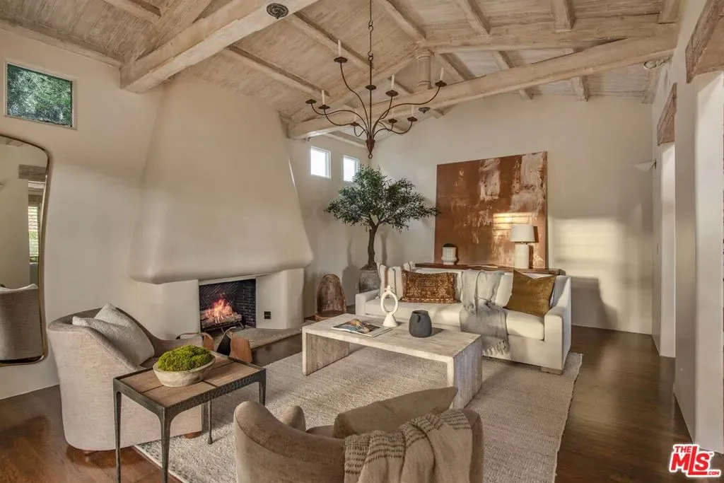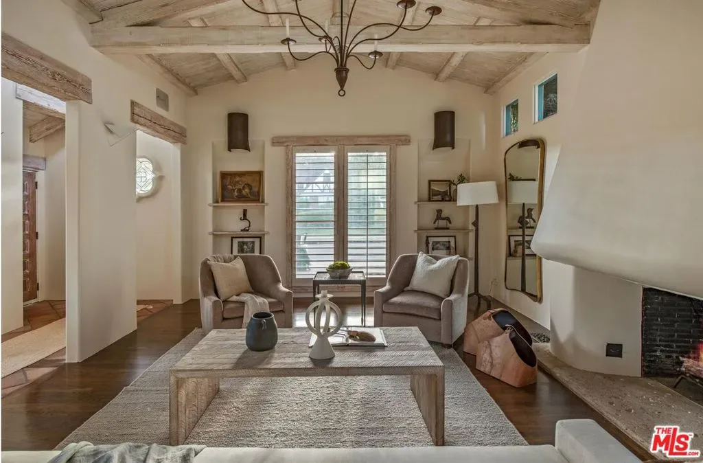 Set on a prominent corner lot in the heart of Beverly Hills, this distinctive Spanish Revival residence blends timeless character with thoughtful updates and exceptional potential. Elevated above the street and surrounded by lush landscaping, this soulful and sophisticated home showcases soaring exposed wood beam ceilings, clerestory windows and skylights that fill the interiors with natural light and highlight the custom ornamental metalwork and multiple artful fireplaces. The grand living room centers around a statement fireplace with curved detail, while a separate family room with a wet bar, built ins, and a second fireplace creates an ideal setting for entertaining alongside a formal dining area. The updated kitchen features quartz countertops, a stylish backsplash, ample cabinetry, generous pantry storage, and a sunny breakfast nook with built-in shelving. The primary suite opens to a romantic private terrace with an in-ground spa, creating a serene retreat and flowing seamlessly into a spacious patio ideal for outdoor dining. Additional highlights include recessed lighting, designer fixtures, water filtration, a basement area suited for flexible storage or utility use and a front driveway providing convenient off street parking for easy access. The classic white stucco exterior and red tile roof enhance the home’s curb appeal, all within the award winning Beverly Hills Unified School District and just moments from world class shopping and dining. The corner lot configuration provides excellent potential to convert the garage into an ADU with its own separate entrance bordering Charleville Blvd, creating an ideal setup for additional income, guest quarters, or extended living, and buyers can take advantage of Beverly Hills’ pre-approved ADU Program to help streamline the process.