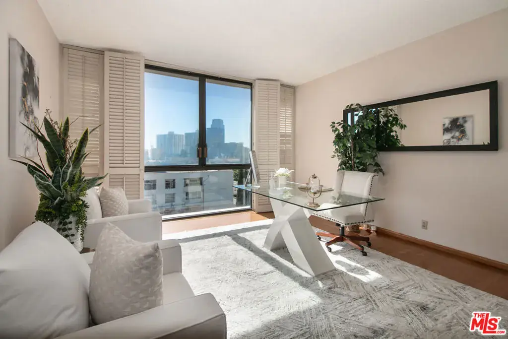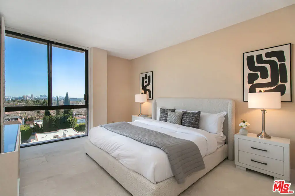 Exuding an aristocratic poise and a meticulous attention to detail rarely seen, this upper floor residence at 211 Spalding represents the standard for Beverly Hills condominium living. Appearing on the market for the first time in over four decades, this prized southeast corner home is a masterclass in scale and light with panoramic views from Century City & Beverly Hills to the Santa Monica mountains and the distant DTLA skyline. A double-door entry opens into a gracious, formal foyer, setting the tone for this expansive, well-proportioned residence. High ceilings, amplified by floor-to-ceiling windows and expansive balconies, define a living environment of light, air and sophistication. The layout features a spacious formal dining area adjacent to a chef’s eat-in kitchen, equipped with a gas cooktop and designed for seamless entertaining or intimate gatherings. A dedicated wing leads to two private bedroom suites: a generous guest room with an en suite full bath, and a spacious primary suite featuring double vanities, a separate shower, soaking tub, and substantial dual walk-in closets. Tucked away from the main living area, a laundry room with side-by-side appliances and a guest powder room with a mirrored stone vanity complete the residence. Two Eleven offers a white-glove, 24-7 luxury lifestyle, featuring dedicated reception, 24-hr valet for residents and guests, a modern fitness center, community room, sun deck, sauna and a year-round heated pool/spa. The building offers peace of mind with HOA dues covering earthquake insurance, water usage and more. Perfectly situated near the Golden Triangle with world-class boutiques and fine dining on Rodeo Dr. and Wilshire Blvd, this is more than a residence–it’s a legacy.