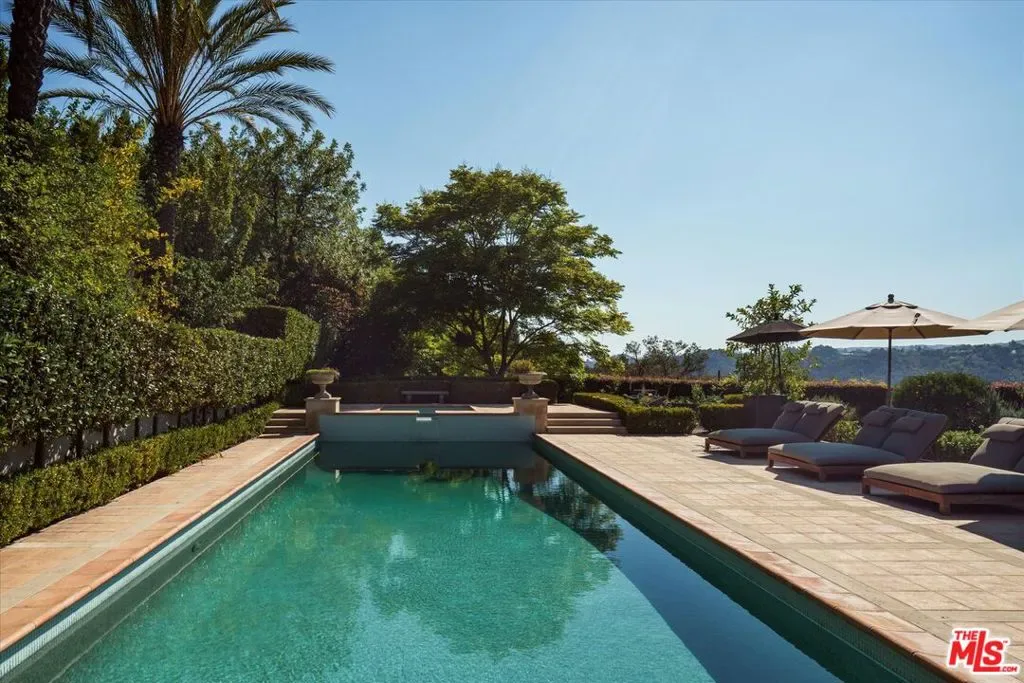 Set within the coveted guard-gated enclave of Bella Vista Estates, just steps from Beverly Park North, this Mediterranean-inspired estate offers 7,400 square feet of refined luxury on more than an acre of pristine grounds. Designed to capture sweeping canyon and mountain views from nearly every room, the residence blends timeless European craftsmanship with modern sophistication. A dramatic two-story foyer introduces elegant formal living and dining rooms, a chef’s kitchen with top-tier appliances and breakfast nook, and an expansive great room with a state-of-the-art screening area. A mahogany-paneled study provides a workspace of rare elegance, while imported marble, French oak floors, and limestone accents enrich the home’s interiors. The primary suite serves as a secluded retreat, complete with dual walk-in closets, a spa-inspired bath, and a limestone terrace overlooking manicured gardens. Outdoors, a resort-like setting unfolds with a full outdoor kitchen and wood-burning oven, a flat lawn, and a pool and spa embraced by lush landscaping. With its gated drive, exceptional privacy, and seamless flow between indoor and outdoor living, this Bella Vista estate embodies the pinnacle of Beverly Hills luxury.