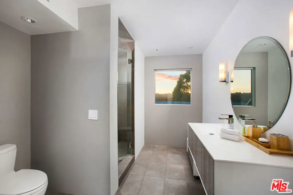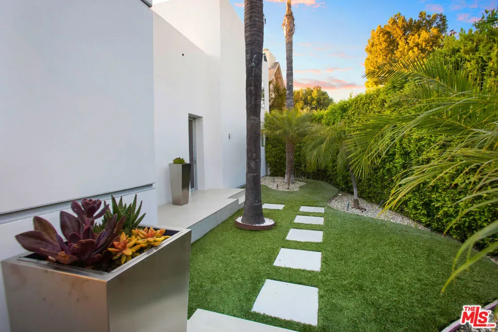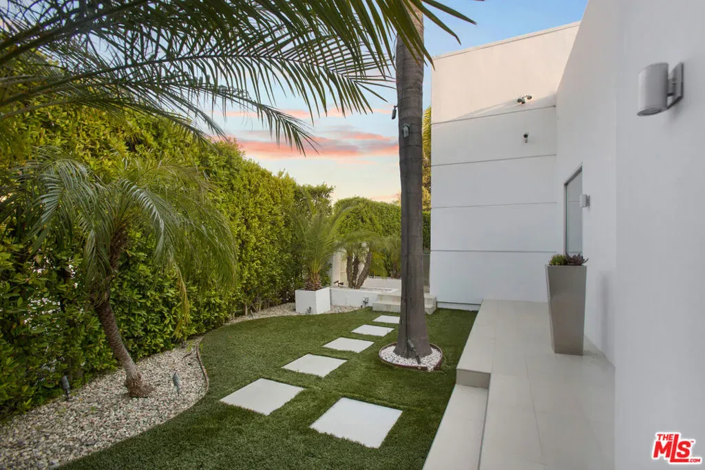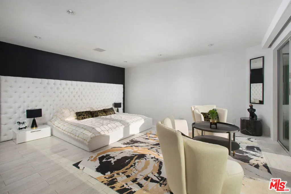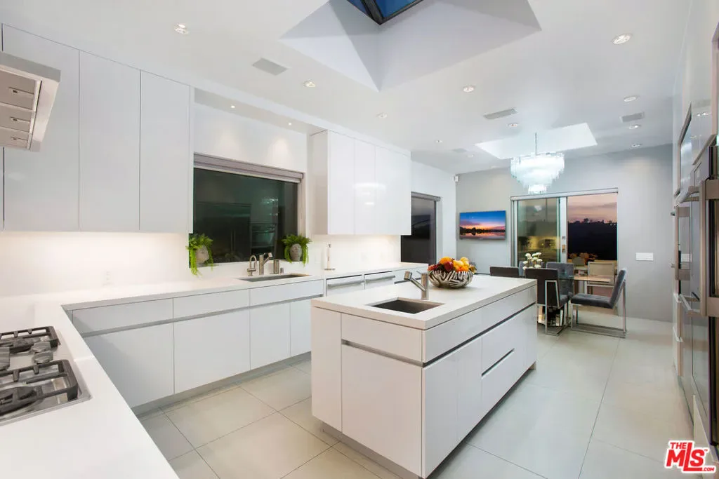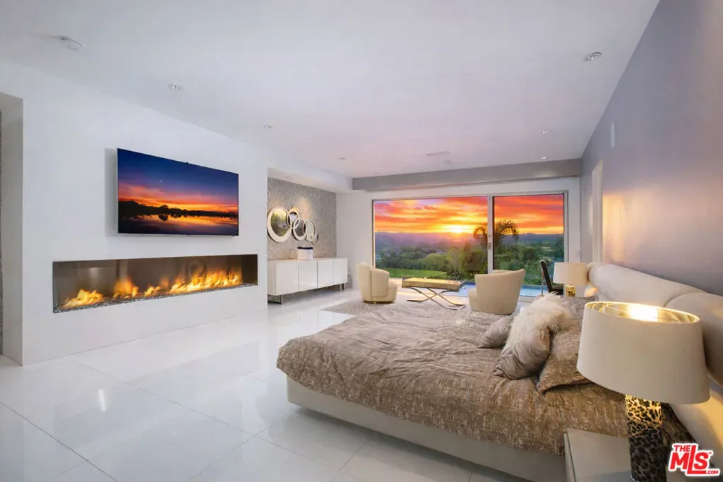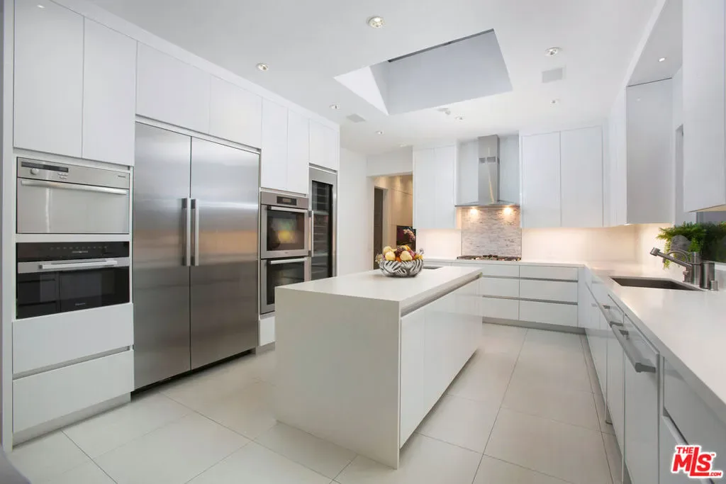 Privately gated and positioned at the top of a quiet Beverly Hills cul-de-sac, this refined architectural contemporary residence offers exceptional privacy, with sweeping 180-degree panoramic canyon and sunset views with no roofline obstruction. Soaring approximately 15-foot ceilings open seamlessly through Fleetwood pocket doors to an infinity-edge pool and expansive outdoor living areas, creating a true indoor-outdoor experience with direct access from every principal space. Designed for both elegant entertaining and everyday living, the home captures natural light, air, and expansive views throughout, enhanced by a retractable skylight in the hallway. The home offers two primary suites. The primary suite features two full bathrooms, two separate walk-in dressing rooms, and dual sitting areas, serving as a private retreat with motorized blackout and daytime shades. Four additional en-suite bedrooms are thoughtfully positioned for comfort and discretion, including a separate guest wing and lower-level suites. Additional highlights include a powder room, custom chef’s kitchen with professional-grade Miele appliances, media room, executive office, entertaining bar, staff quarters, multiple covered outdoor living and dining areas complete with a fireplace, and two solar panel systems. The infinity-edge pool, grassy terrace, and covered loggia are perfectly oriented to maximize the serene hillside setting and unobstructed sunset outlooks. Finished with custom limestone and hardwood flooring, curated designer details, and a state-of-the-art security system with cameras and alarm, this architectural estate offers a rare combination of privacy, views, and refined modern living just minutes from Rodeo Drive, The Beverly Hills Hotel, and the city’s most prestigious dining and shopping destinations.
