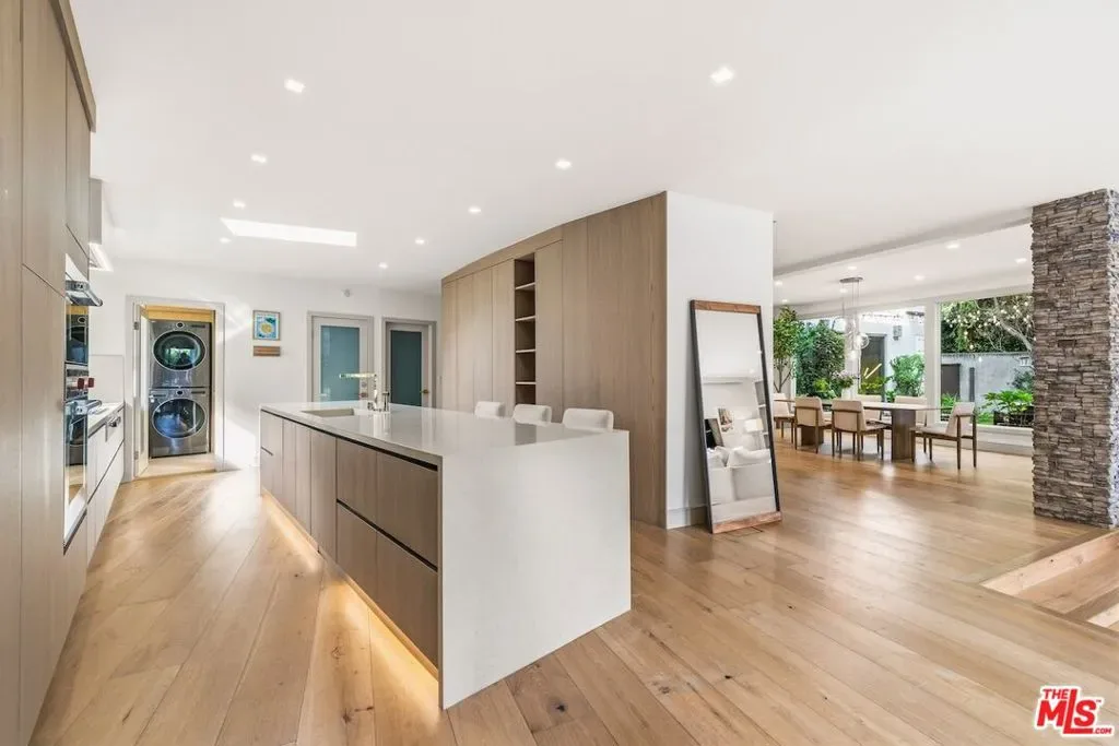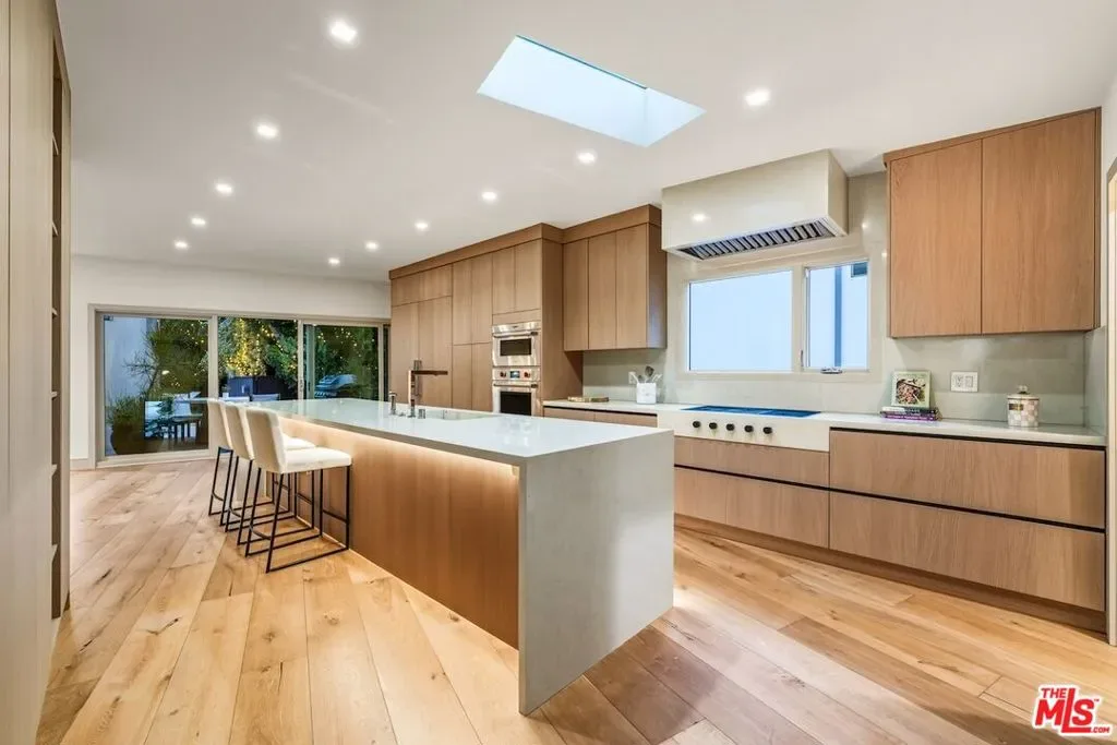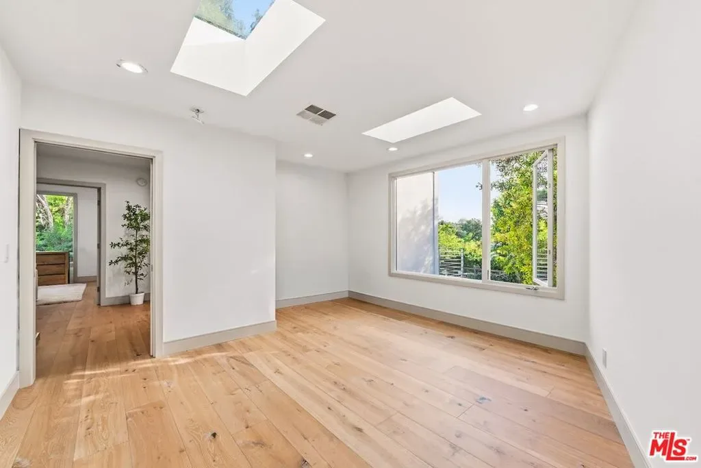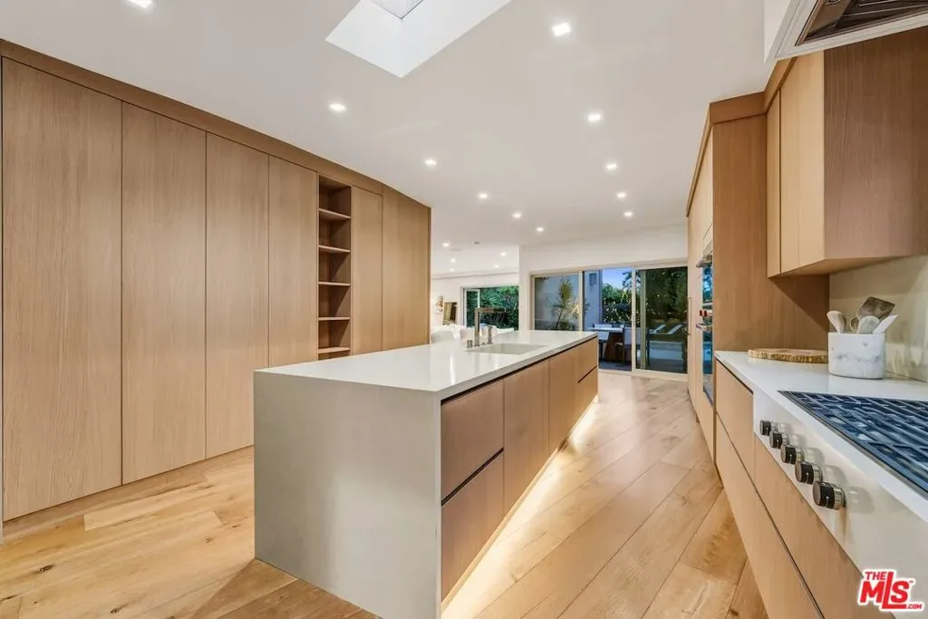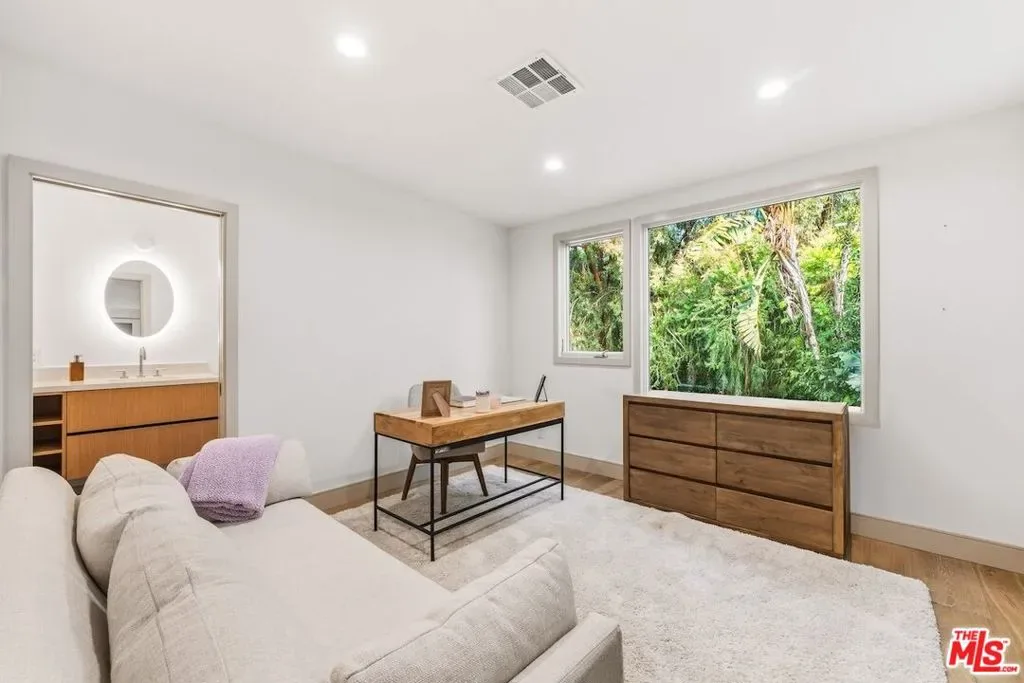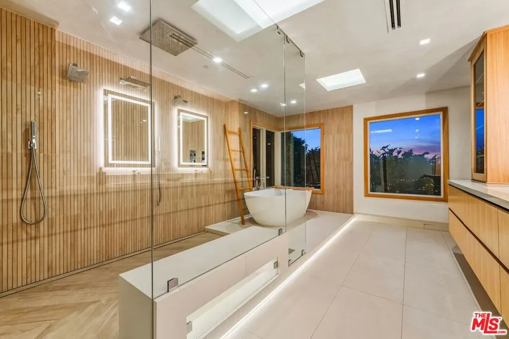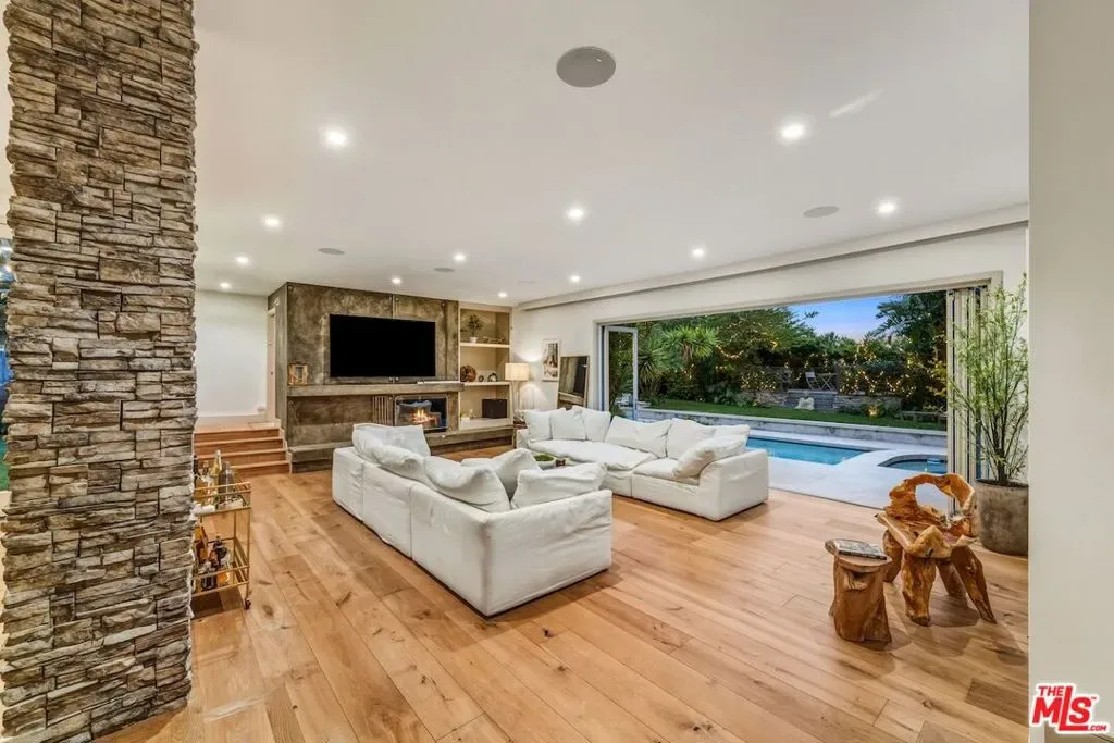 Privately set above Franklin Canyon Park and surrounded by mature landscaping and manicured grounds, this recently renovated gated modern canyon residence offers exceptional privacy, sweeping views, and a refined indoor-outdoor lifestyle in one of Beverly Hills’ most coveted natural settings. Designed for modern living and entertaining, the main level is anchored by a dramatic sunken living room with fireplace and retractable walls of glass that fully open to the backyard, seamlessly framing the canyon backdrop. A formal dining area opens seamlessly to a whimsical courtyard, enhancing the home’s indoor-outdoor flow. The chef’s kitchen has been fully reimagined with Wolf range and oven, Sub-Zero refrigeration, all new appliances, and continuous DuChateau oak hardwood flooring throughout the home. A custom-designed pet/child’s nook provides a charming and functional play space. Three en-suite bedrooms on the main level provide comfort and privacy for family and guests. Upstairs, the primary suite serves as a private retreat featuring a fireplace, sitting area, canyon-view balcony, a new spa-level bathroom completely redesigned, and a brand-new custom showroom-style walk-in closet. An additional en-suite guest bedroom and a versatile bonus room ideal for media, office, or gym complete the upper level. Outdoor spaces are equally elevated, highlighted by a fully resurfaced pool and spa, view deck and a renovated backyard designed for both entertaining and quiet enjoyment. The home has undergone system and infrastructure upgrades, offering rare turnkey confidence for a canyon property. A rare opportunity to own a thoughtfully upgraded canyon residence combining privacy, craftsmanship, and modern infrastructure. Just moments from the iconic Beverly Hills Hotel and world-renowned Rodeo Drive, yet peacefully removed from the city’s pace, the home enjoys a rare lifestyle balance – immediate access to the hiking trails and tranquil lake of Franklin Canyon Park, while just minutes from the celebrated restaurants, cafes, and boutiques along Ventura Boulevard and The Shops at Sportsmen’s Lodge.