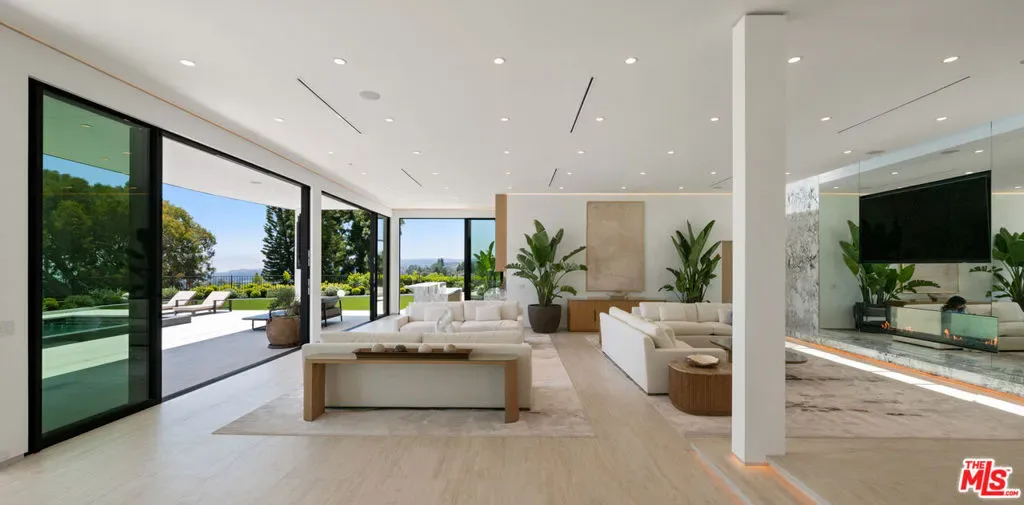 Newly completed and masterfully designed, this exceptional modern estate sits on one of the most coveted streets in Trousdale Estates, offering breathtaking city-light views and the pinnacle of Beverly Hills luxury living. A private gated entry opens to dramatic living spaces with soaring ceilings and walls of glass that flood the home with natural light while framing sweeping skyline vistas. The expansive open floor plan creates seamless indoor-outdoor flow, ideal for both grand entertaining and effortless daily living. At the center of the home, a showpiece chef’s kitchen features top-tier appliances, custom cabinetry, and a striking oversized island for gatherings large or small. Outside, a resort-style setting awaits with an infinity-edge pool, multiple lounge areas, and beautifully landscaped grounds designed for privacy and ambiance. The luxurious primary suite offers serene city views, a spa-inspired bath, and a large walk-in closet, while additional highlights include a private screening room, well-appointed guest suites, and fully integrated smart home technology. Offered furnished or unfurnished, this newly completed Trousdale masterpiece delivers an extraordinary blend of privacy, prestige, and contemporary design.