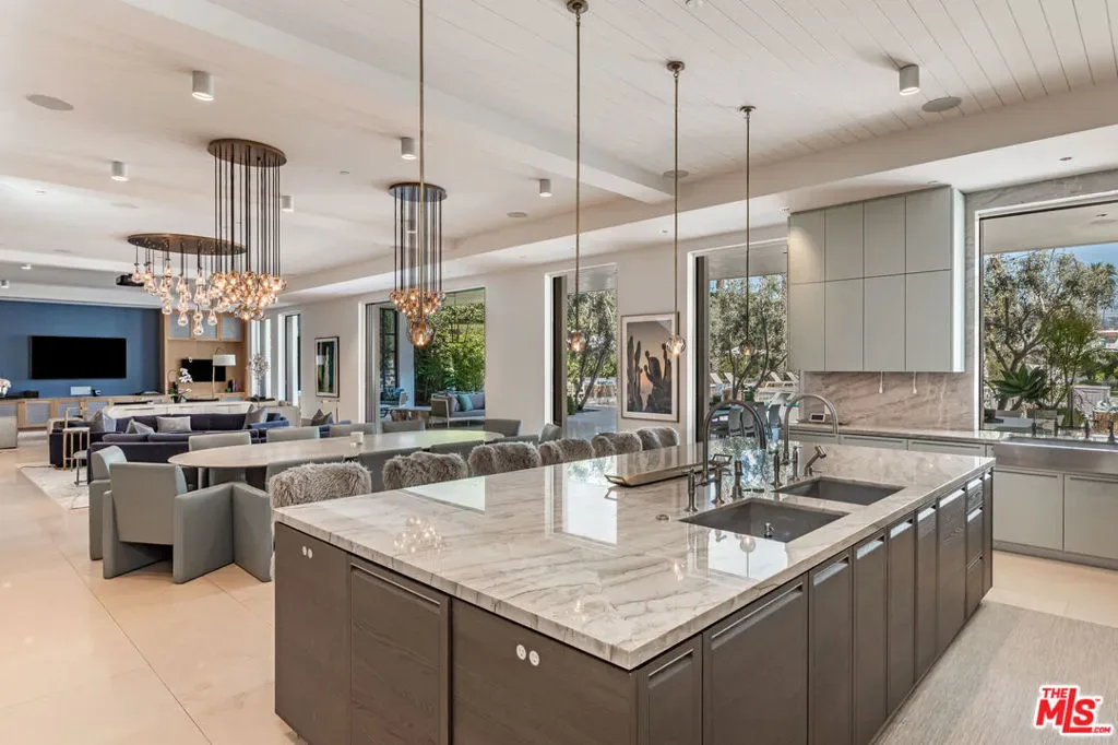 One of the most important properties ever built in the flats of Beverly Hills. Walking distance to the finest shopping on Rodeo Drive. Completed in 2017, this modern Mediterranean villa comprised over 20,000sqft. Soaring high ceilings throughout including a double height entry hall. Impeccable details and open floor plan. Formal living room for grand entertaining. Dining room for 18 guests. Vast gourmet kitchen and adjacent living room opens to the covered terrace and gardens beyond. Large primary suite with living room, office, double baths and closets. Totaling 12 bedrooms each with their baths en-suite, this estate can accommodate many guests. On the lower level, amenities include screening room for 18, wine cellar and subterranean garage for 10+ cars. Full guest house with gym. Grounds include zero edge infinity pool, lawn and sports court. Offered fully furnished and ready for immediate occupancy.