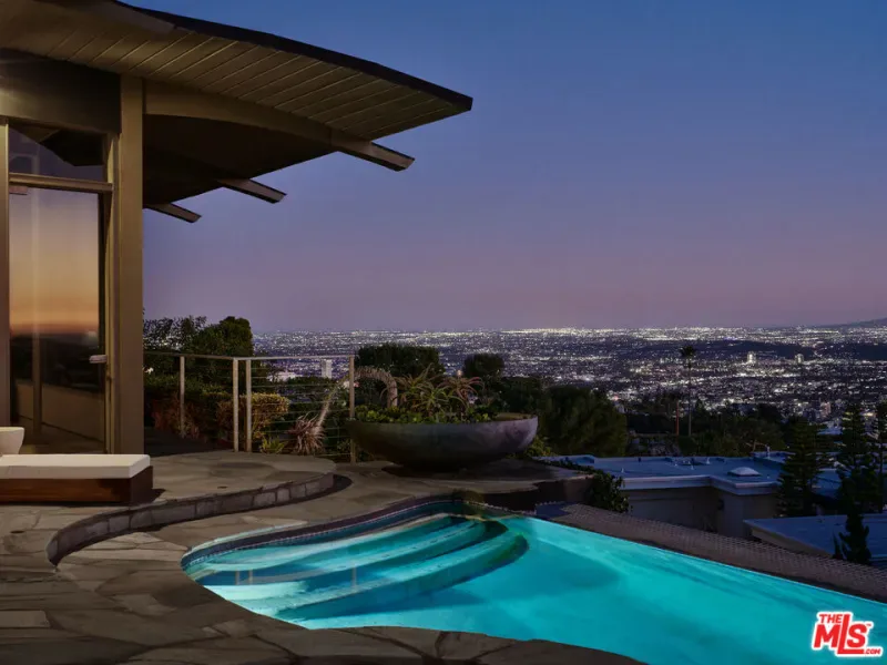 Perched high within the legendary hills of Trousdale Estates, where architecture becomes art and the horizon feels endless, a residence conceived by visionary architect Harry Gesner takes form. Bold, sculptural, and unmistakable, 624 Cole Place is a master expression of mid-century modern design, positioned to capture panoramic jetliner views from Beverly Hills to Catalina Island and across the valley. From arrival, the home emerges from the hillside with quiet authority. Signature rooflines soar overhead, and walls of glass dissolve into the horizon as natural light moves freely from dawn to dusk. Gesner believed architecture should live in conversation with nature, and here the skyline becomes a permanent part of the interior experience. Each space unfolds with intention, offering its own perspective and relationship to the view. From intimate corners to grand entertaining spaces, the city reveals itself in layers, constantly shifting, always spectacular. Daily living becomes cinematic. Hosting feels effortless. Even silence feels elevated. Outside, expansive terraces float above the landscape, while the pool provides a front-row seat to Los Angeles by day and a glittering sea of lights by night. It is Southern California indoor-outdoor living at its most refined. Offered for the first time in over two decades, the residence reflects a level of architecture that tends to be held, not traded.