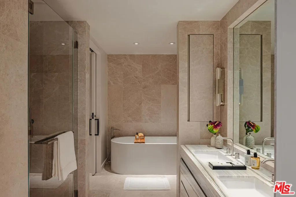 A harmonious blend of privacy and indulgence, Mandarin Oriental Residences, Beverly Hills offers the intimacy of a private home enhanced by the legendary service of a five-star hotel. Designed in collaboration with the internationally acclaimed 1508 London, each residence is a masterclass in refinement where daily rituals are elevated into moments of quiet luxury. The rooftop is a sanctuary unto itself, with sweeping views of Beverly Hills’ iconic palm-lined streets. Surrounded by citrus trees and fragrant plantings of lavender, rosemary, and sage, the rooftop oasis features a heated pool, towel service, and serene lounge areas infused with calming natural scents. Wellness offerings continue with an impeccable spa suite featuring private treatment rooms, a steam room and sauna, and a state-of-the-art fitness center with Technogym equipment, private training room, and a sunlit outdoor terrace overlooking Century City. On the ground level, residents enjoy access to a private boardroom and a cozy fireplace lounge perfect for entertaining or working from home in style. Around-the-clock valet, concierge, and in-residence services ensure every detail is handled with signature Mandarin Oriental grace and discretion. Offered at $2,650,00, residence 404E is a sun-drenched one-bedroom retreat with a south-facing orientation overlooking tree-lined Palm Drive. The open-concept Great Room flows effortlessly into a spacious kitchen anchored by a leathered Taj Mahal quartzite island. Elegant, durable, and ideal for both casual dining and entertaining. A private terrace extends the living space outdoors, while the tranquil primary suite includes a five-fixture bath and an adjacent walk-in closet, offering comfort, luxury, and functionality in equal measure. Previously offered at $3,800,000, this residence presents an outstanding opportunity at a refreshing new price.