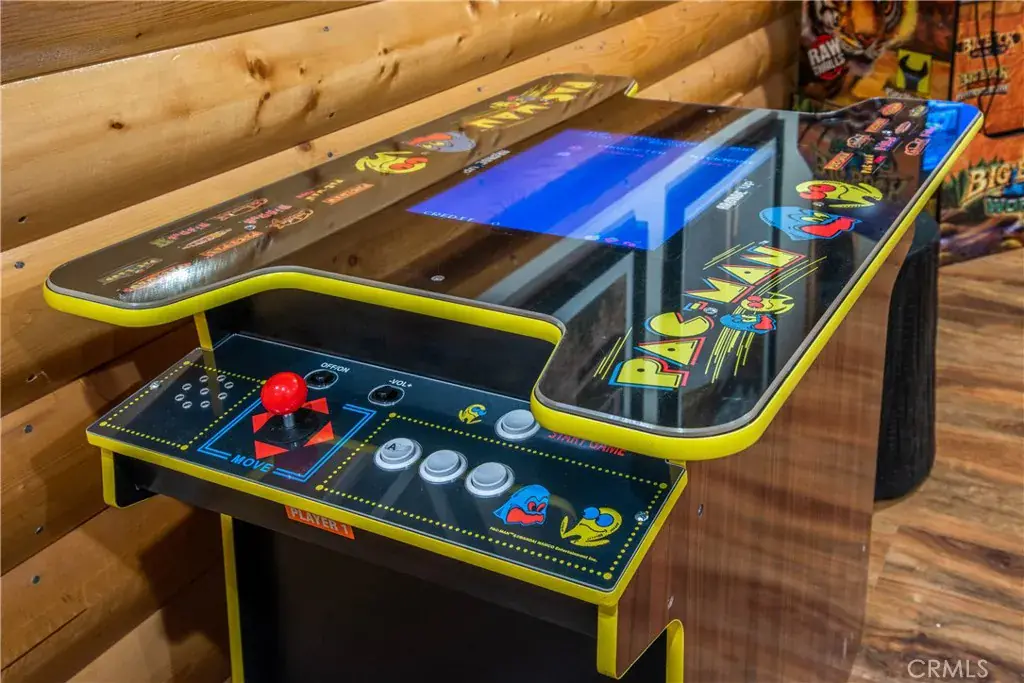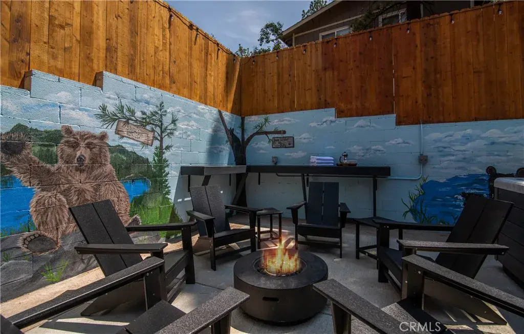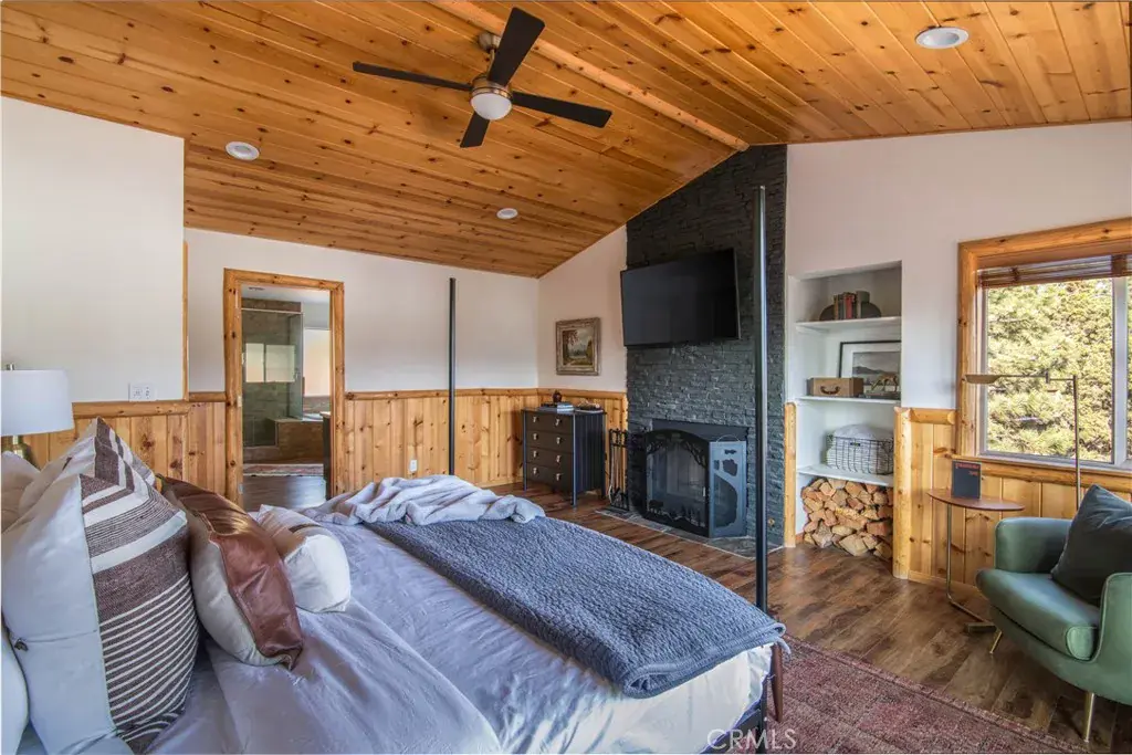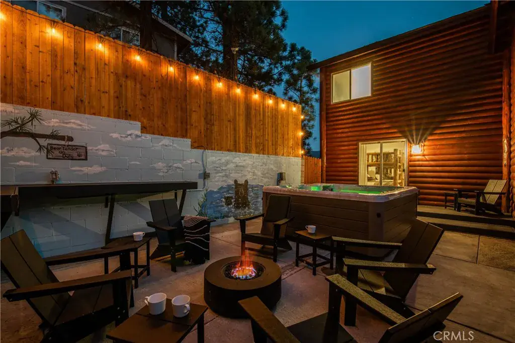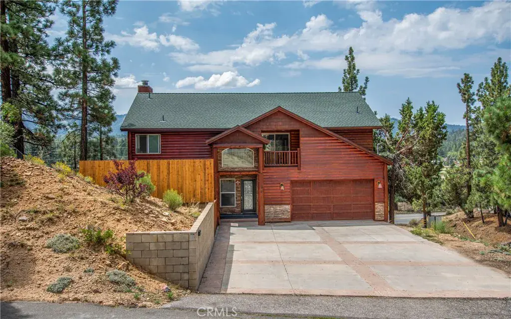 Southern exposure and ski slope views define this spacious custom log-style home in Whispering Forest. Built in 2007, the property combines scale, quality construction, and thoughtful updates in one of Big Bear’s most desirable neighborhoods. Designed with a reverse floor plan, the upper level showcases vaulted tongue and groove ceilings, expansive windows, and an open great room that captures natural light and mountain views. The living area centers around a fireplace and built-ins, while the adjacent dining space and entertainer’s kitchen flow seamlessly together. The remodeled kitchen features abundant counter space, dual islands with extra wash sink and breakfast bar seating, updated cabinetry, and a layout ideal for hosting gatherings. The primary suite is also located on the upper level and offers its own fireplace, deck access, and a spacious bath with dual vanity, soaking tub, and separate shower. Downstairs, additional bedrooms, bathrooms, and a family room provide excellent separation and flexibility for guests or extended stays. Outdoor living is a true highlight, with a long covered deck framing mountain and ski slope views and creating a natural extension of the main living space. The fenced yard includes a private hot tub and fire pit area, while the lower deck offers additional access to the backyard. Situated on a 10,710 square foot corner lot with level topography, the property provides generous parking, and a two-car attached garage. The garage is currently utilized as a finished recreation space, offering added versatility. An EV charger and recently installed HVAC system add modern convenience and year round comfort. Located just minutes from the National Forest, ski resorts, the lake, grocery stores, and dining, this home offers strong full time livability and proven short term rental appeal.