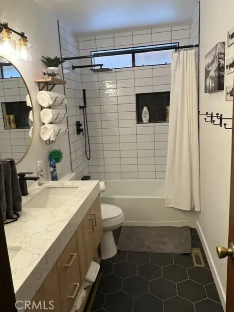 Welcome to this beautifully remodeled 3-bedroom, 2-bathroom home located in the desirable Whispering Forest neighborhood of Big Bear City. Just minutes from the lake, ski slopes, Big Bear Valley Sportsman’s Club, and local shopping, this home offers both convenience and mountain charm. The interior features an open floor plan with high exposed beam ceilings in the living room, a cozy wood-burning fireplace, and abundant natural light. The updated kitchen flows seamlessly into the dining area, creating an ideal space for entertaining. Both bathrooms have been upgraded with double sink vanities. The primary suite includes a newly remodeled shower with a built-in bench. Additional highlights include a private rear balcony, a 2-car attached garage with workshop space, and an extended space with ample room for RV and boat parking. This property offers a great combination of functionality, updates, and location, perfect as a primary residence, vacation home, or investment opportunity.
