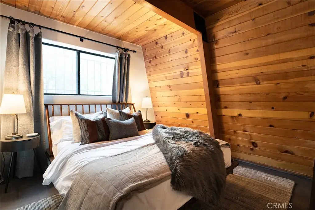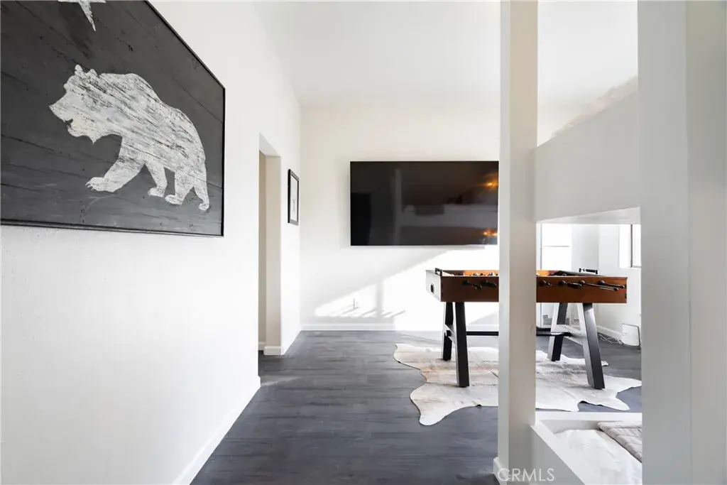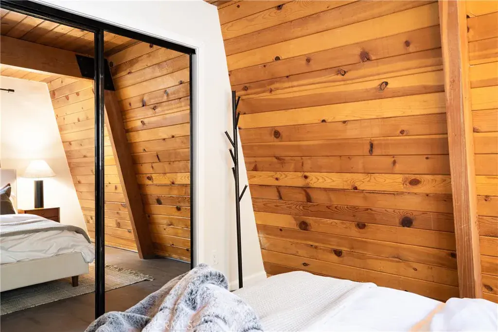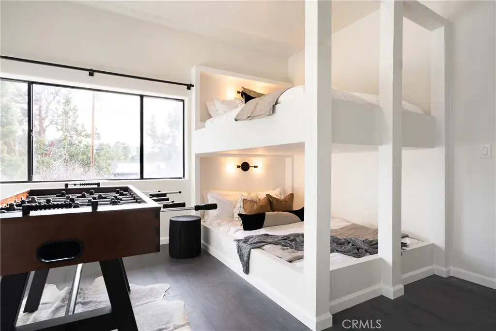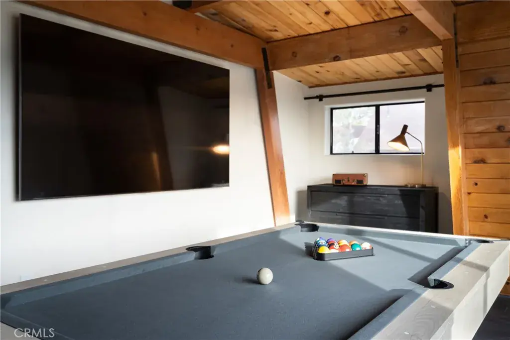 Enjoy expansive ski slope and mountain views from this beautifully remodeled and thoughtfully designed mountain retreat, offering the perfect blend of modern comfort and classic Big Bear character. Set on a quiet street yet conveniently close to the lake, ski resorts, trails, zoo, and Big Bear Village, this home delivers both privacy and accessibility, making it ideal for full-time living, second-home enjoyment, or investment potential. Spanning approximately 2,402 square feet, the home features a flexible multi-level floor plan with 5 bedrooms and 3 bathrooms, creating space for gathering while still allowing room to spread out. Warm wood accents, vaulted ceilings, and clean modern finishes work together to preserve the cabin feel while elevating the overall design. The main living area is open and inviting, anchored by a charming fireplace and seamlessly connected to the dining space and remodeled kitchen, perfect for entertaining and everyday living alike. Multiple levels provide thoughtful separation of space, with a private bedroom and bath on the lower level, the heart of the home and 2 bedrooms on the main level, and 2 bedrooms and a loft-style hangout and game area adding another layer of versatility upstairs. The garage has been transformed into a standout bonus space, currently set up as an impressive game room. Outdoor living is equally inviting, featuring a spacious deck, spa, fire pit, and seating areas designed for year-round enjoyment, while the slopes and mountain views enhance the setting and surrounding trees create a true cabin-in-the-woods atmosphere. Additional highlights include ample parking, an EV charger, a dedicated laundry area, and a well-planned layout that functions beautifully in all seasons, making this a high-quality mountain home in one of Big Bear’s most convenient and desirable locations!