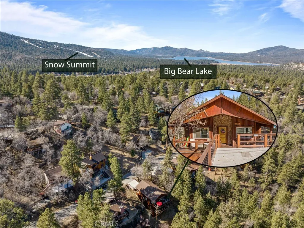 Mountain Serenity, Luxurious Living ! This stunning log-style home in the desirable Moonridge neighborhood offers the perfect blend of modern luxury and mountain charm. Nestled on a downslope lot, the 3-bedroom, 3-bath retreat feels like a mountain treehouse, with decks on both levels to enjoy the treed surroundings. The great room features beamed T&G ceilings, wood floors, and a cozy rock fireplace, while the entertainer’s kitchen boasts rough-edge granite, stainless appliances, and a custom stone backsplash. The main level master suite offers deck access, a jetted tub, separate vanities, and a walk-in closet. Downstairs, you’ll find two additional bedrooms, a bath, and a family/game room with access to the lower deck. With central forced air heat, a tankless water heater, and a whole-house generator, comfort is guaranteed year-round. This home’s incredible short-term rental potential, combined with its proximity to ski slopes, the lake, forest, and shopping, make it both a serene escape and a savvy investment opportunity.