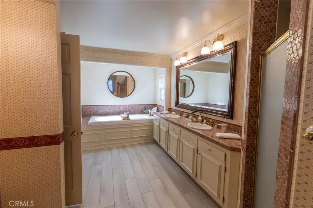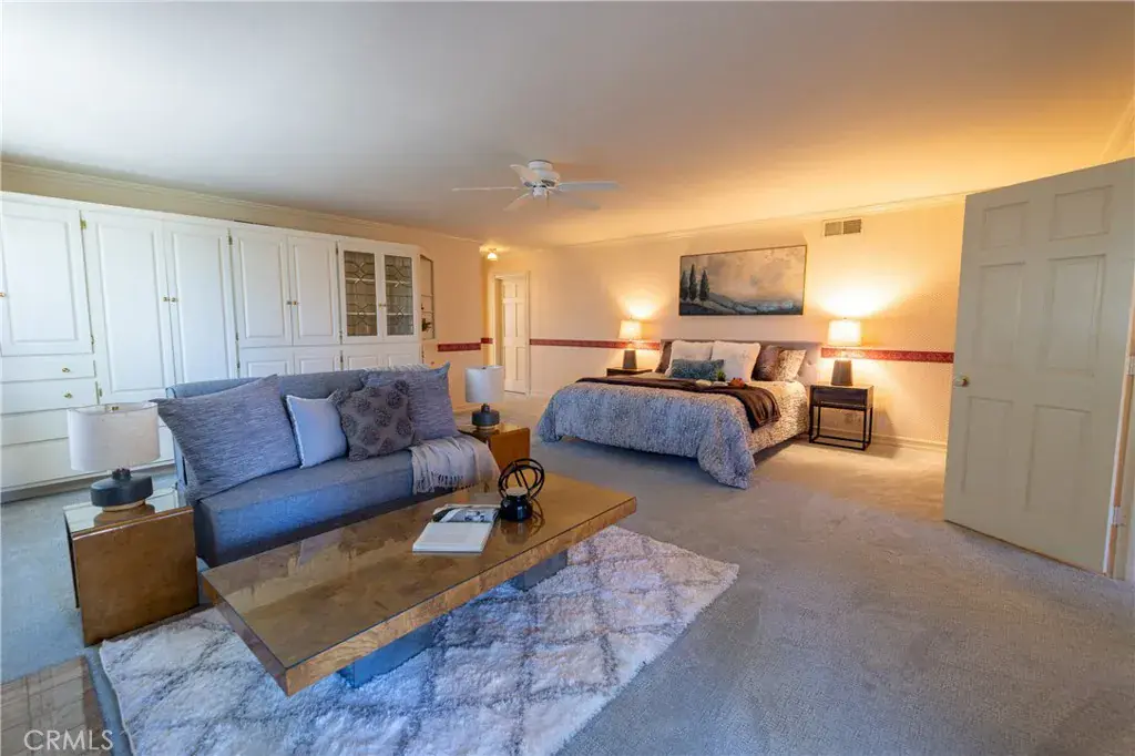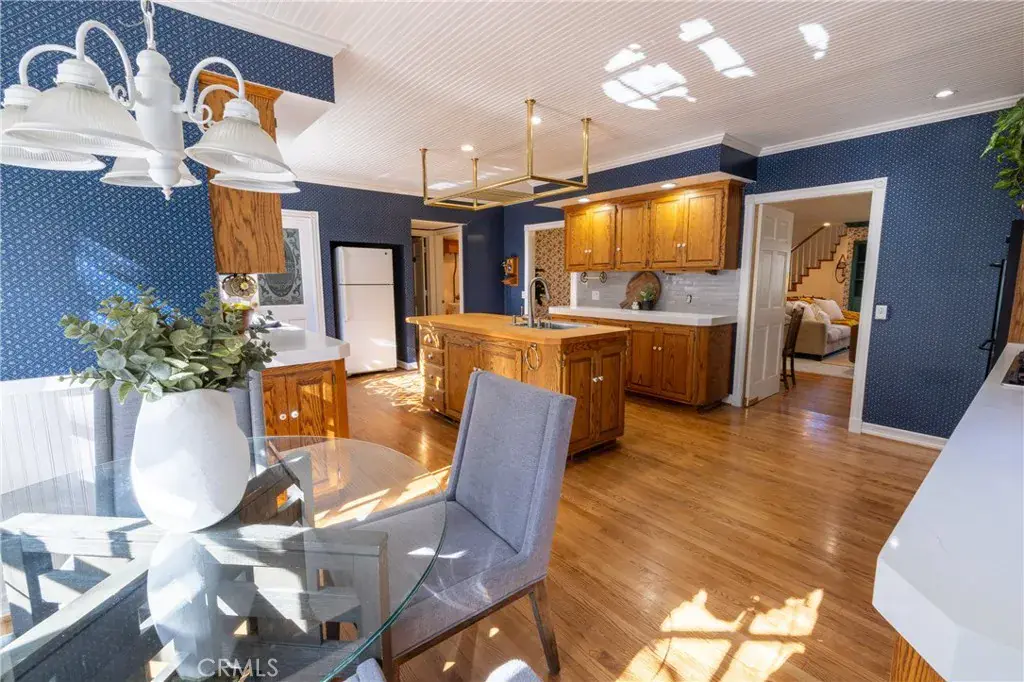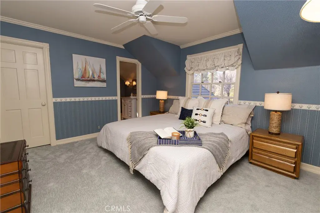 Welcome to 1660 Cascade in beautiful Big Bear, CA – a meticulously maintained 3-bedroom, 3-bathroom mountain retreat spanning 2,734 square feet on an expansive 8,250 square foot lot. This stunning home combines modern updates with timeless charm, offering a perfect blend of comfort, functionality, and outdoor appeal. The level lot is fully fenced for privacy and security, complemented by a brand-new driveway that enhances curb appeal and provides ample parking. Step inside to discover a grand staircase leading upstairs, crown molding throughout the house, and brand-new carpet that adds a fresh, inviting feel underfoot. The large living area is ideal for gatherings, featuring a cozy fireplace, recessed lighting, and plenty of space for entertaining with room for a large dining table. Adjacent to it, the chef’s kitchen is a true delight, boasting ample quartz countertops, a custom backsplash, a spacious pantry, an island with butcher block countertop, dual ovens, and a gas range – perfect for culinary enthusiasts. The huge master bedroom serves as a luxurious sanctuary, complete with built-in cabinets and two walk-in closets. Its en-suite bath impresses with a large jetted tub, tile shower, and new flooring. This home also features a second primary bedroom with its own walk-in closet, updated vanity, countertop, and flooring for added convenience and style. The third bedroom rounds out the versatile layout. Outside, the level lot, providing plenty of room for kids, dogs, or outdoor entertaining in a serene, low-maintenance setting. Whether you’re seeking a full-time residence, vacation getaway, or investment opportunity, this well-maintained gem in Big Bear is ready to welcome you home.
