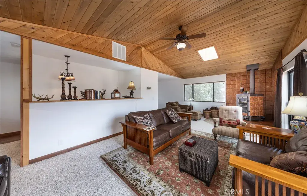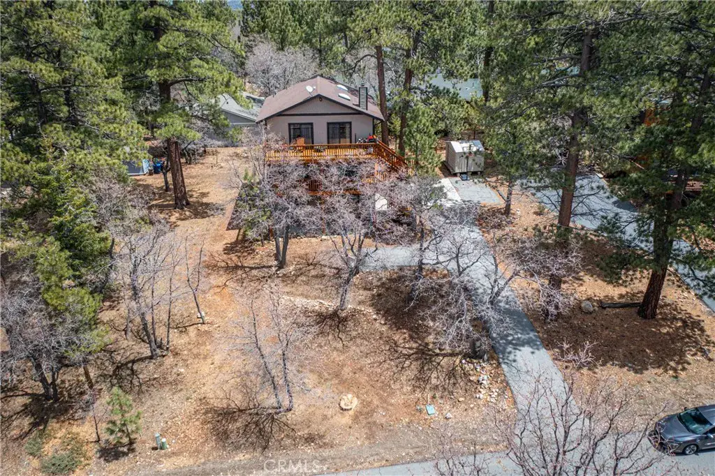 HUGE PRICE IMPROVEMENT!! Welcome to 1772 Columbine Drive! Situated at the top of the prestigious Moonridge Mountain Estates. One of the highest elevated homes in the area providing you with spectacular mountain, ski resort and valley views!! Words do not do this home justice as you will need to schedule an appointment to view it for yourself!! This home was built in 1984 and features 2031 square feet of living space. It sits on an impressive 9598 square foot lot with gorgeous trees that surround the home bringing nature to your doorstep!! As you enter through the first floor entry, you will find a spacious Family Room and/or Bedroom and the adjoining room would be a great Game Room. This area good possibly permitted for an ADU conversion that would be a great short or long term rental with its own separate entry. As we make our way up to the second level you will find tow large bedrooms, one full bathroom and one 3/4 bathroom with the Laundry Area in one of the bathrooms. Both bedrooms have sliding glass doors to the outside where you will have a wrap around deck for you to enjoy your morning coffee or evening glass of wine. This is also a second entry point with a Mud Room. From here we can go up to the third level where you will fall in love with the open Living Room/Family Room. There is a custom built split level Wood Burning Stove. This unique piece not only accentuates the room but gives warmth on those cold snowy nights. The knotty pine ceilings and two skylights in this area bring nature indoors as wells as lots of natural light. The Kitchen and Dining Room boost hand rubbed cherry wood flooring and the classic wood cabinetry giving you that cozy mountain feel. There are two separate sliders to the outside deck with AHH inspiring views of bear Mountain, the ski run Geronimo at an elevation of 8800 feet as well as valley views, the crystal blue skies during the day and the milky way at night. This level also features a 1/2 bathroom for added convenience. Additional features include weatherized exterior decking and stairs. Central Heating and an upgraded Water Heater. Long driveway leads you to ample parking spaces for several vehicles including an RV and or Boat and a Storage Shed is included. This location gives you the space and tranquility yet it is just a few minutes away to all of Big Bear. Lets schedule a showing with your Realtor and I hope to see you in Escrow!! : )