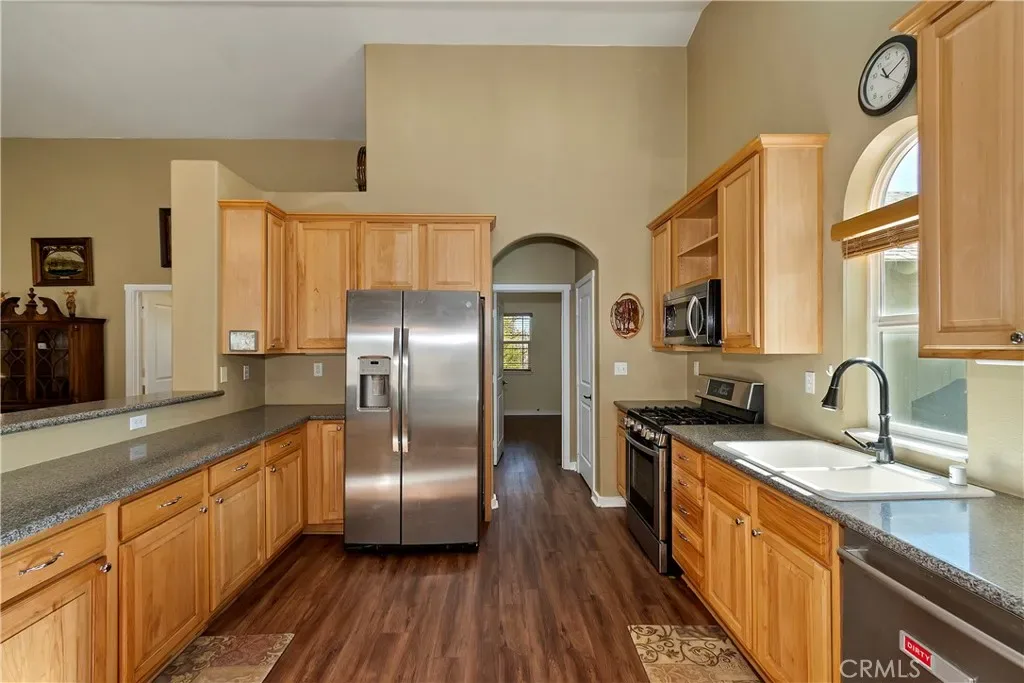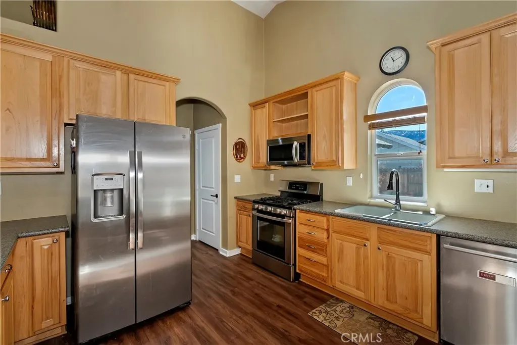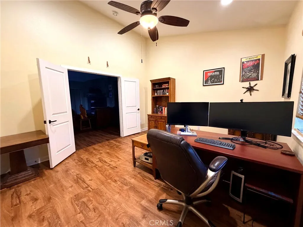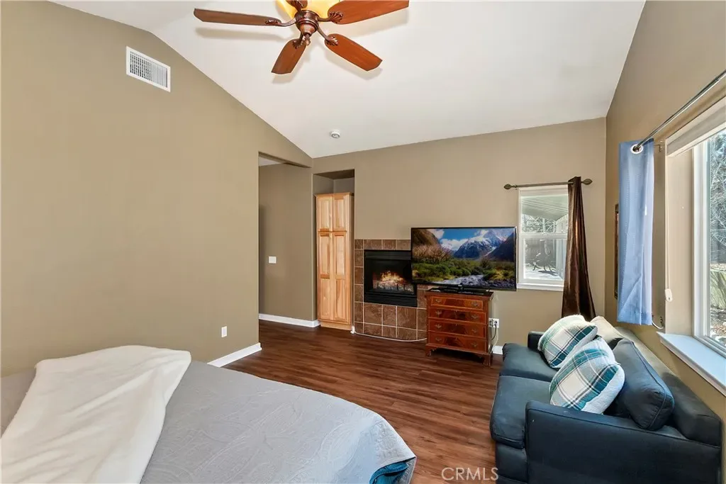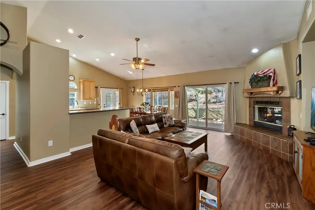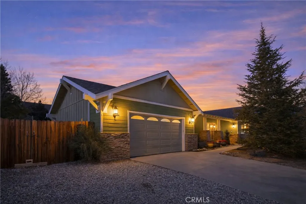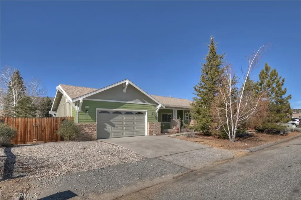 Welcome to this Maple Ridge retreat, where mature pines and a covered front porch frame breathtaking snow-capped mountain views. Built in 2004 and thoughtfully updated, this single-level home offers 3 bedrooms, 3 baths, a large office, and 2,123 sq ft of sun-filled living space with modern flooring throughout. The open floor plan features a fireplace in living room, a modern kitchen with updated appliances, and a spacious living room with Nest smart heating. The primary suite is a private retreat with its own fireplace, dual sinks, soaking tub, separate shower, and walk-in closet. A separate laundry room and attached two-car garage add convenience. Outside, the fully fenced backyard offers rock and turf landscaping, fruit trees, a deck with covered porch with BBQ space, and room for RV or boat parking. Trails, Big Bear Lake, town, and parks are nearby—relax, savor the mountain views, and feel at home.
